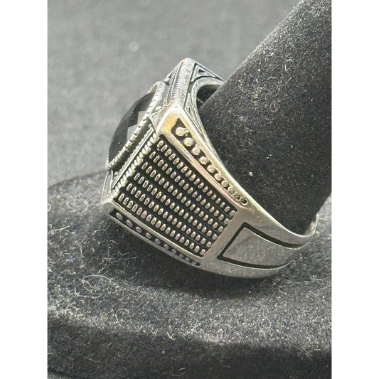 New Condition Sterling Silver Heavy Faceted Onyx Gents Ring Size 10.00