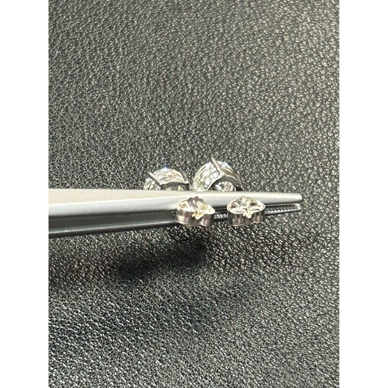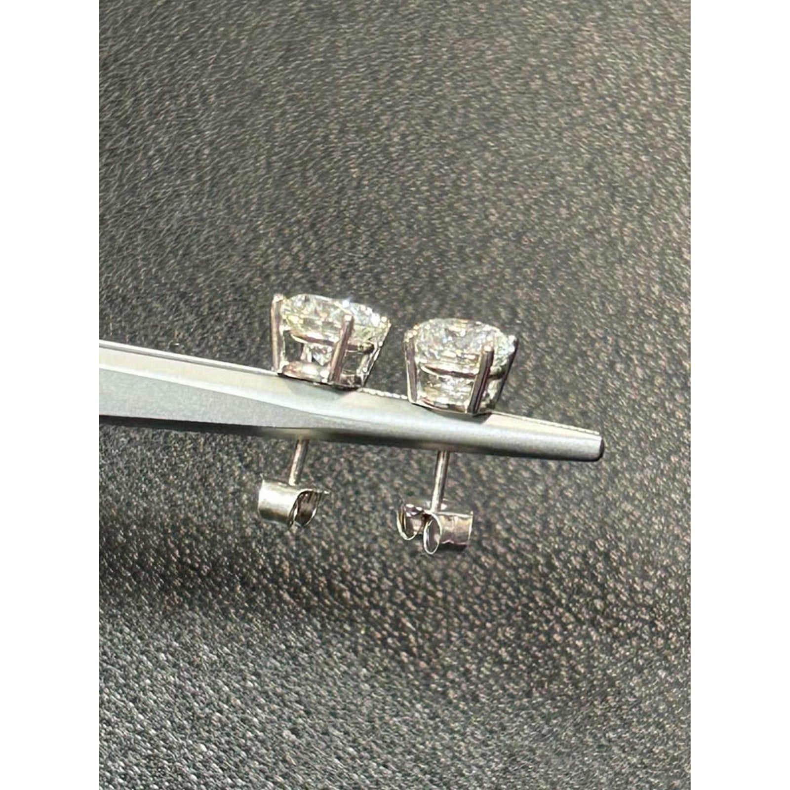 14k white gold 2.18 carat weight round brilliant lab grown diamond stud earrings . E color VS1 clarity. IGI lab report.