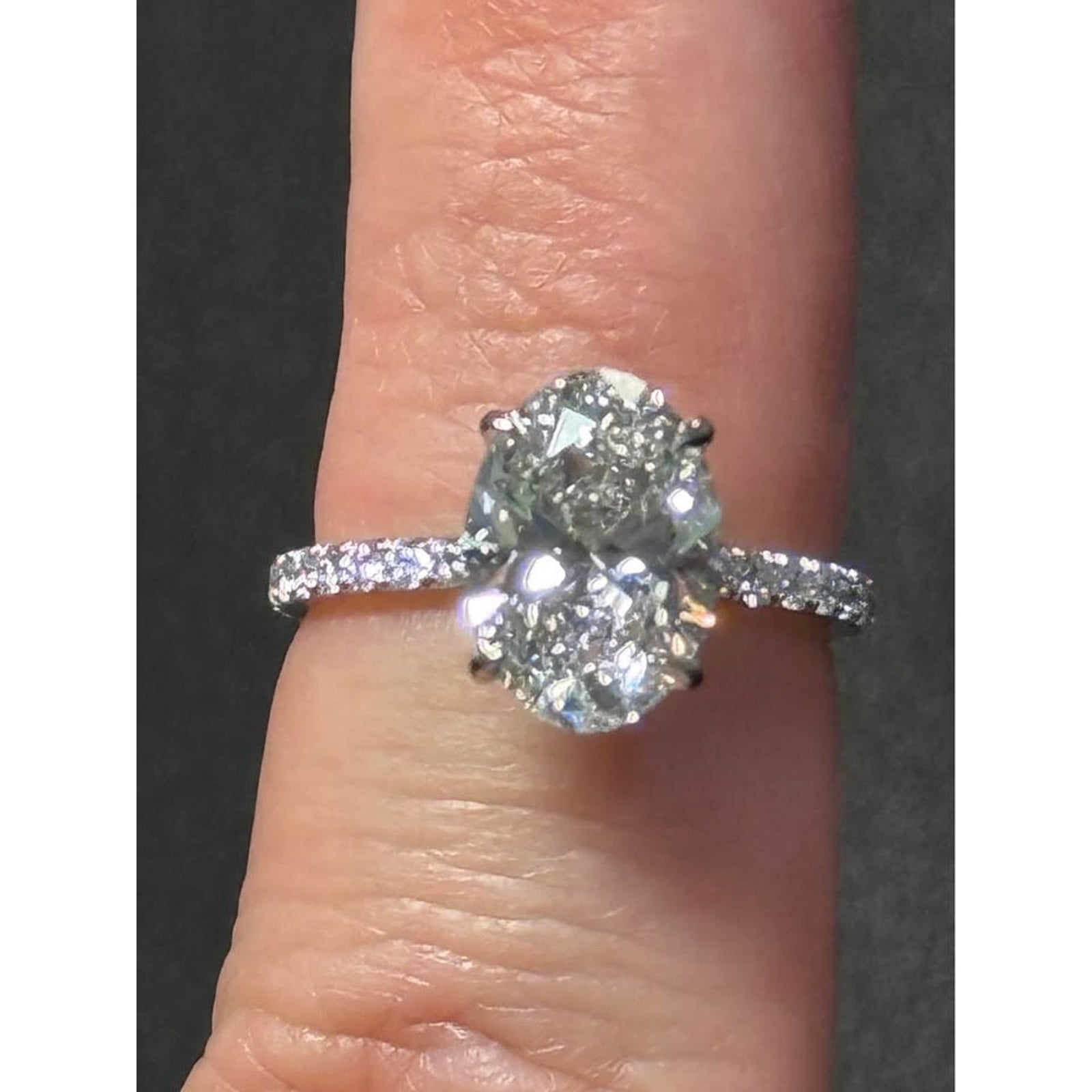 14k White Gold 3.08 Carat Oval Lab Grown Diamond Ring E Color VS1 Clarity