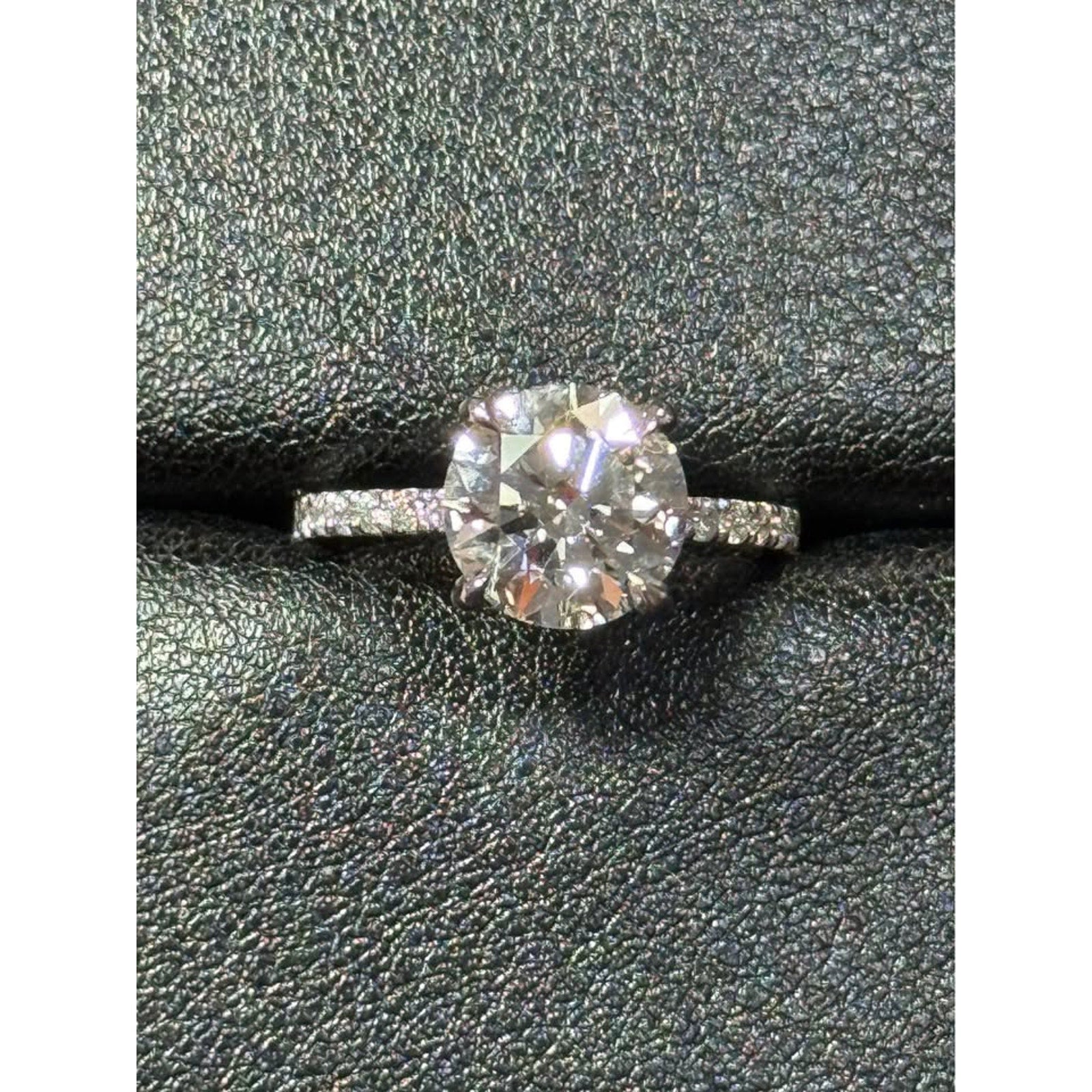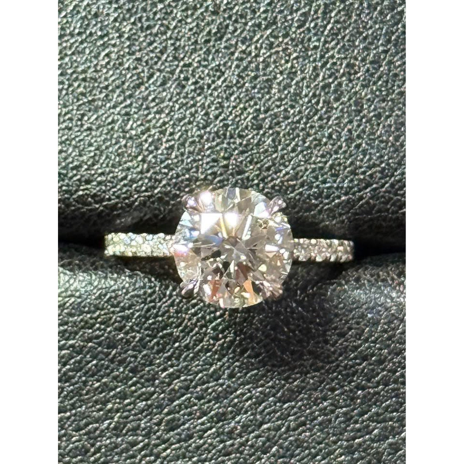 14k White Gold Hidden Halo 3.08 Round Brilliant Cut Lab Grown Diamond Ring E Color VS1 Clarity