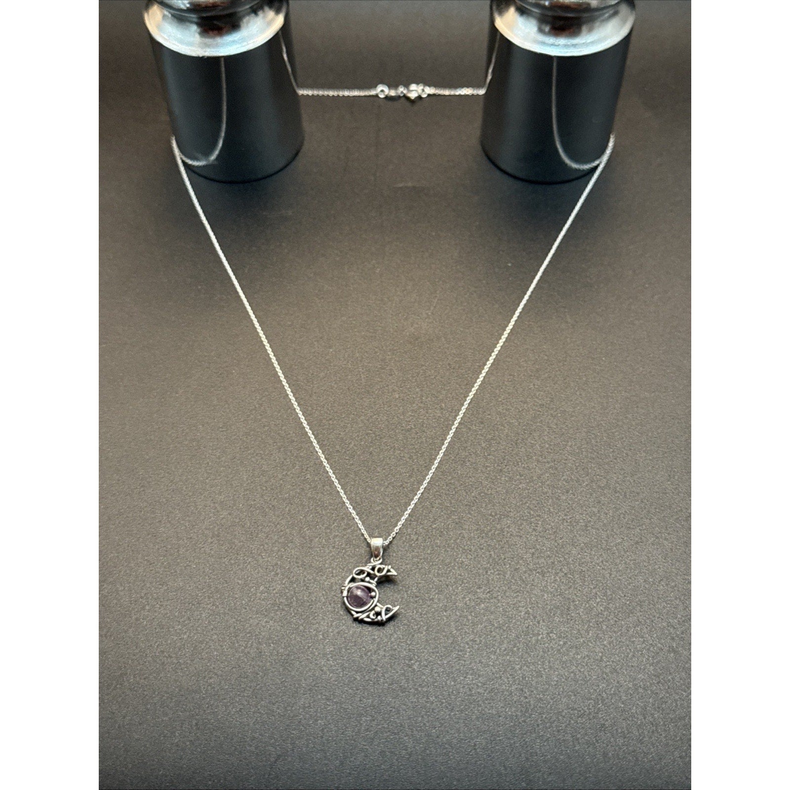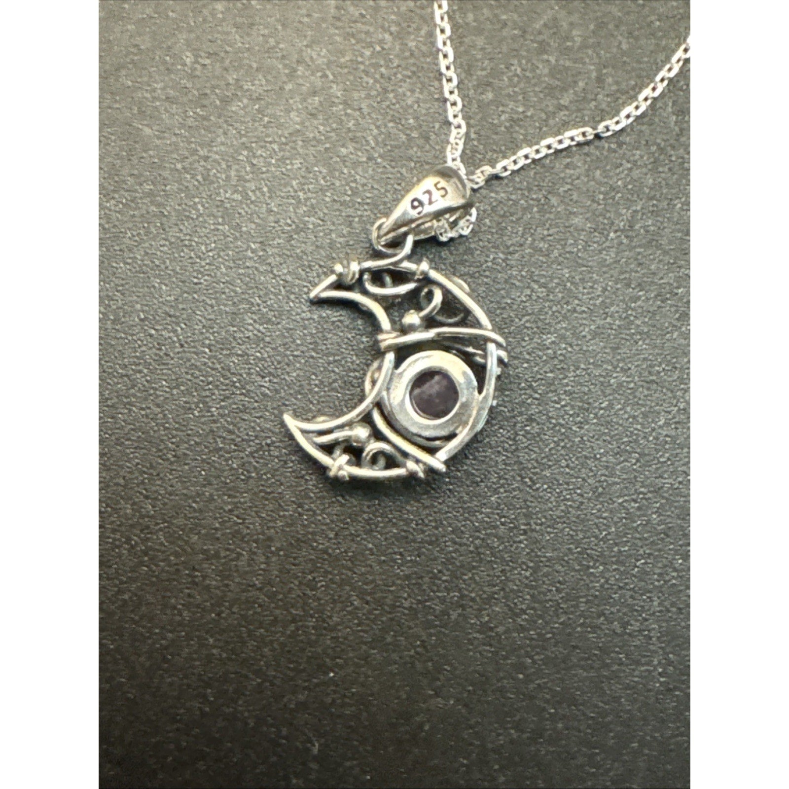 18” New Condition Sterling Silver Amethyst Crescent Moon Pendant Necklace
