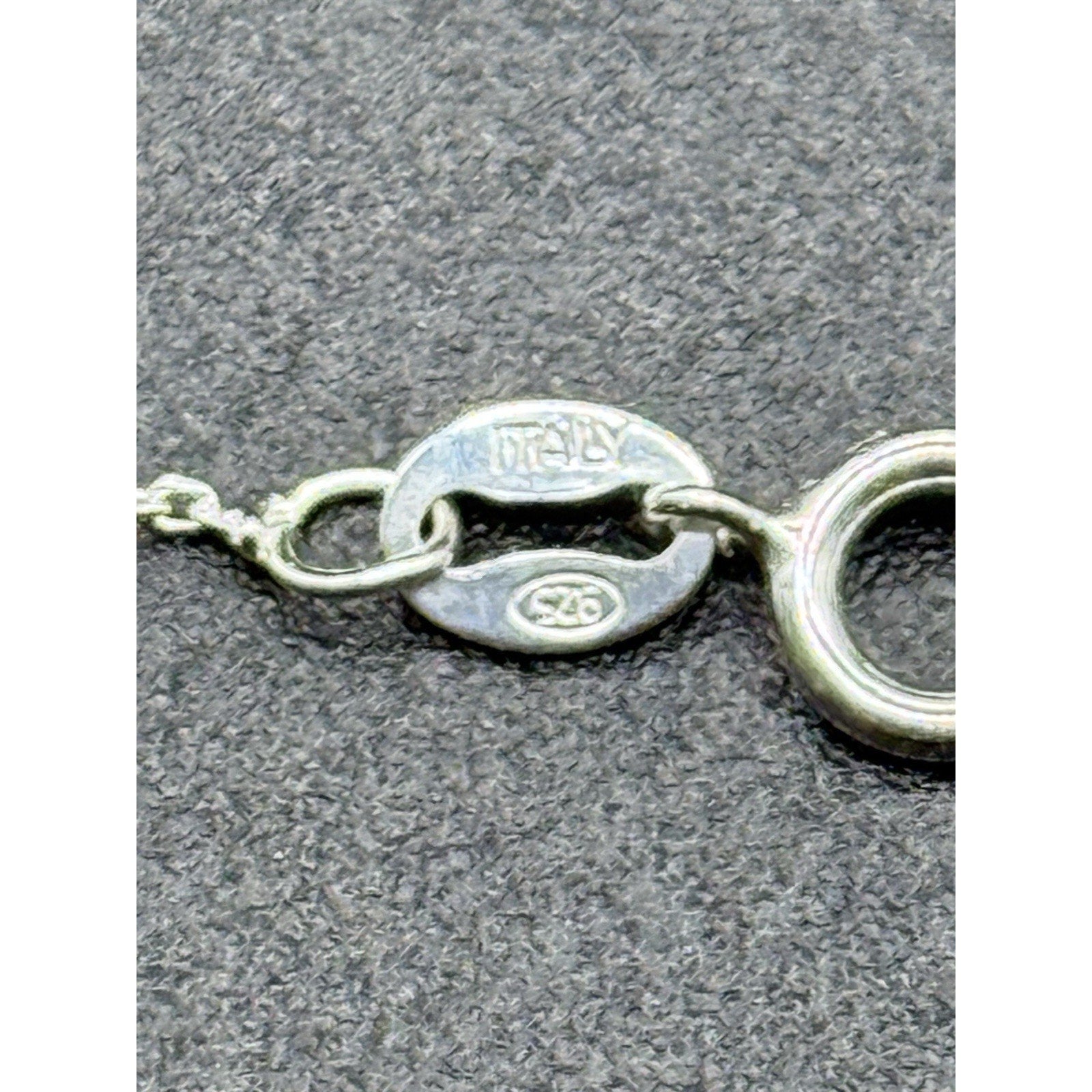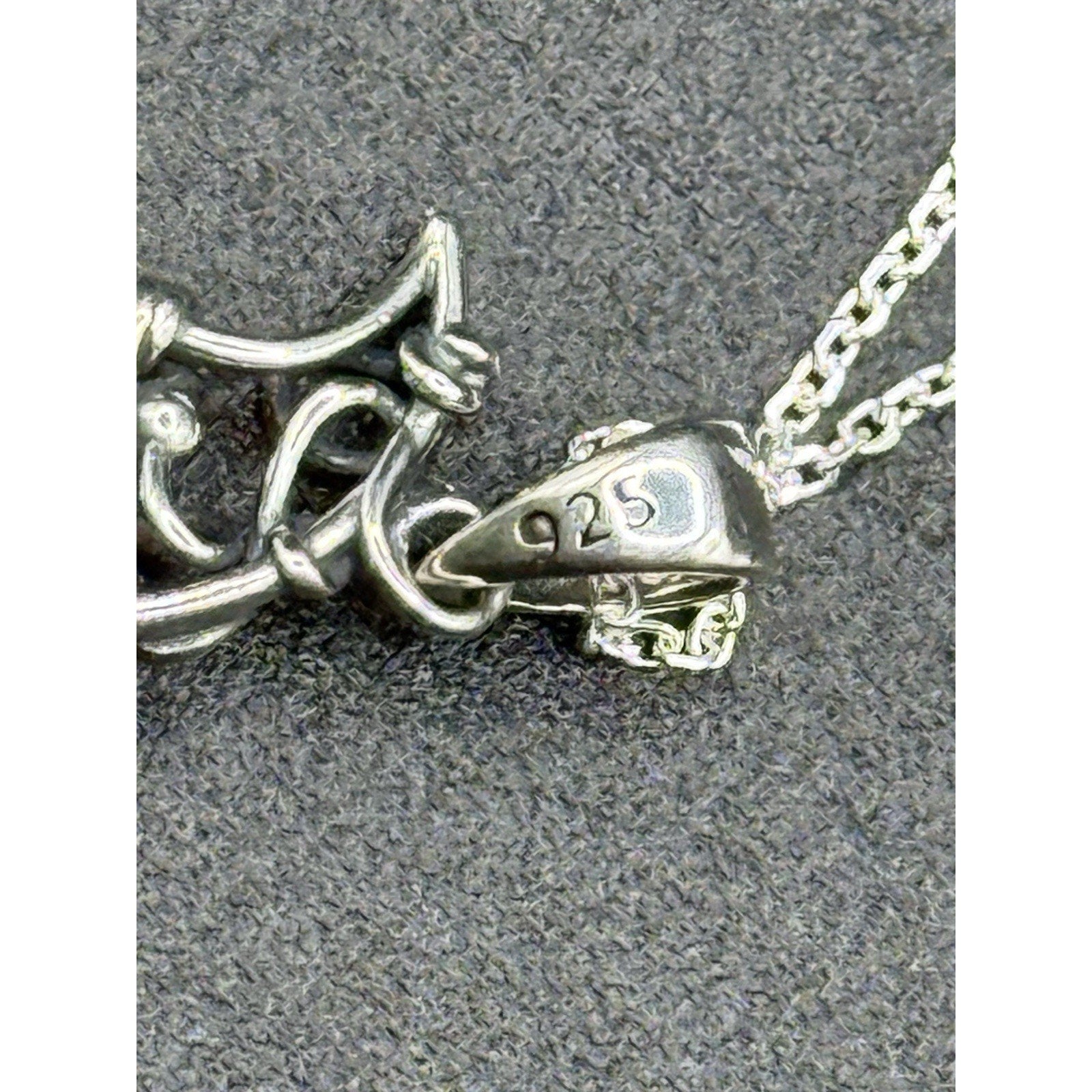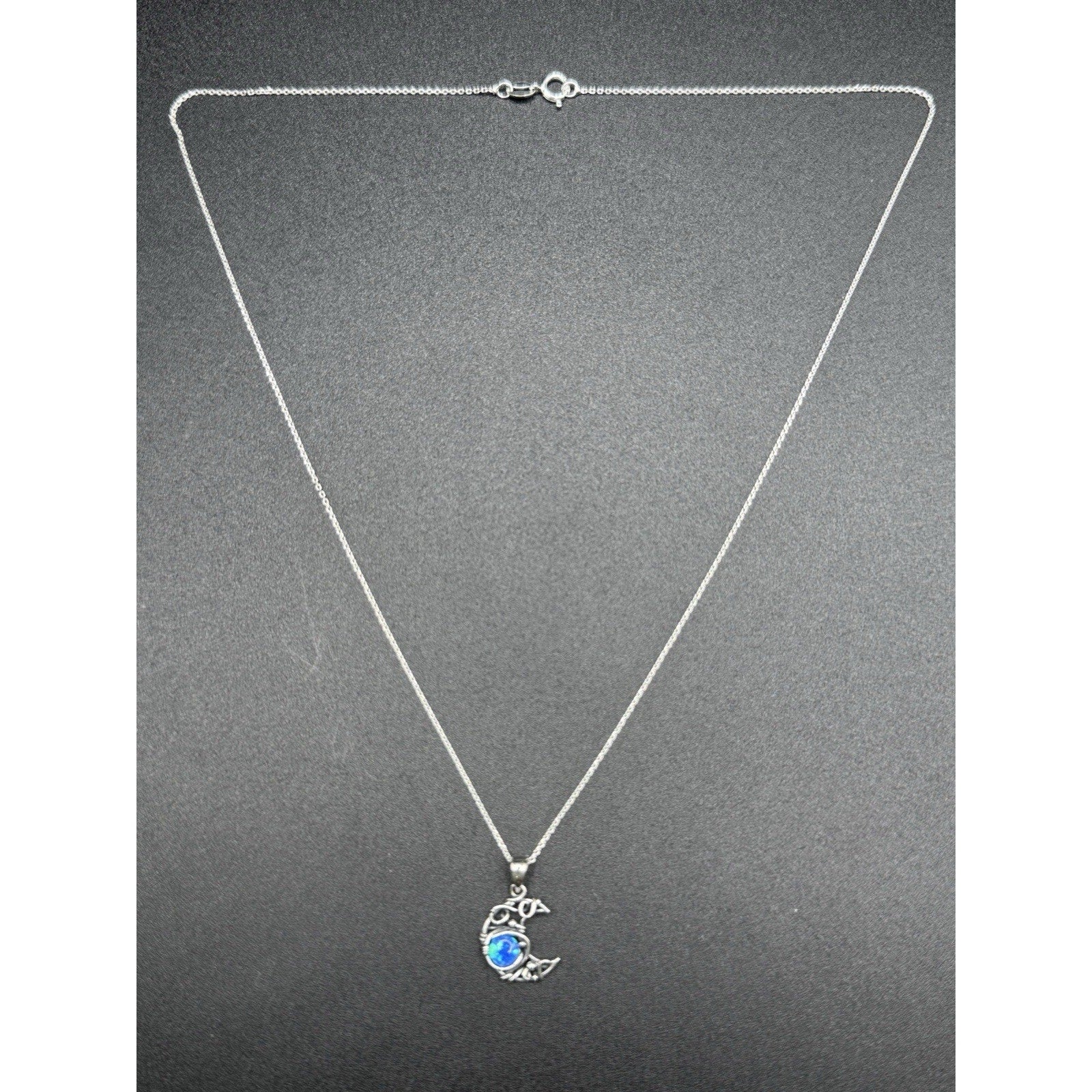 18” New Condition Sterling Silver Lab Blue Opal Artisan Crescent Moon Pendant