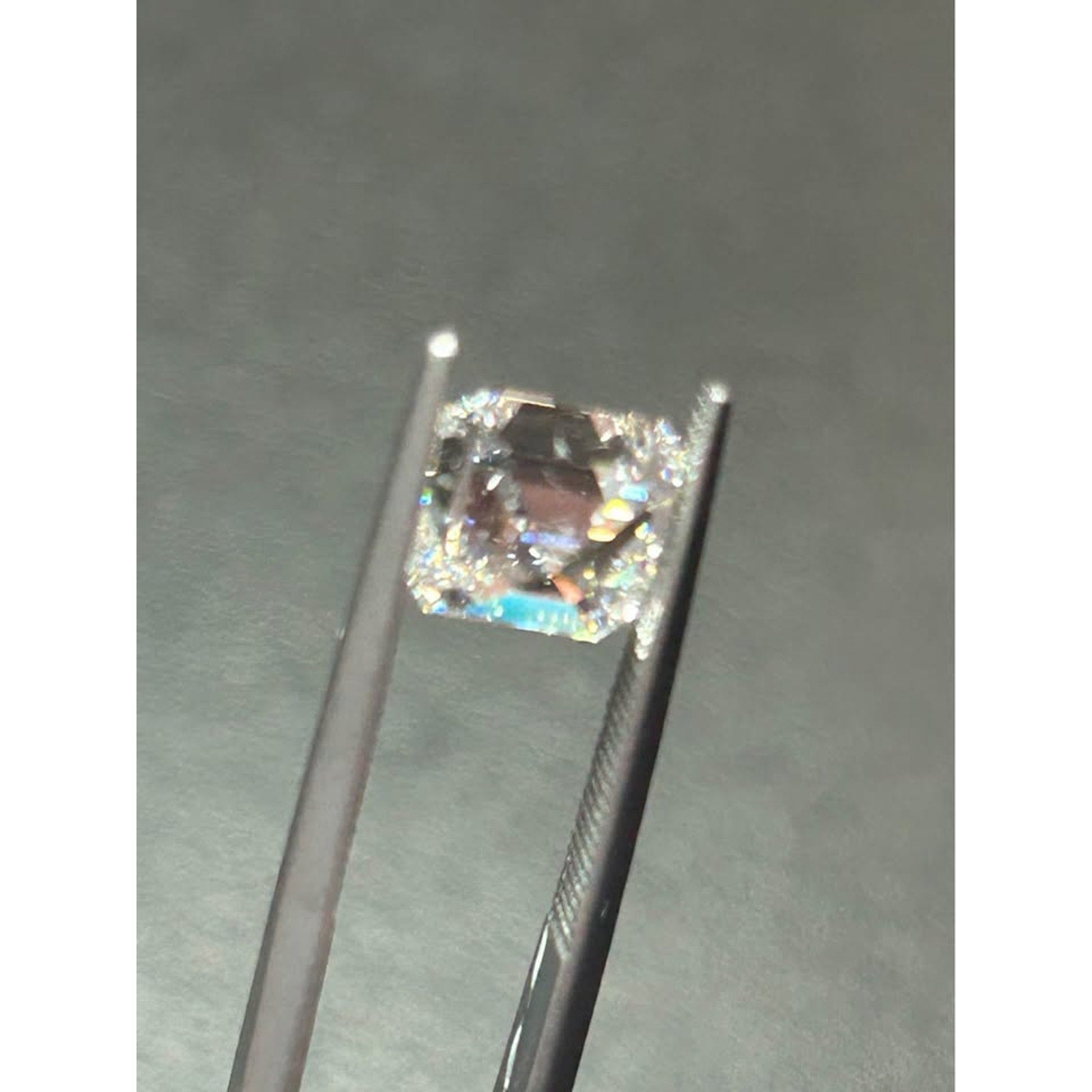 2.57 carat weight Asscher lab grown diamond. E color VVS2 clarity. IGI lab report.