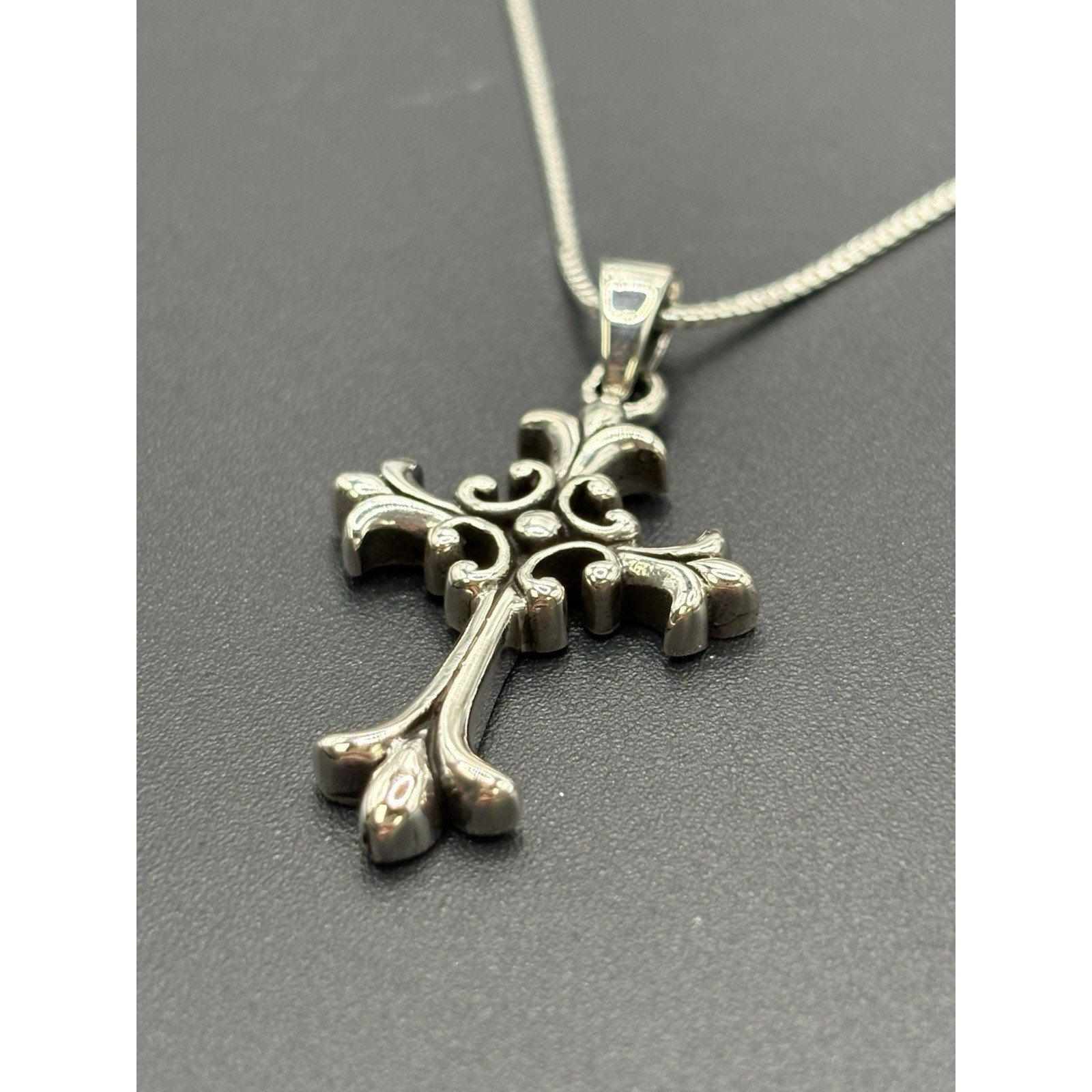 20" New Condition Sterling Silver Gothic Cross Pendant Necklace