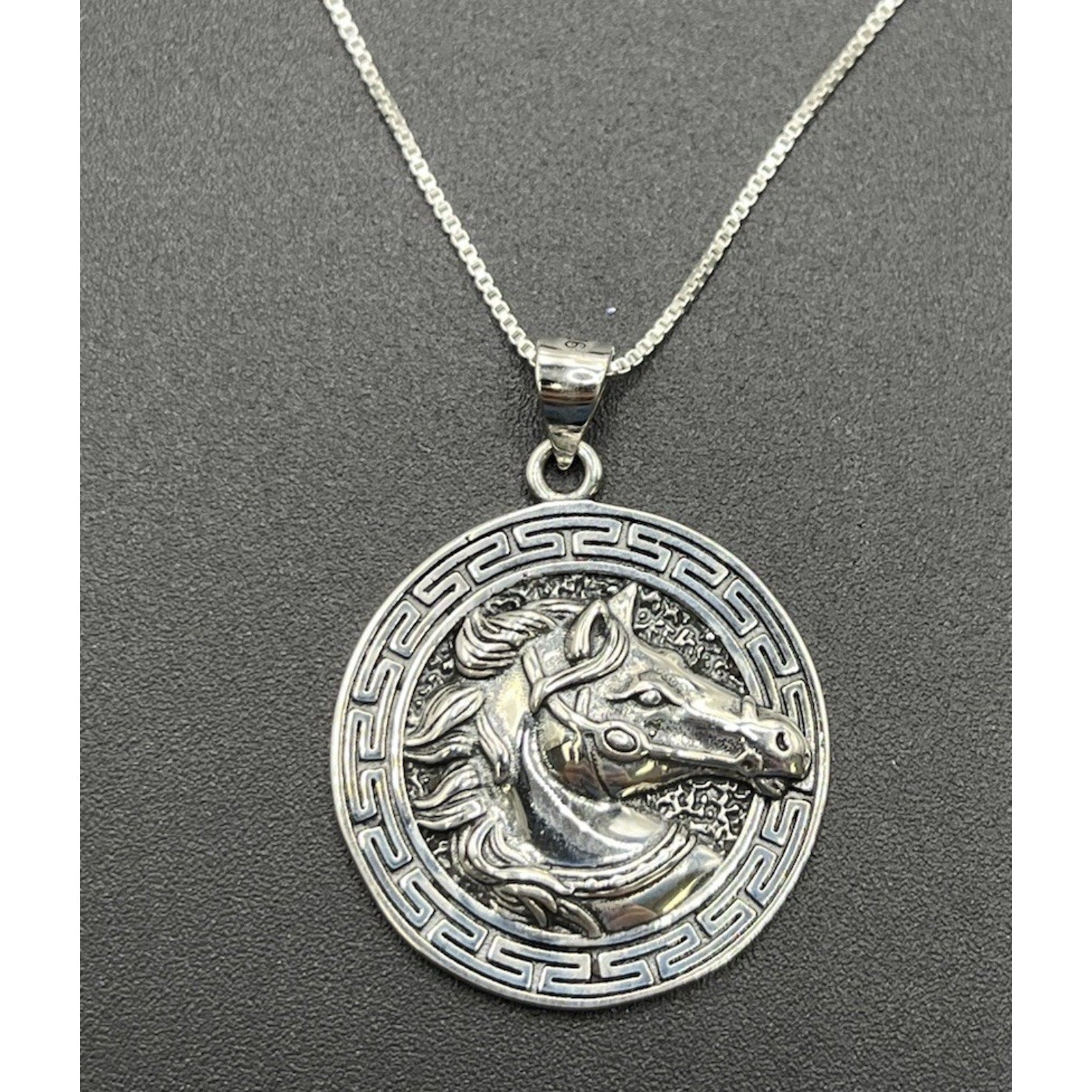 20" New Condition Sterling Silver Horse Pendant Necklace Box Chain