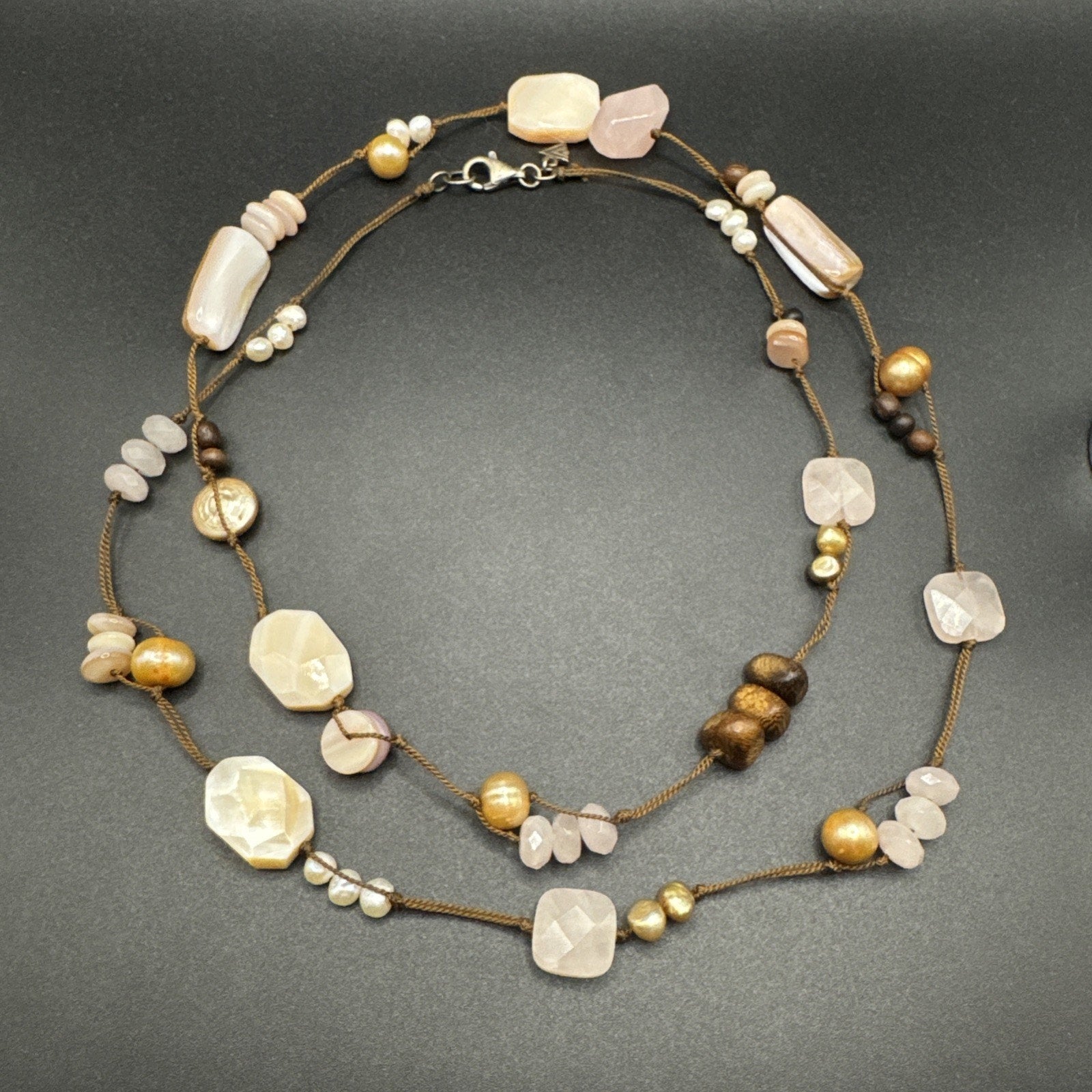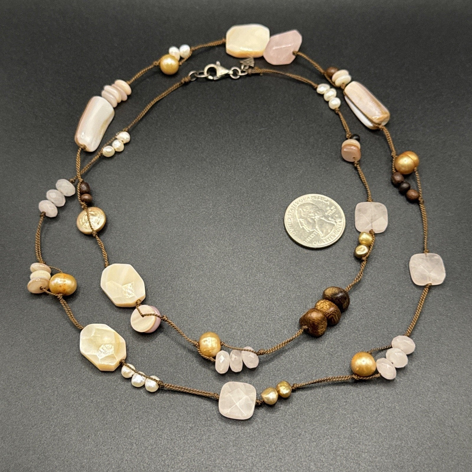 35” Sterling Silver Silpada Quartz Pearl Quartz Agate Rope Necklace T30