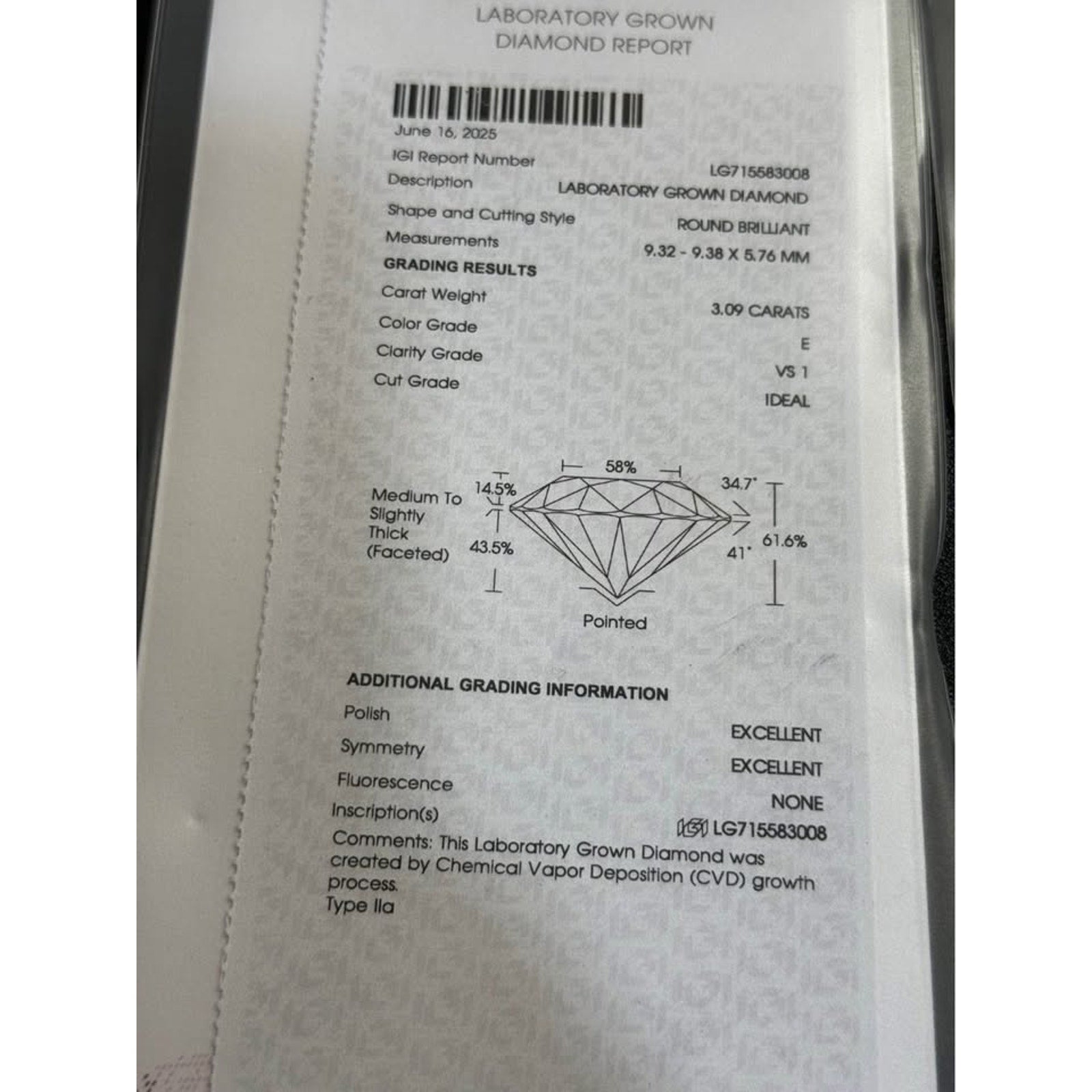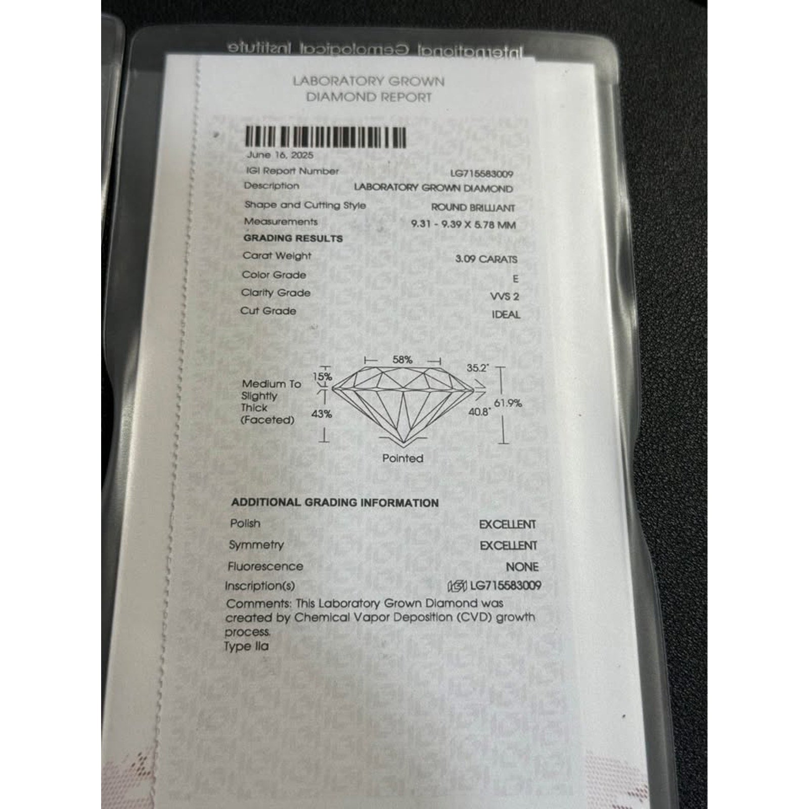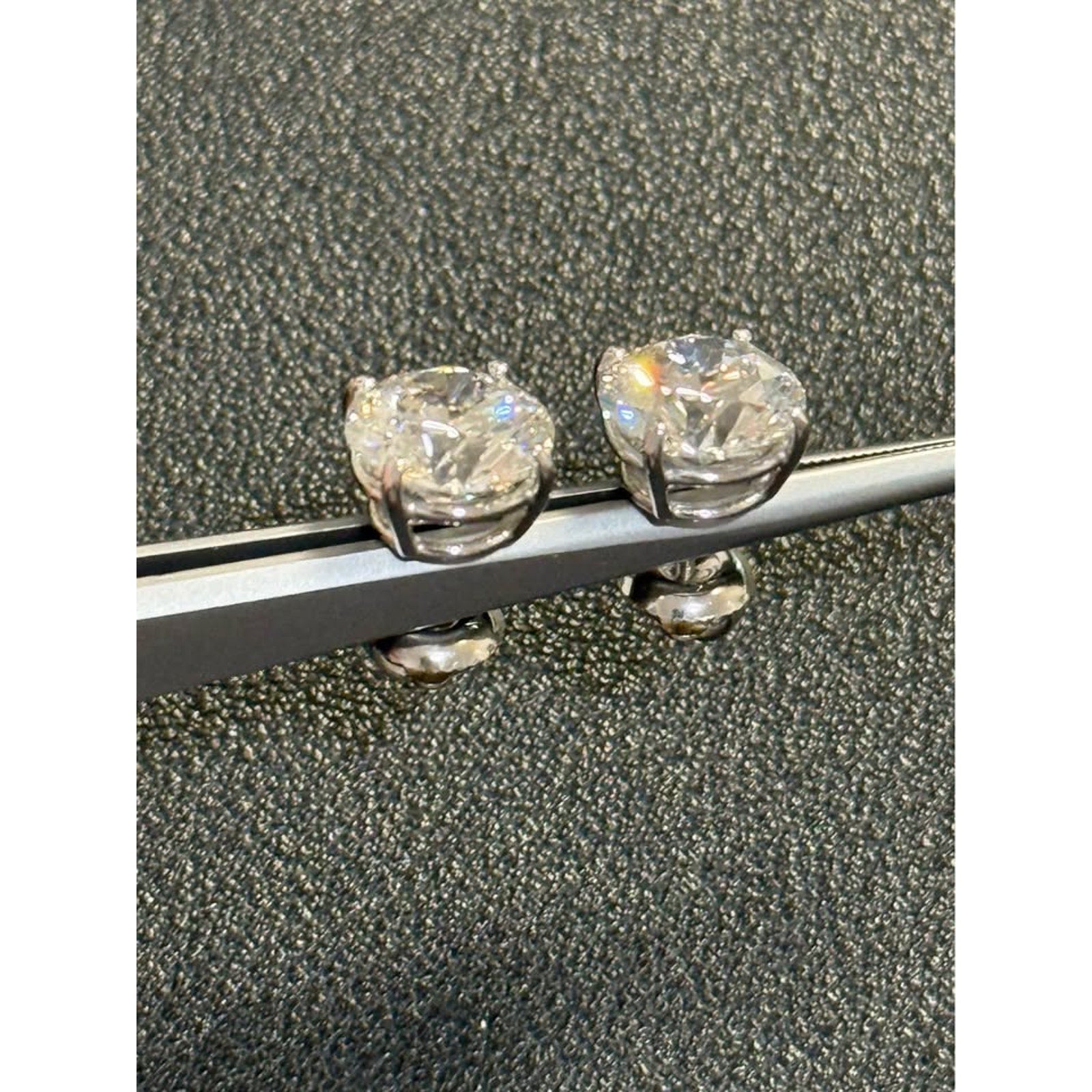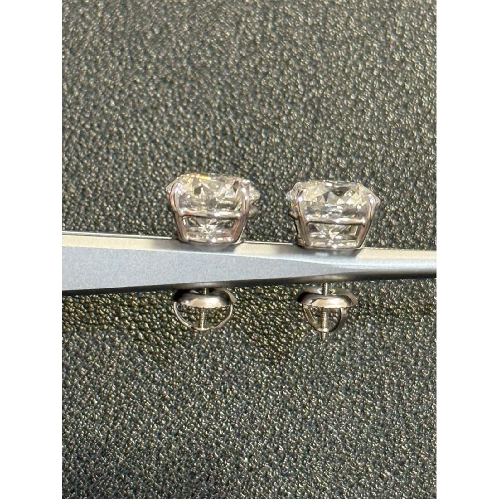 6.18 carat weight round lab grown diamond stud earrings. E color VS1VVS2 clarity. IGI lab reports.