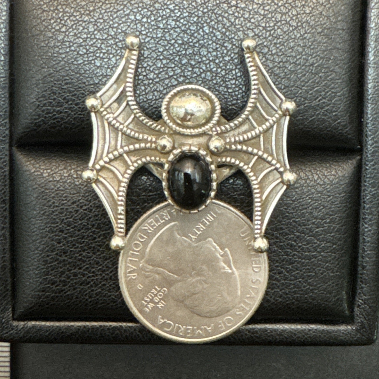 EUC Sterling Silver Onyx Spider Web Ring 8g Size 7 U5
