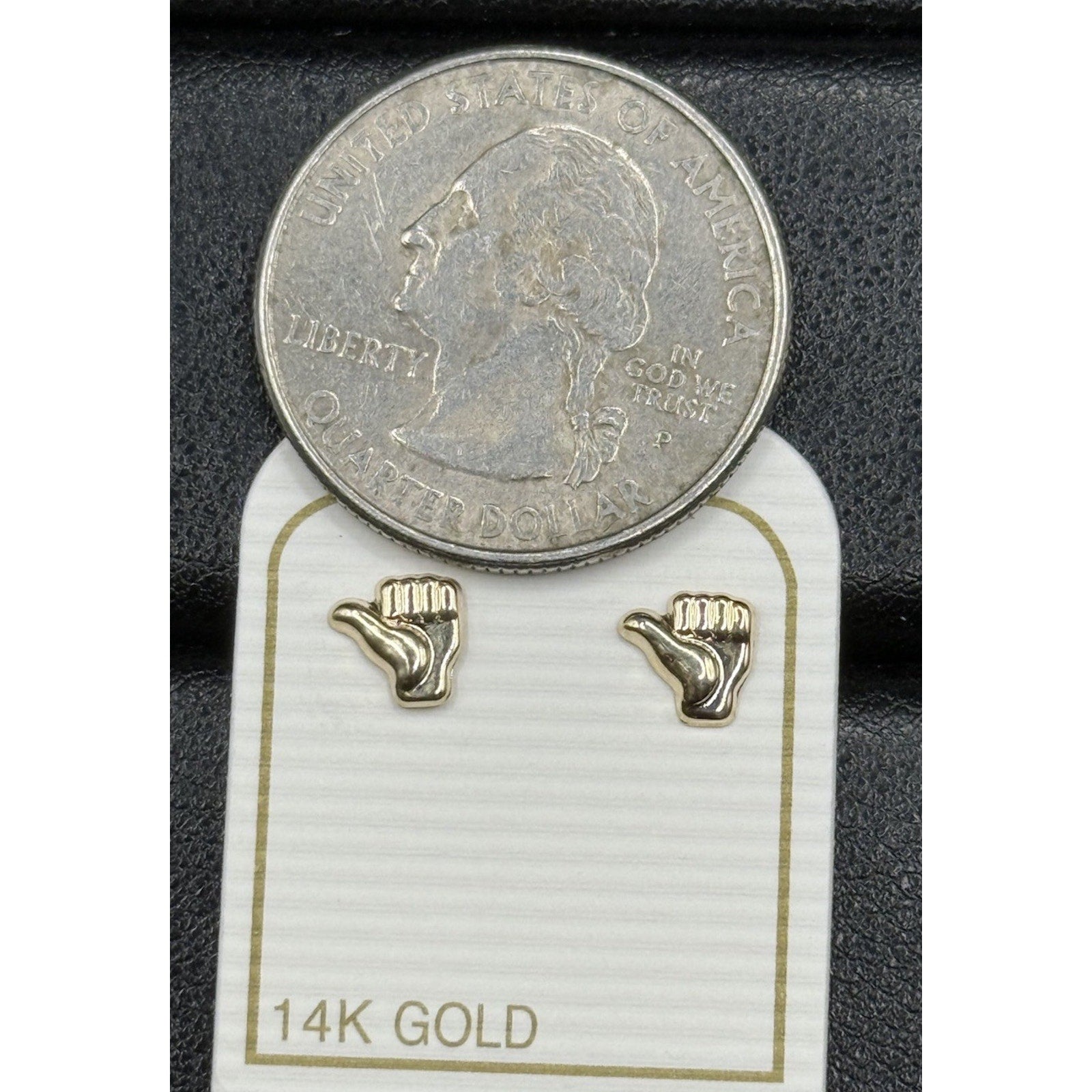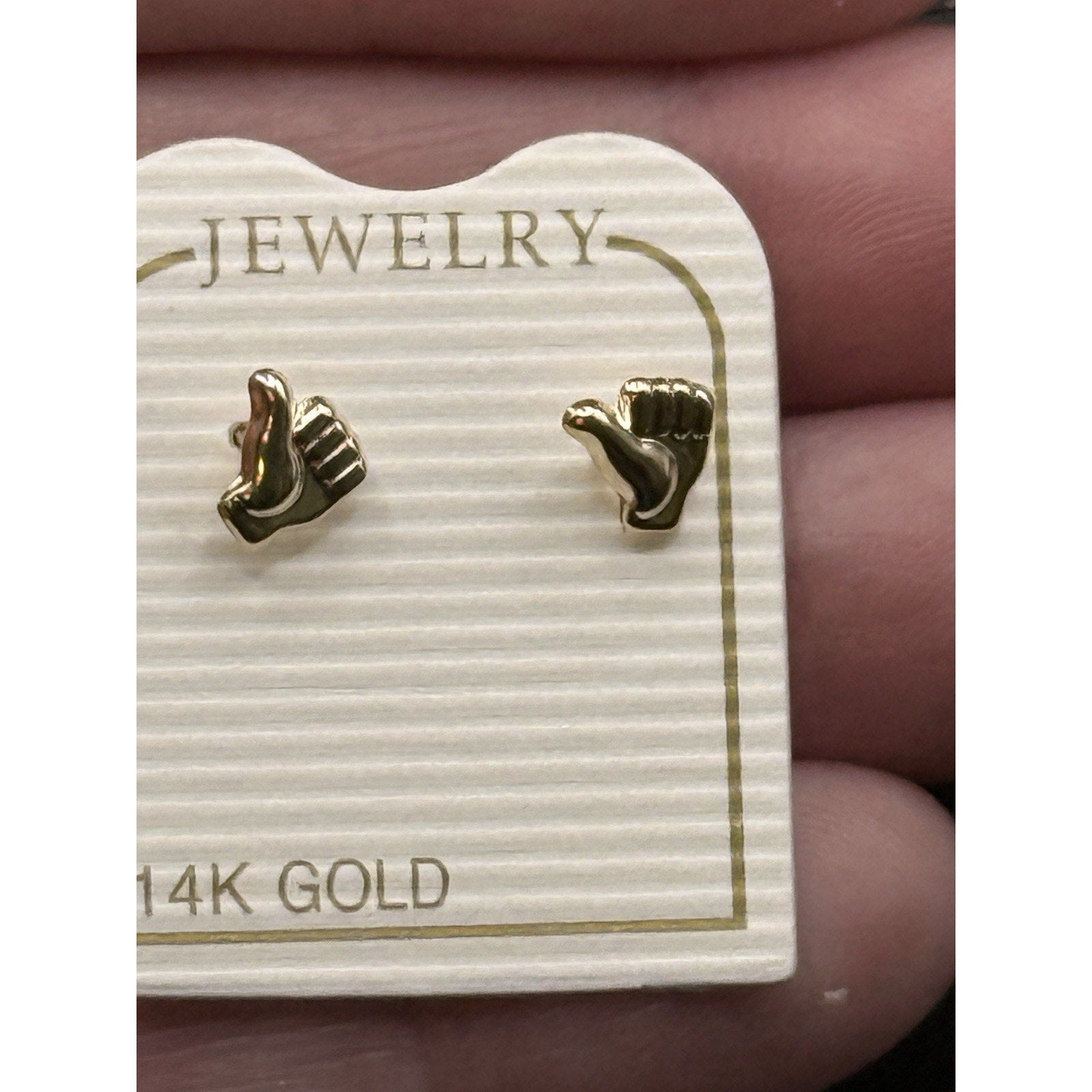 New Condition 14k Gold Thumbs Up Dainty Stud Earrings