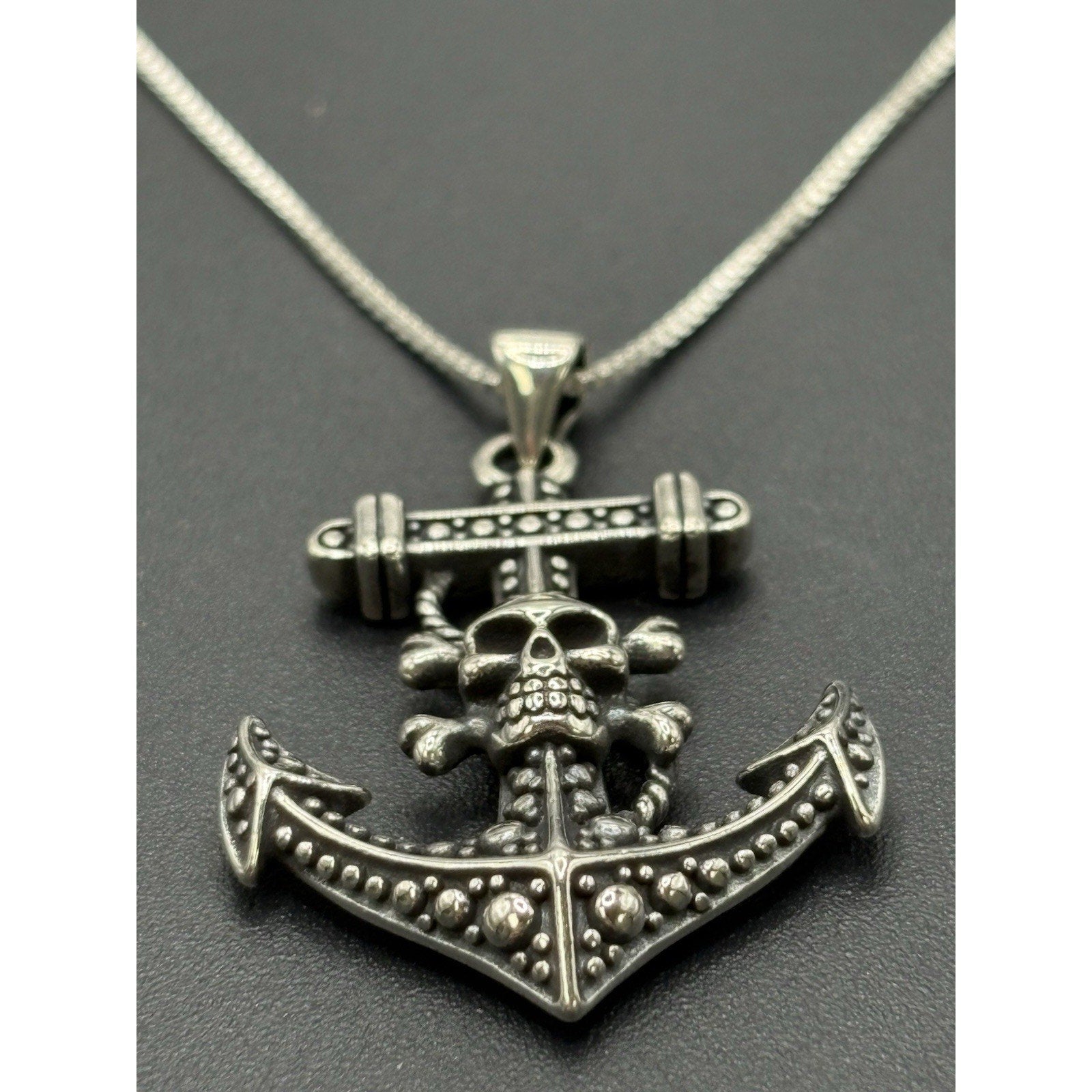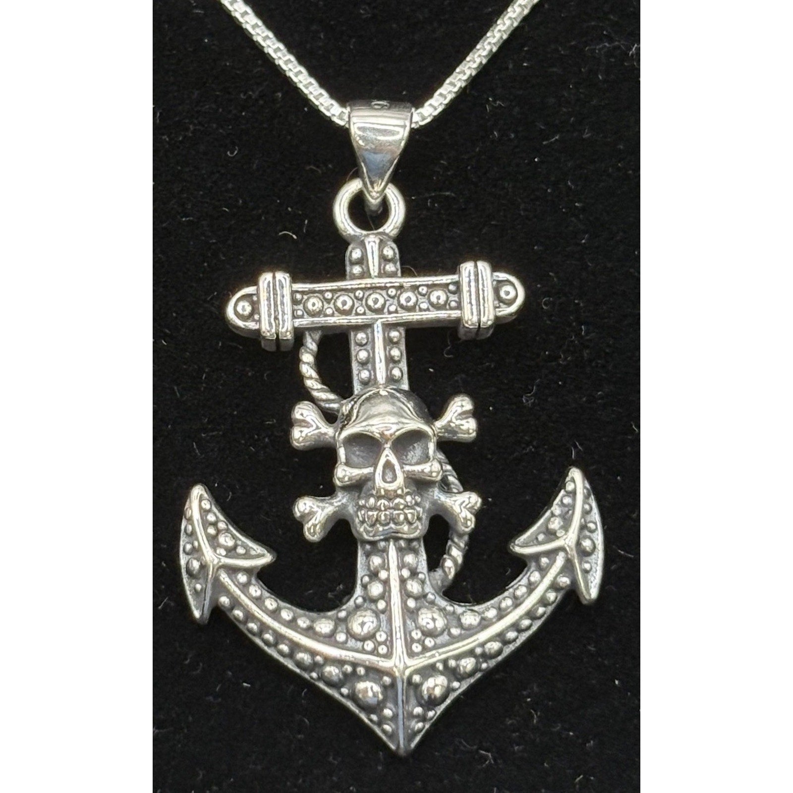 New Condition 20" Sterling Silver Skull Anchor Pendant Necklace