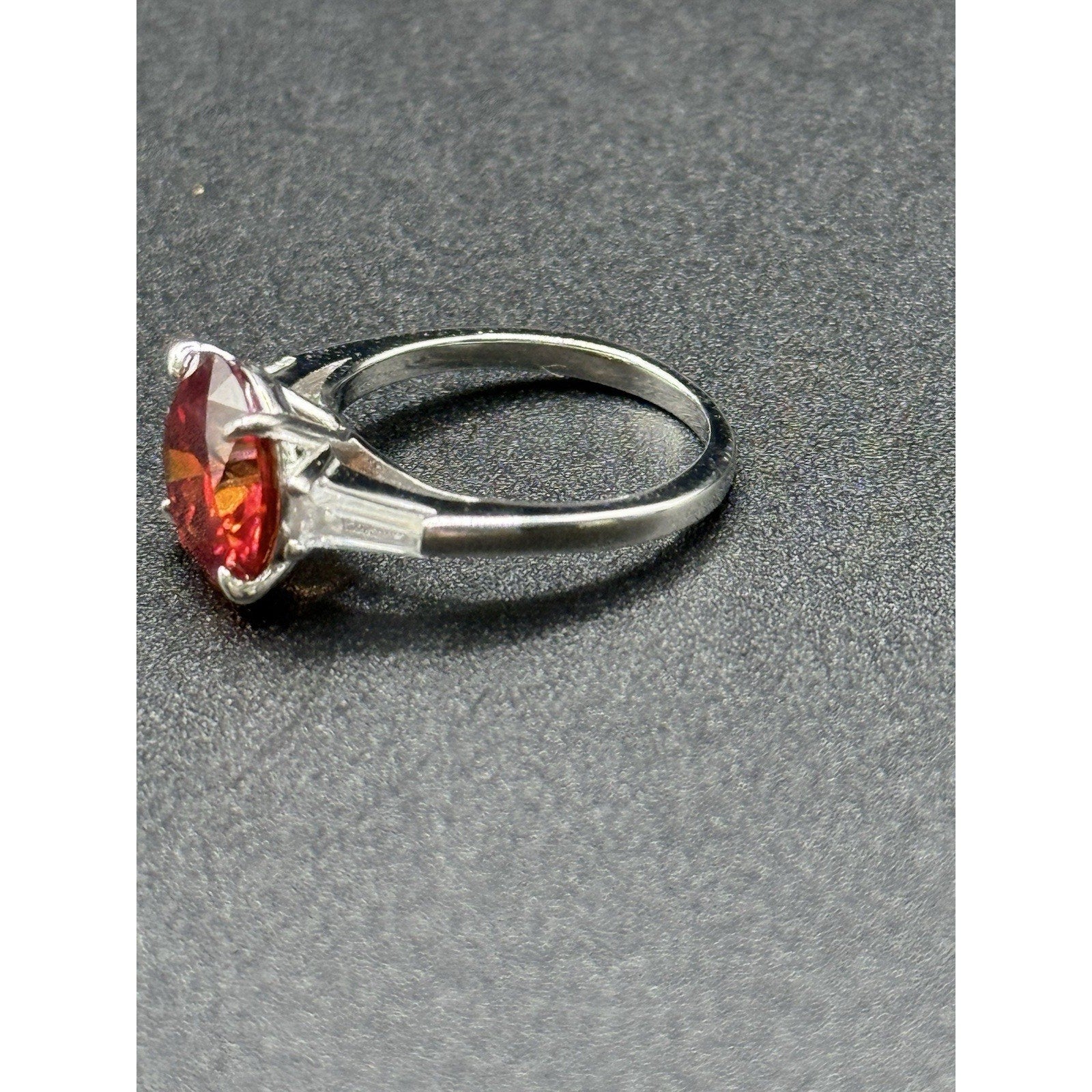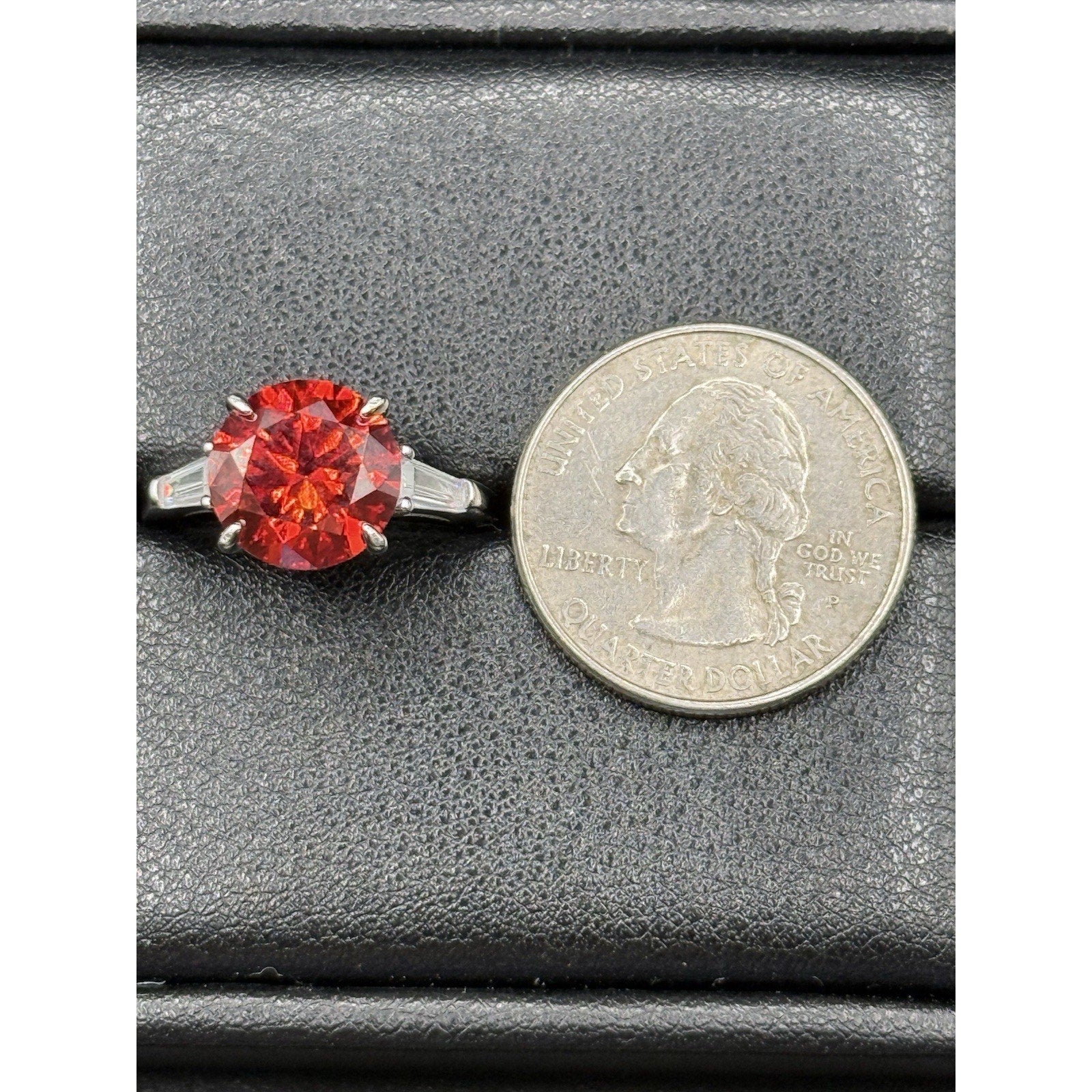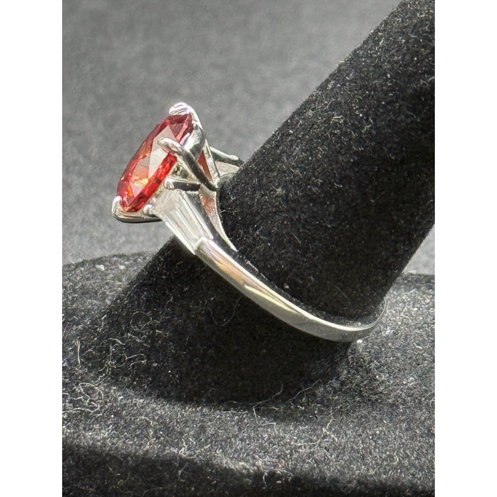 New Condition 5 Carat Red Moissanite Sterling Silver Ring Size 7.00 GRA