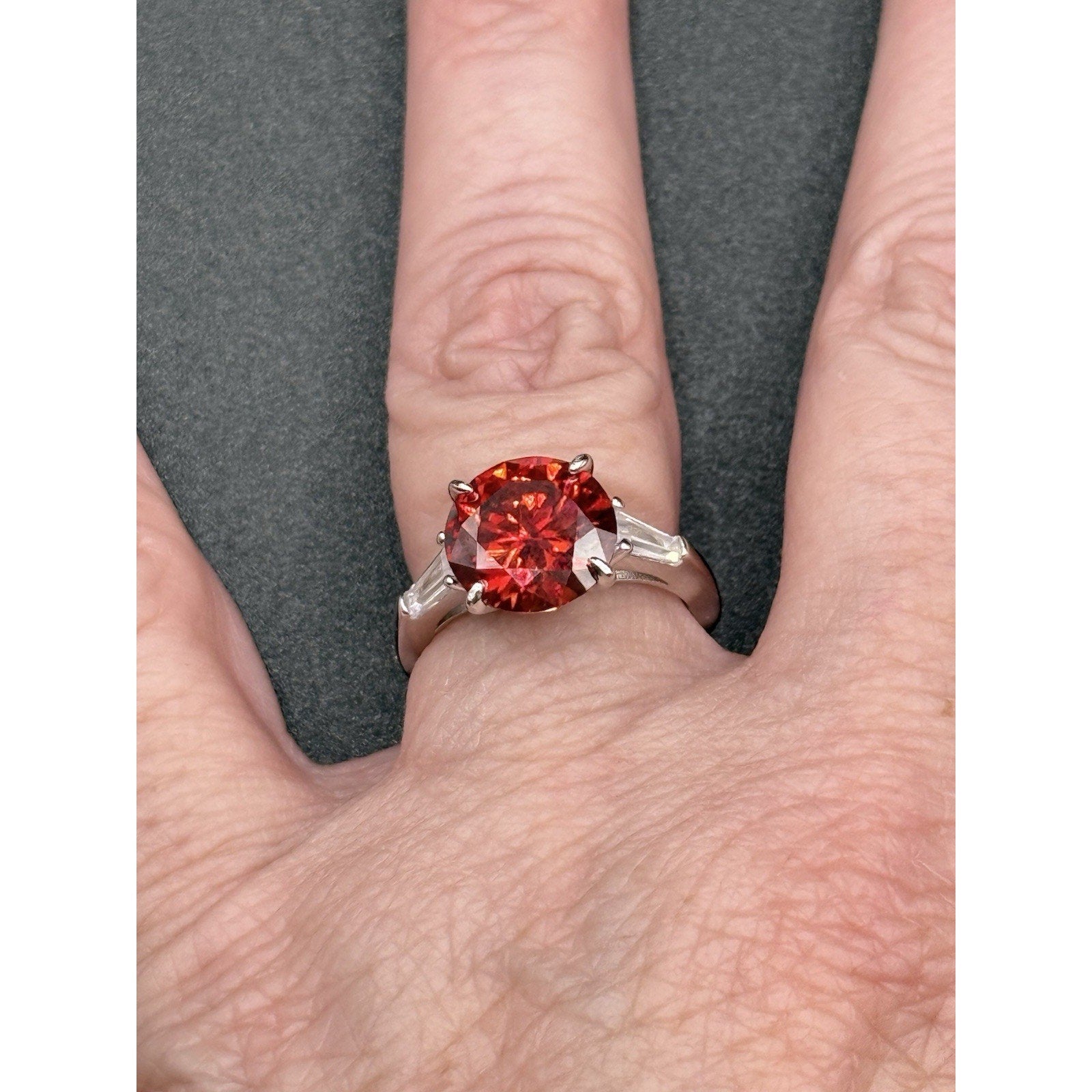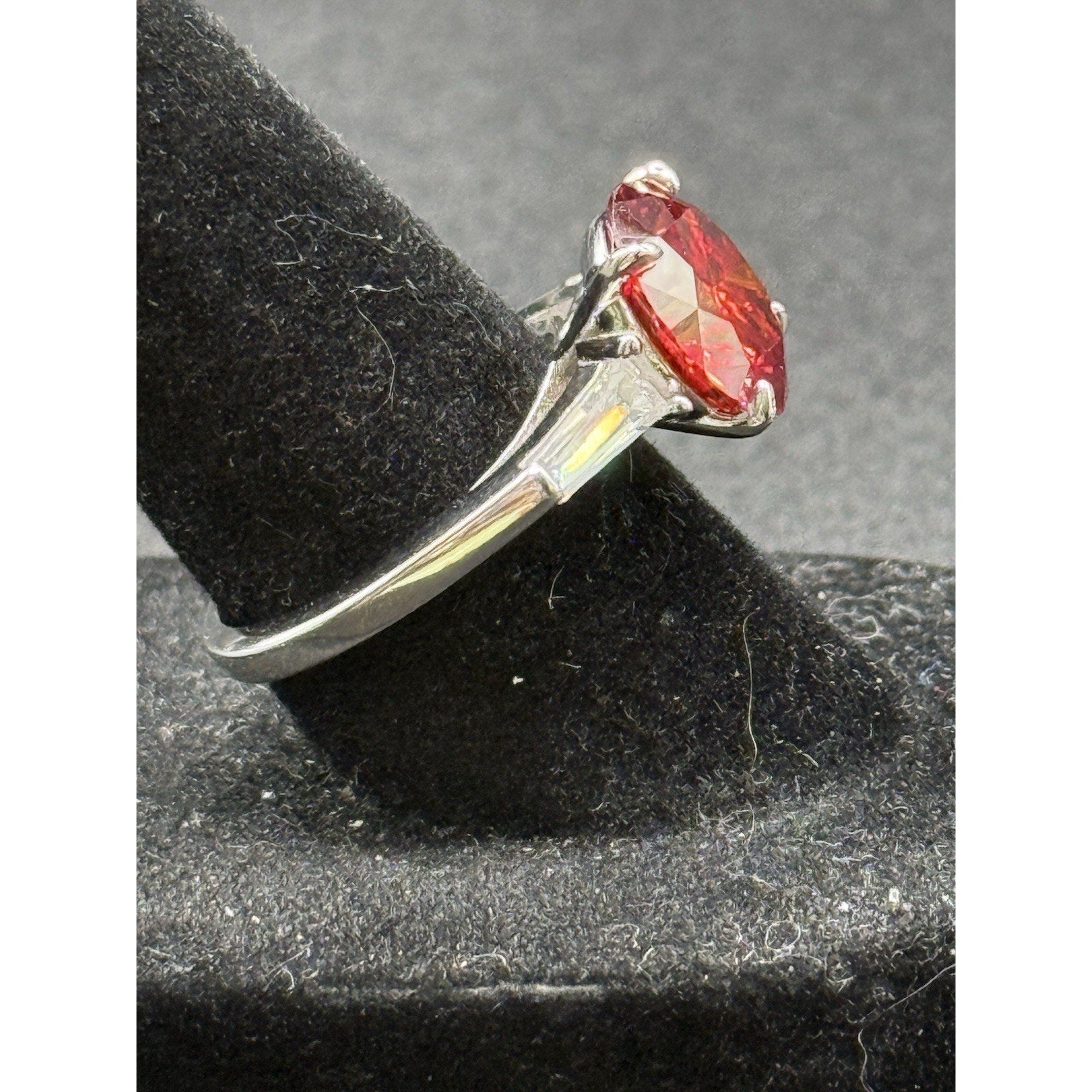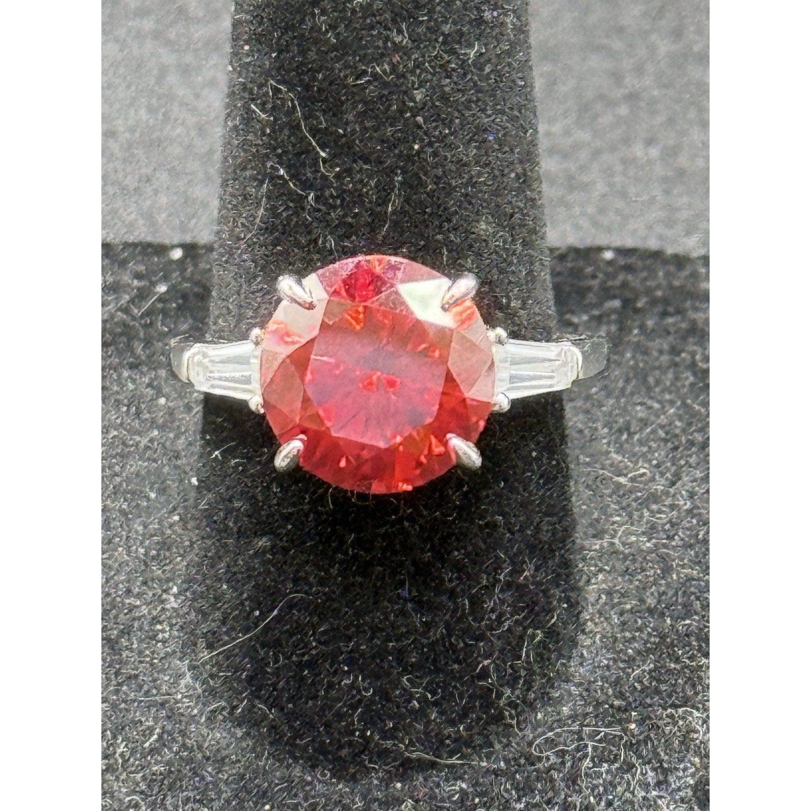 New Condition 5 Carat Red Moissanite Sterling Silver Ring Size 7.00 GRA