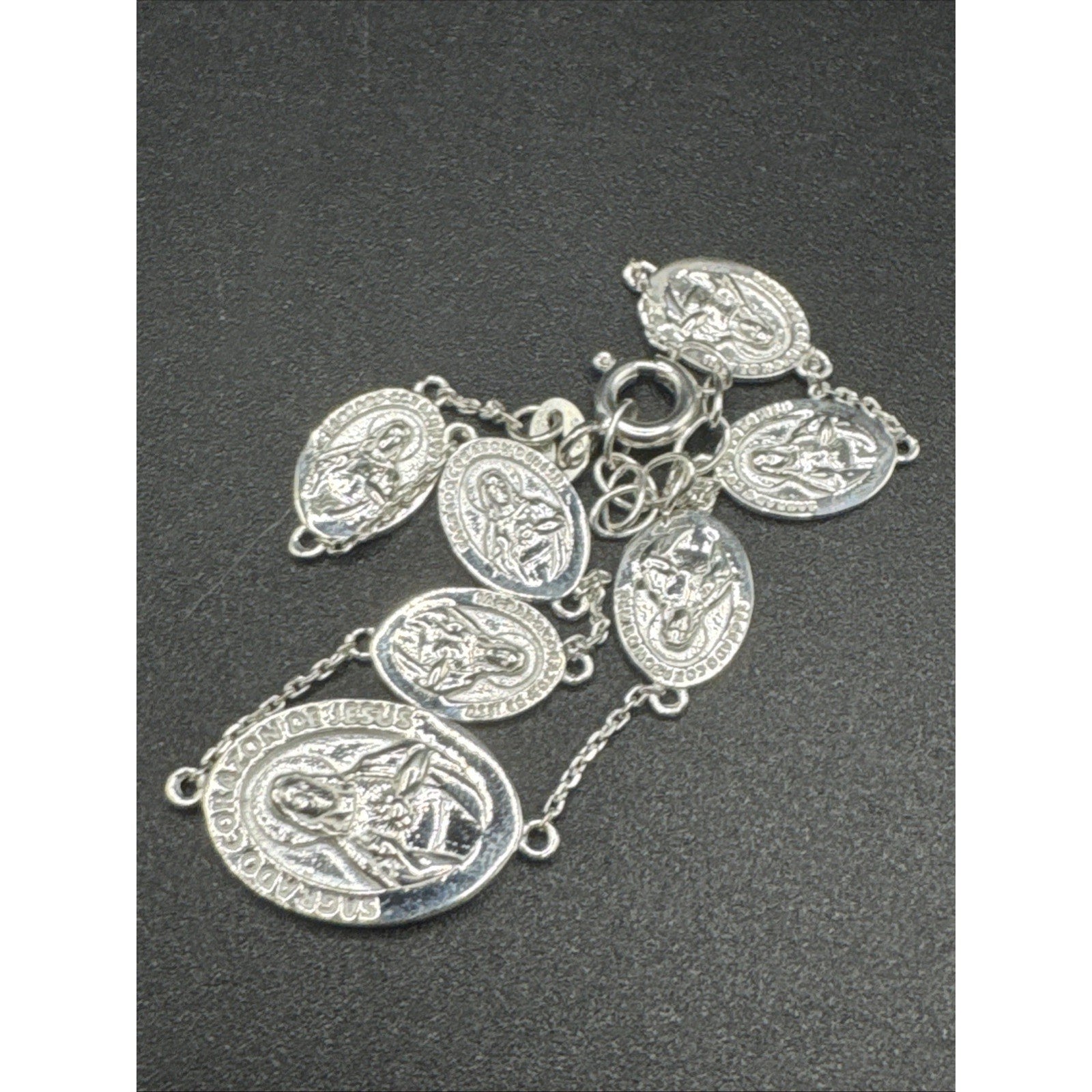 New Condition 7” Sterling Silver Jesus Christ Medals Bracelet 925
