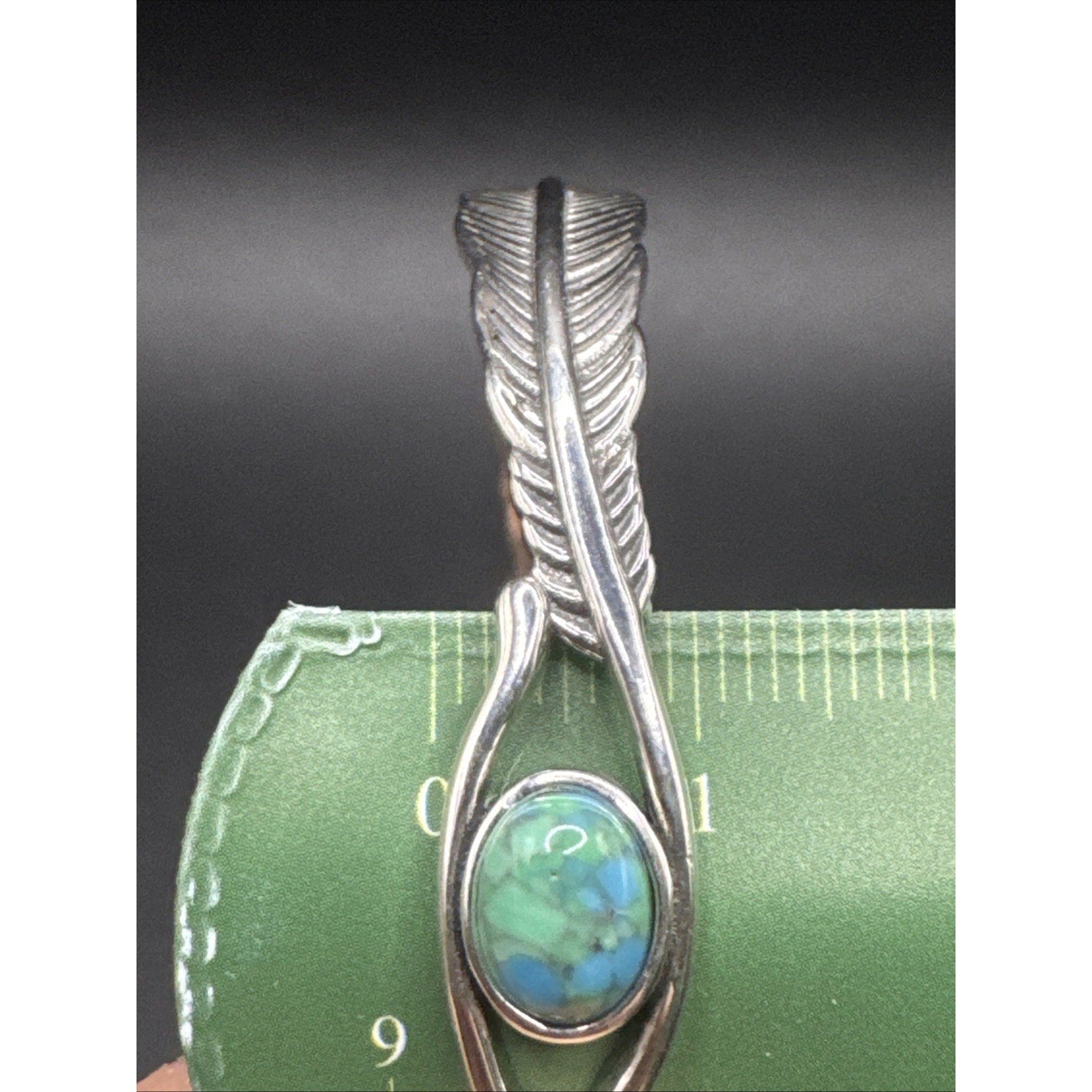 New Condition 7” Sterling Silver Turquoise Feather Cuff Bracelet 925