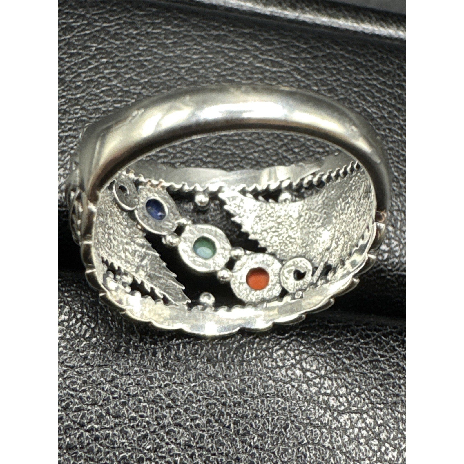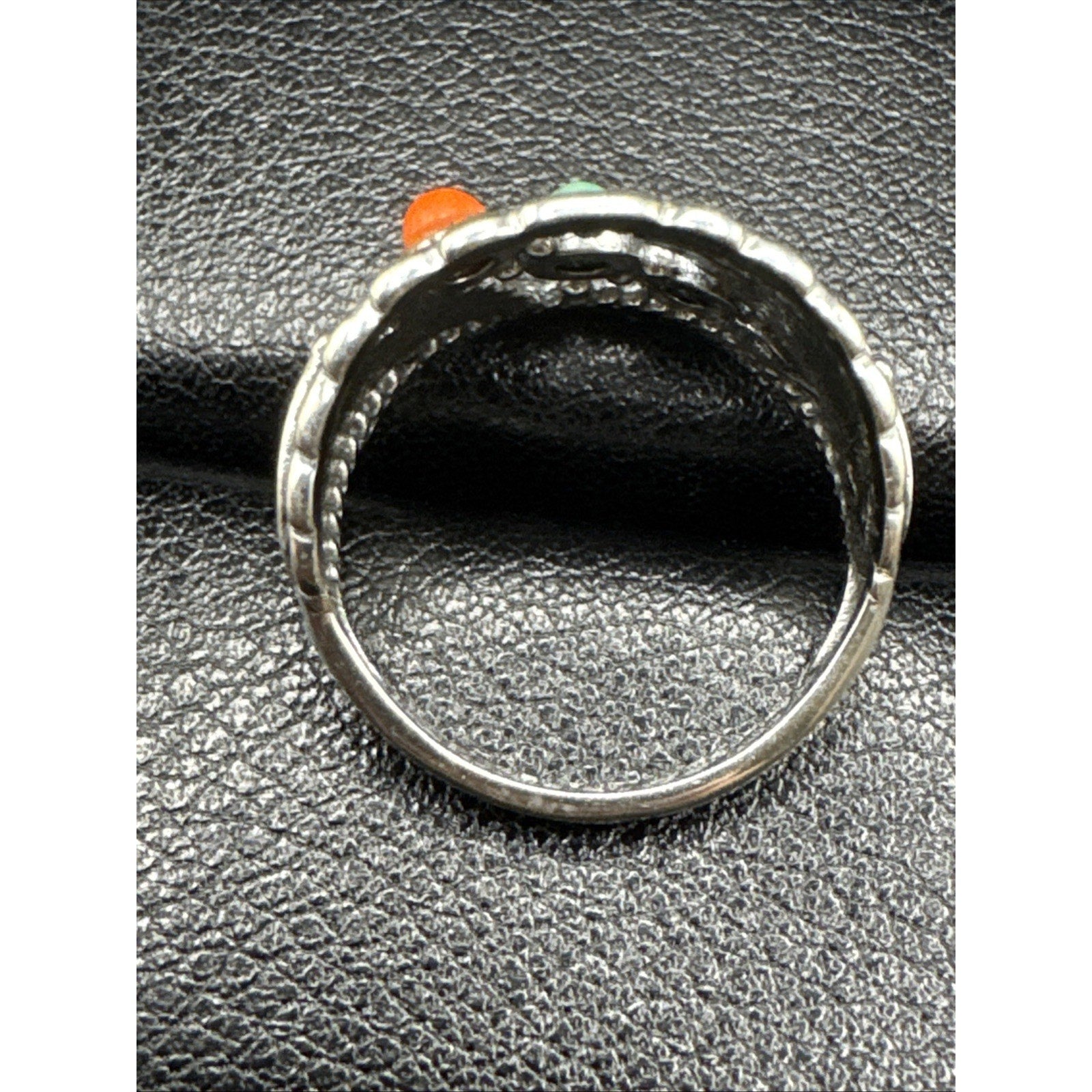 New Condition Coral Turquoise Lapis Feathers Band Ring 925 Size 7