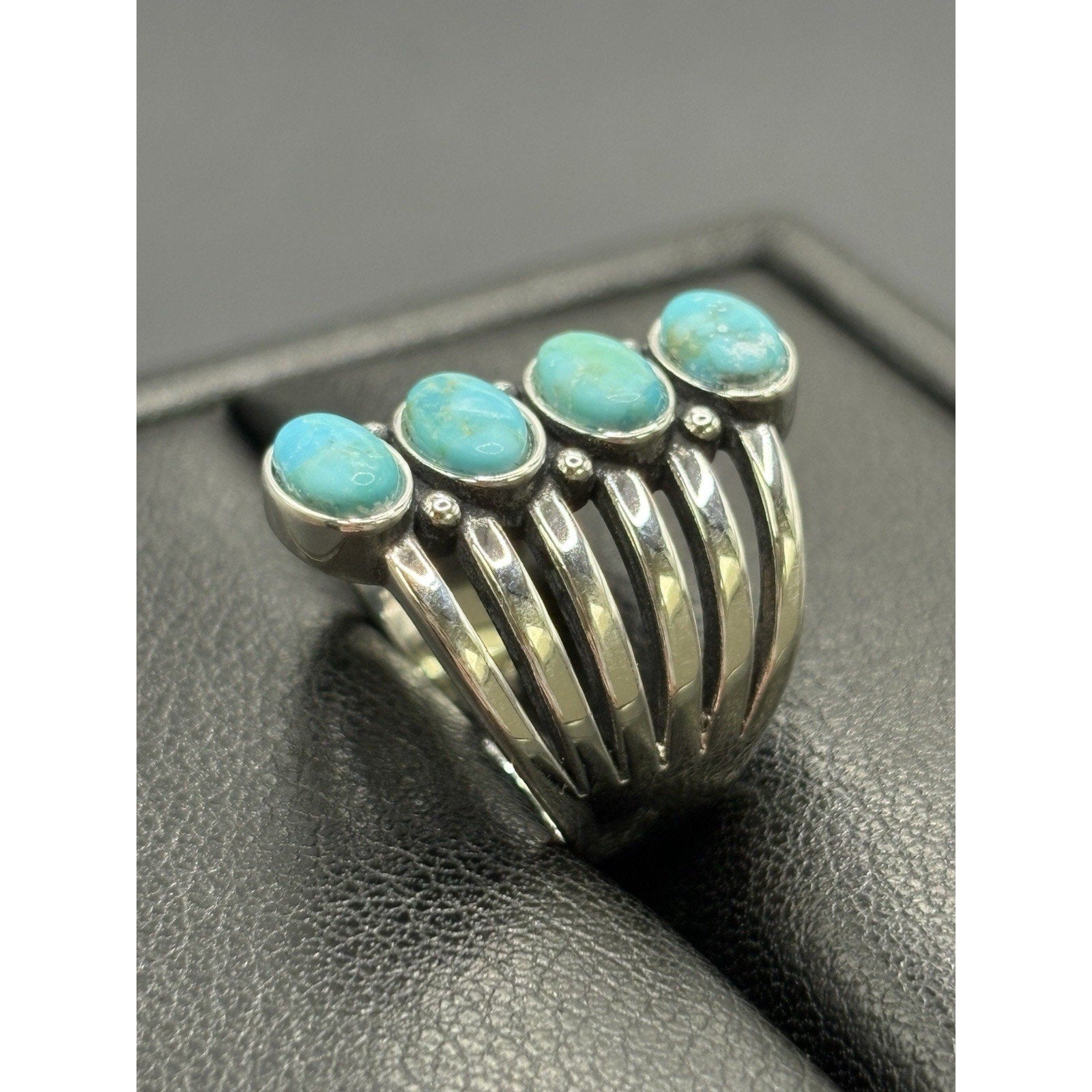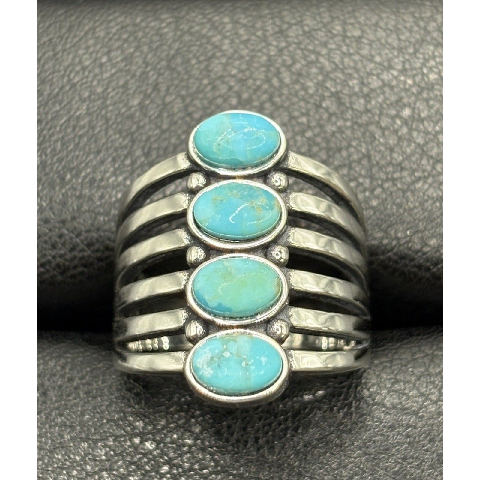 New Condition Sterling Silver 4 Vertical Turquoise Ring Size 6