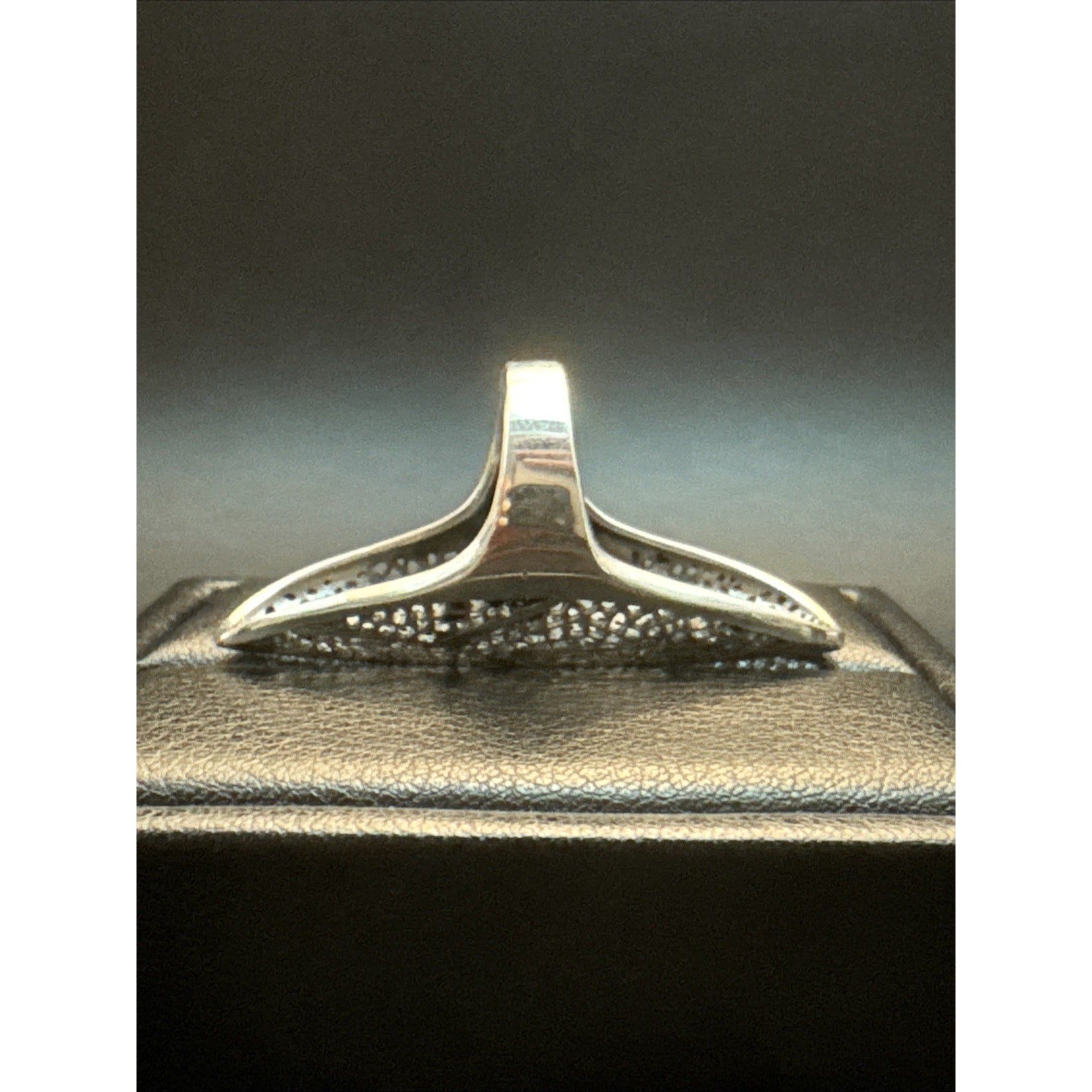 New Condition Sterling Silver 45mm Open Work Leaf Long 925 Size 7
