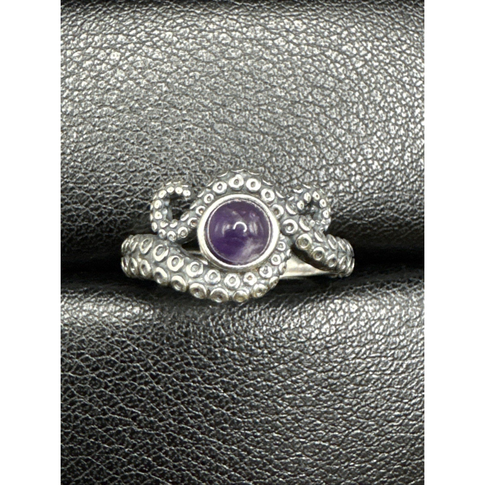 New Condition Sterling Silver Amethyst Octopus Ring 925 Size 7