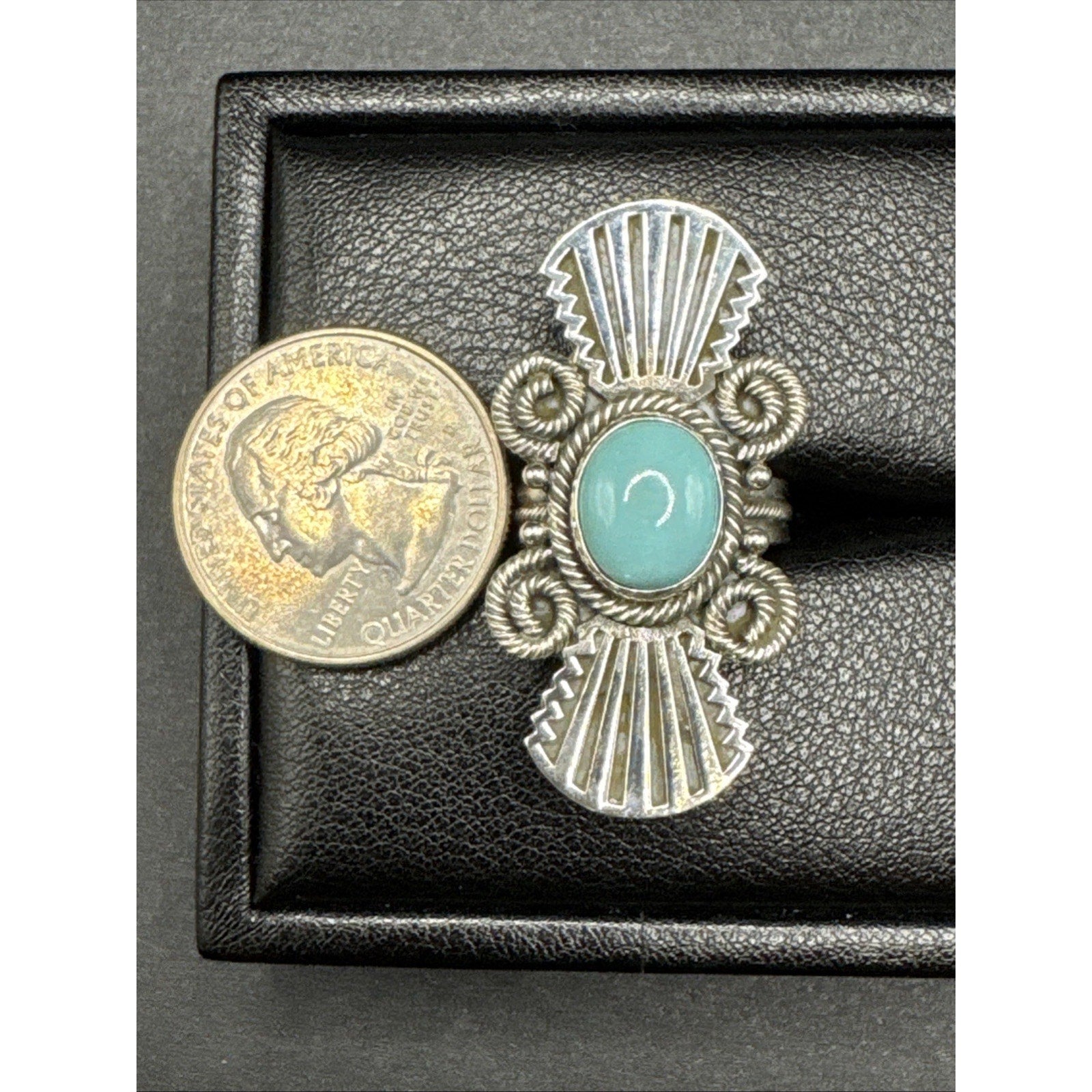 New Condition Sterling Silver Arizona Turquoise Long Ring Size 7