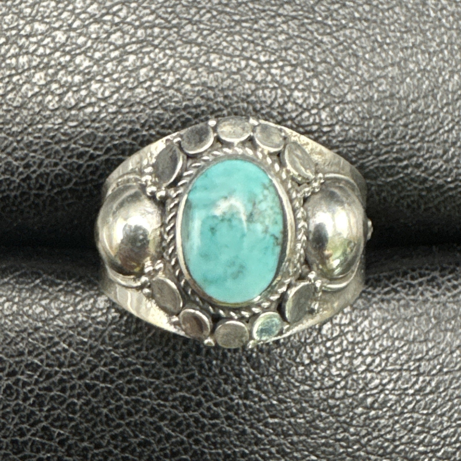 New Condition Sterling Silver Bali style Turquoise Ring Size 7