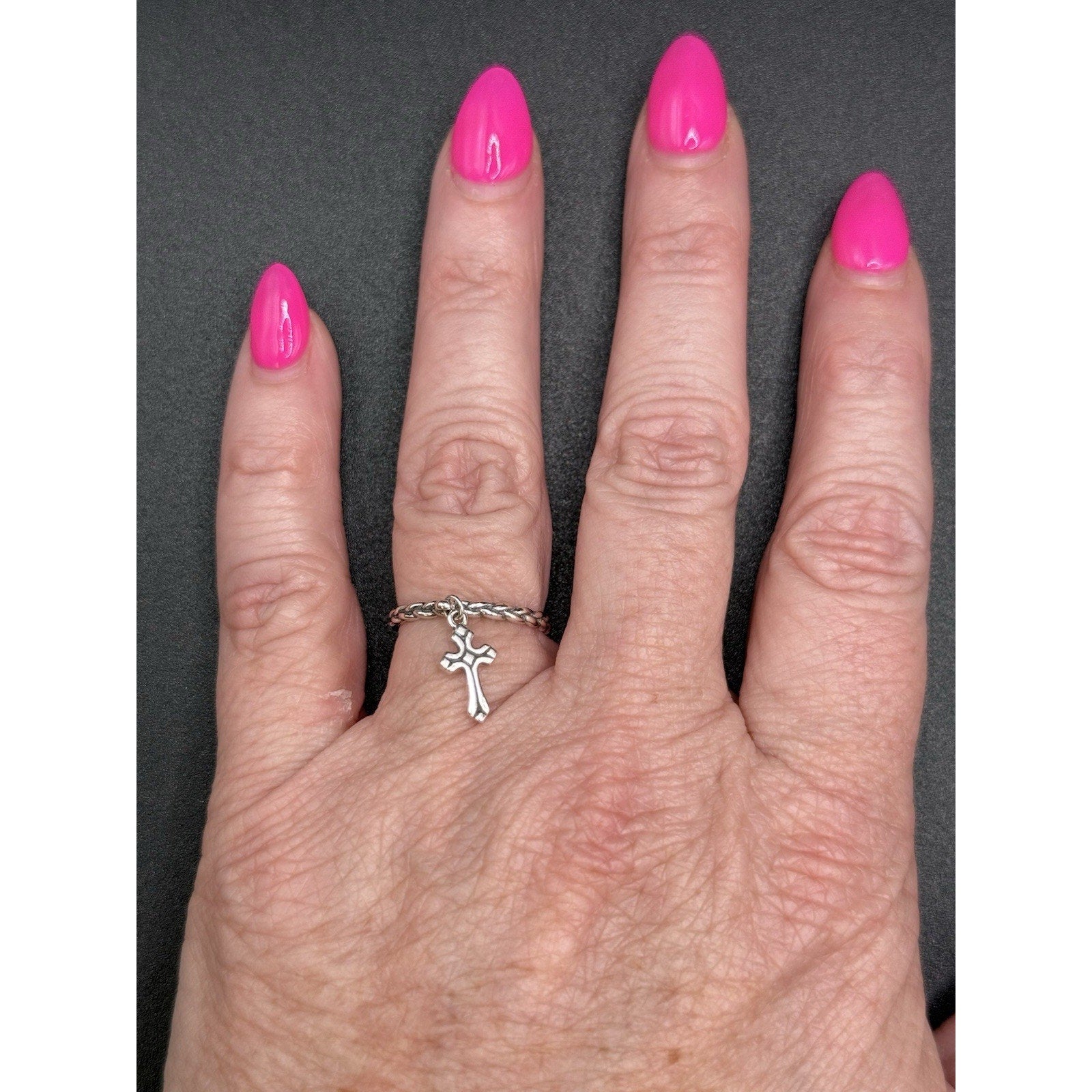 New Condition Sterling Silver Cable Cross Dangle Ring Size 7.00