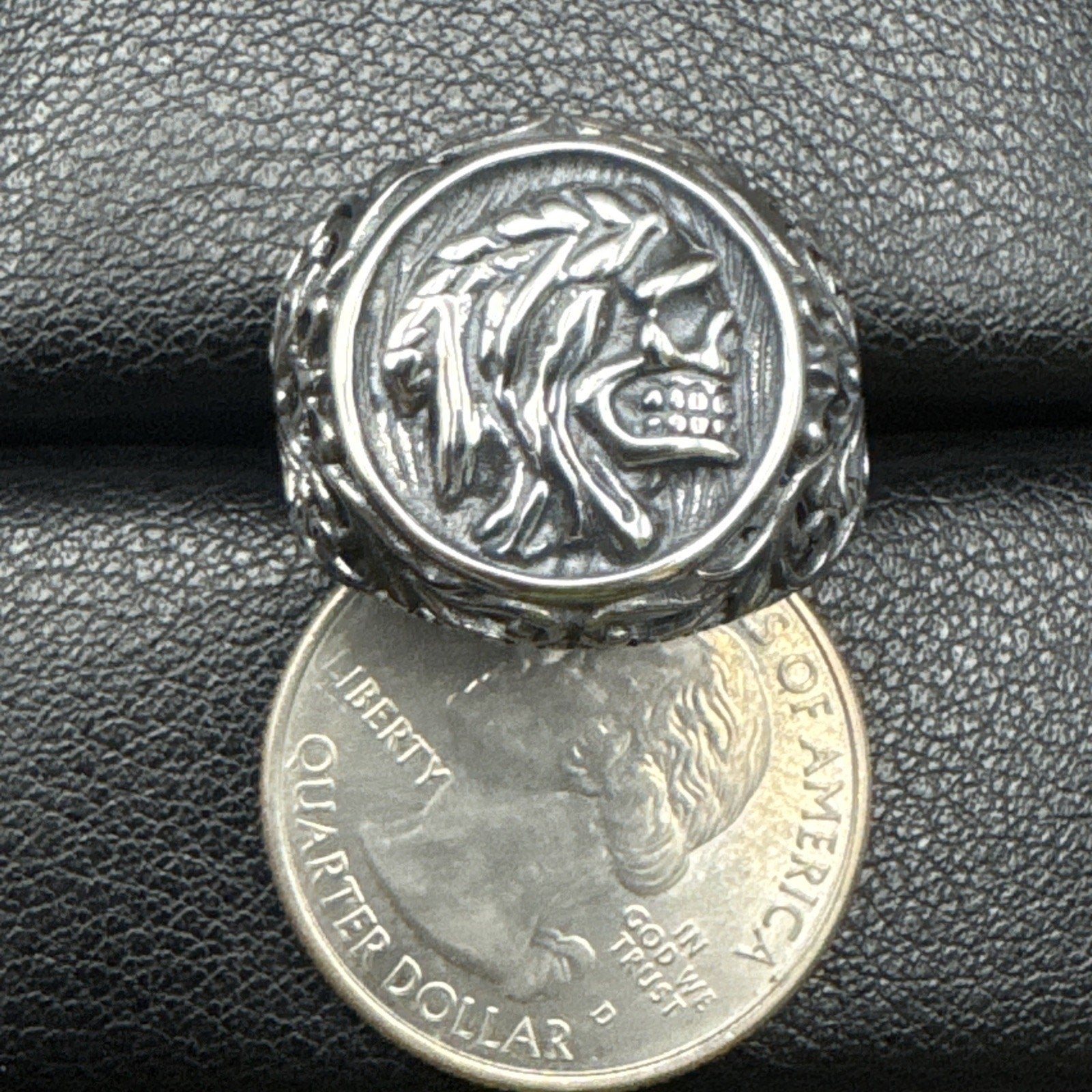 New Condition Sterling Silver Chieftain Skull Signet Ring Size 7