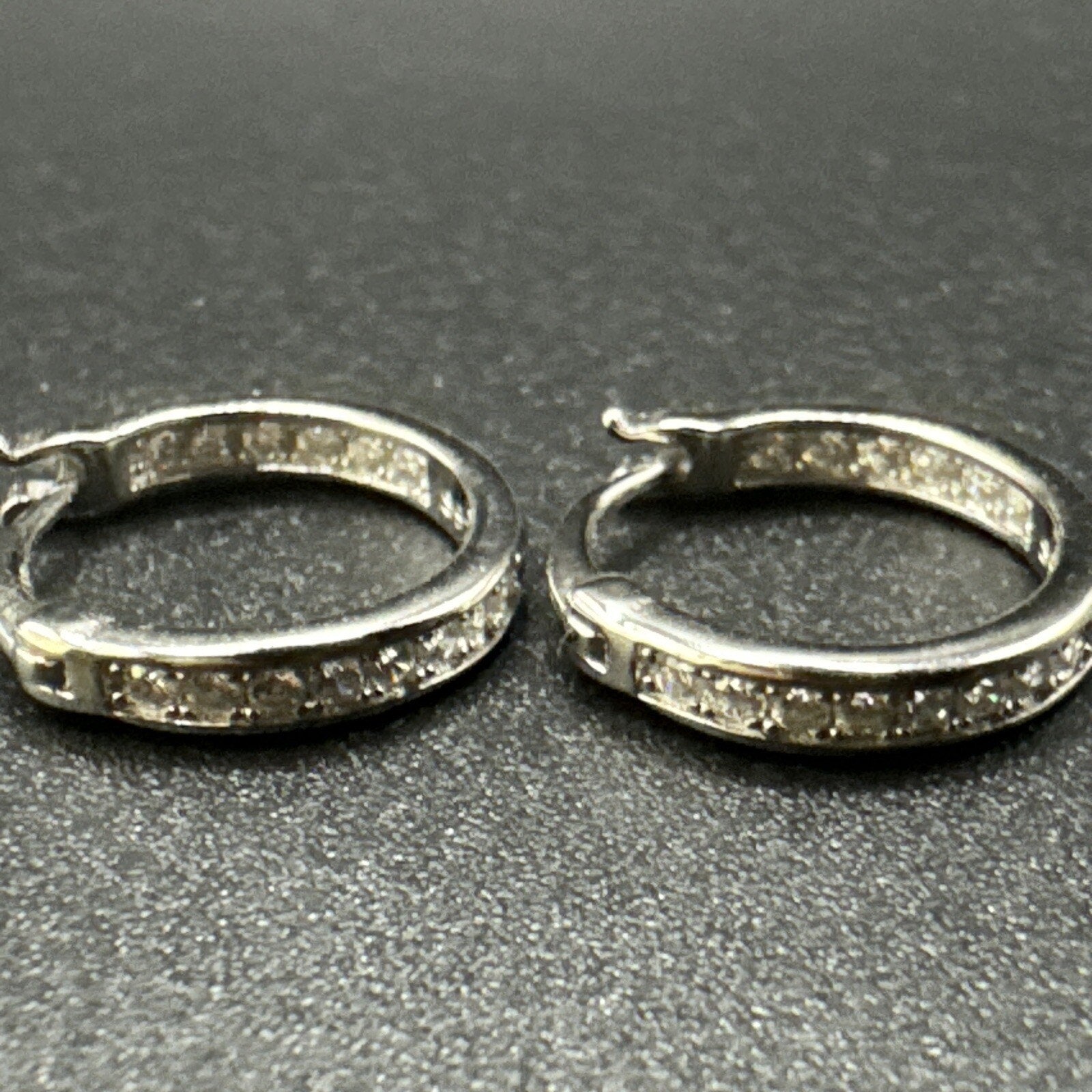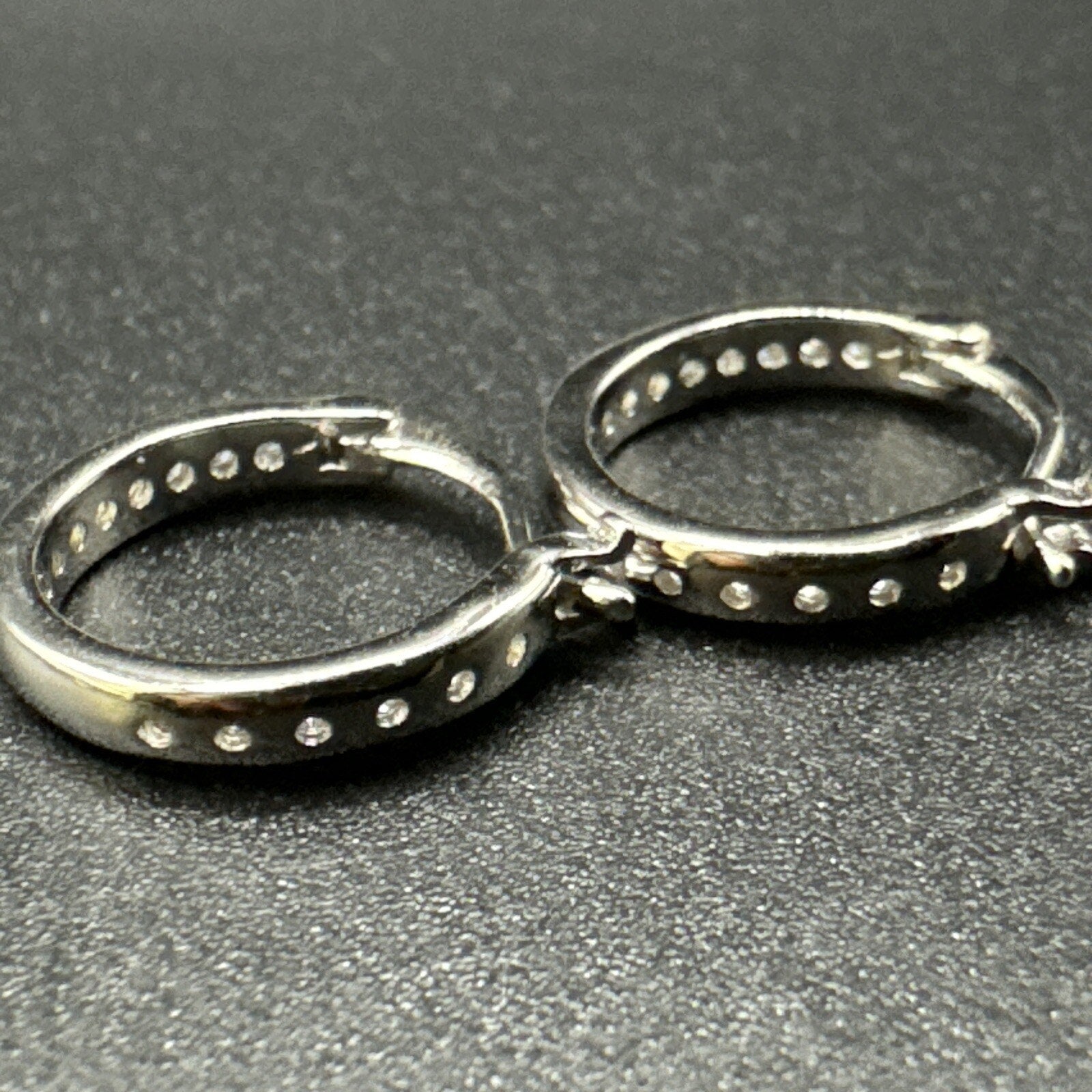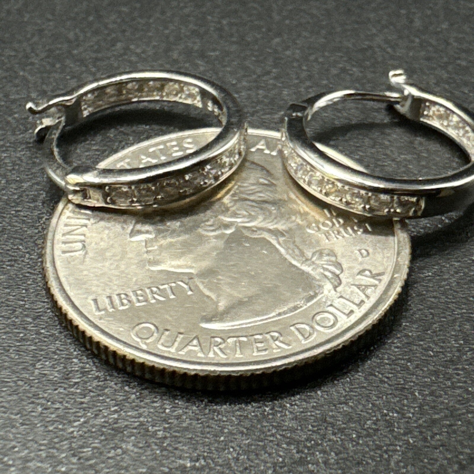 New Condition Sterling Silver CZ Huggie Hoops 16mm 925