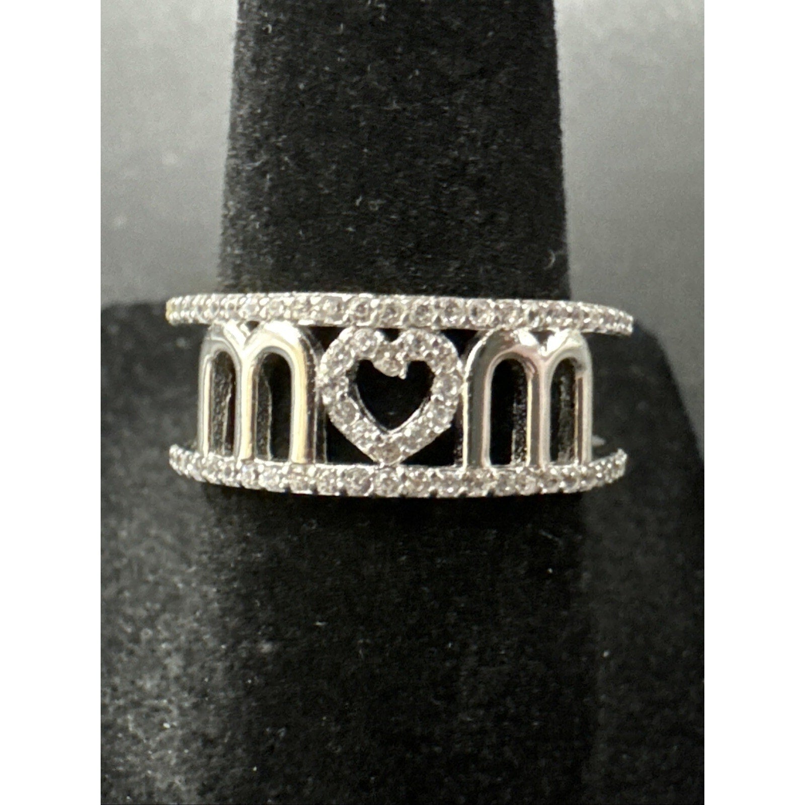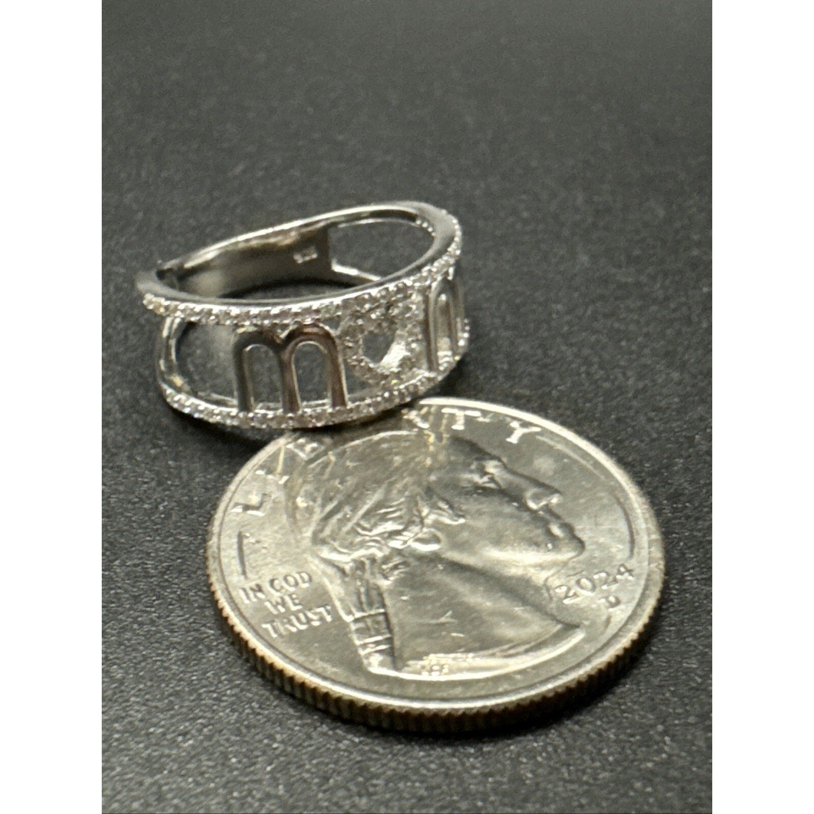 New Condition Sterling Silver CZ MOM Ring 925 Size 7