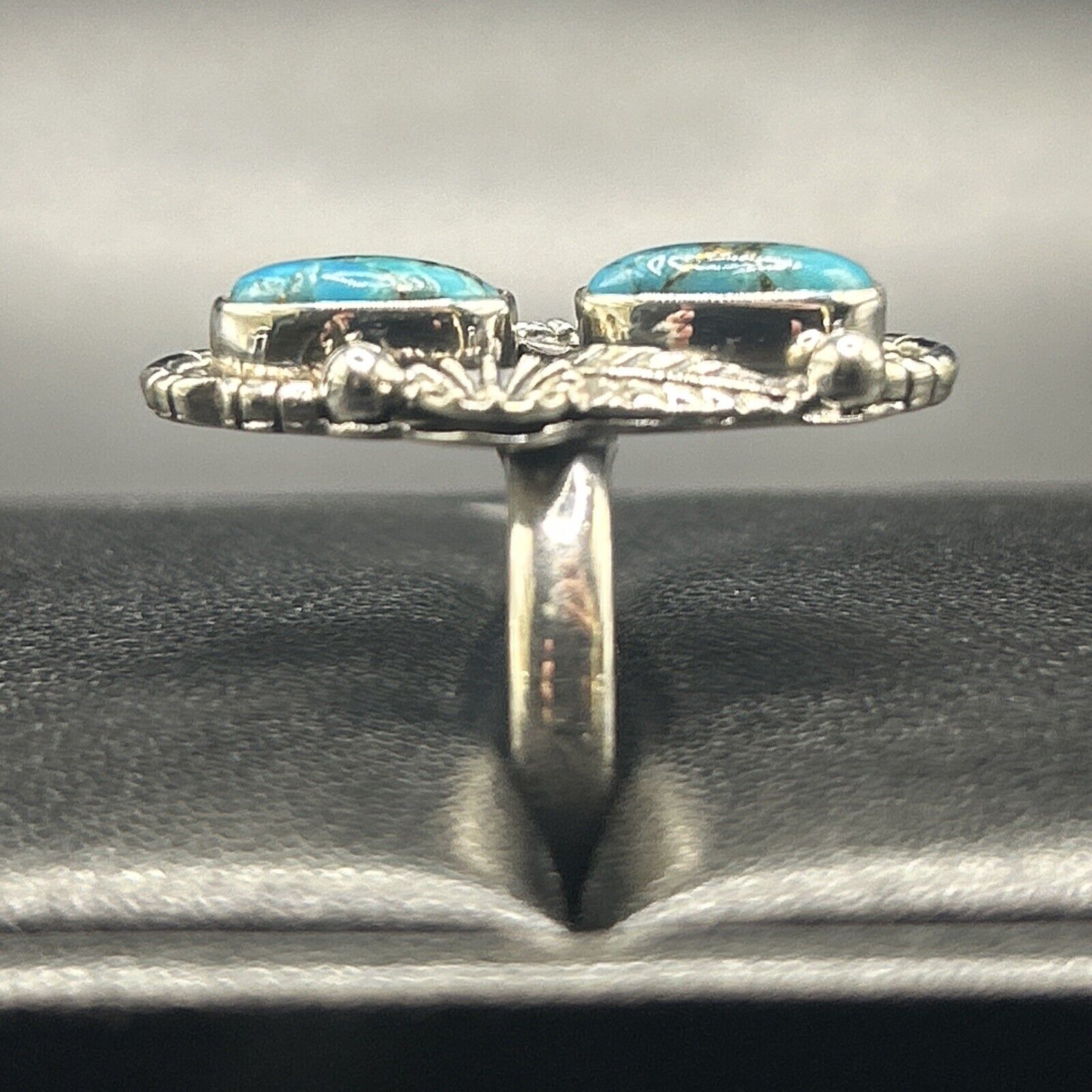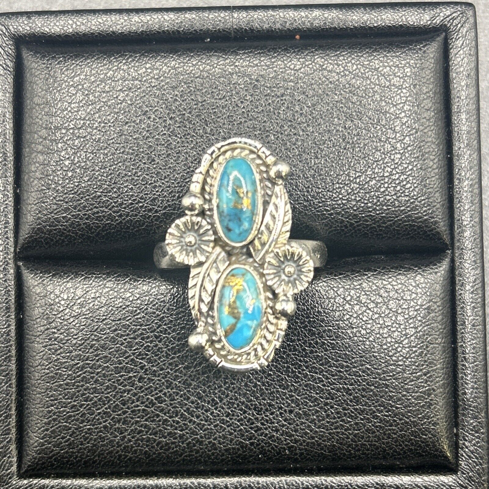 New Condition Sterling Silver Double Copper Turquoise Ring Size 10.00