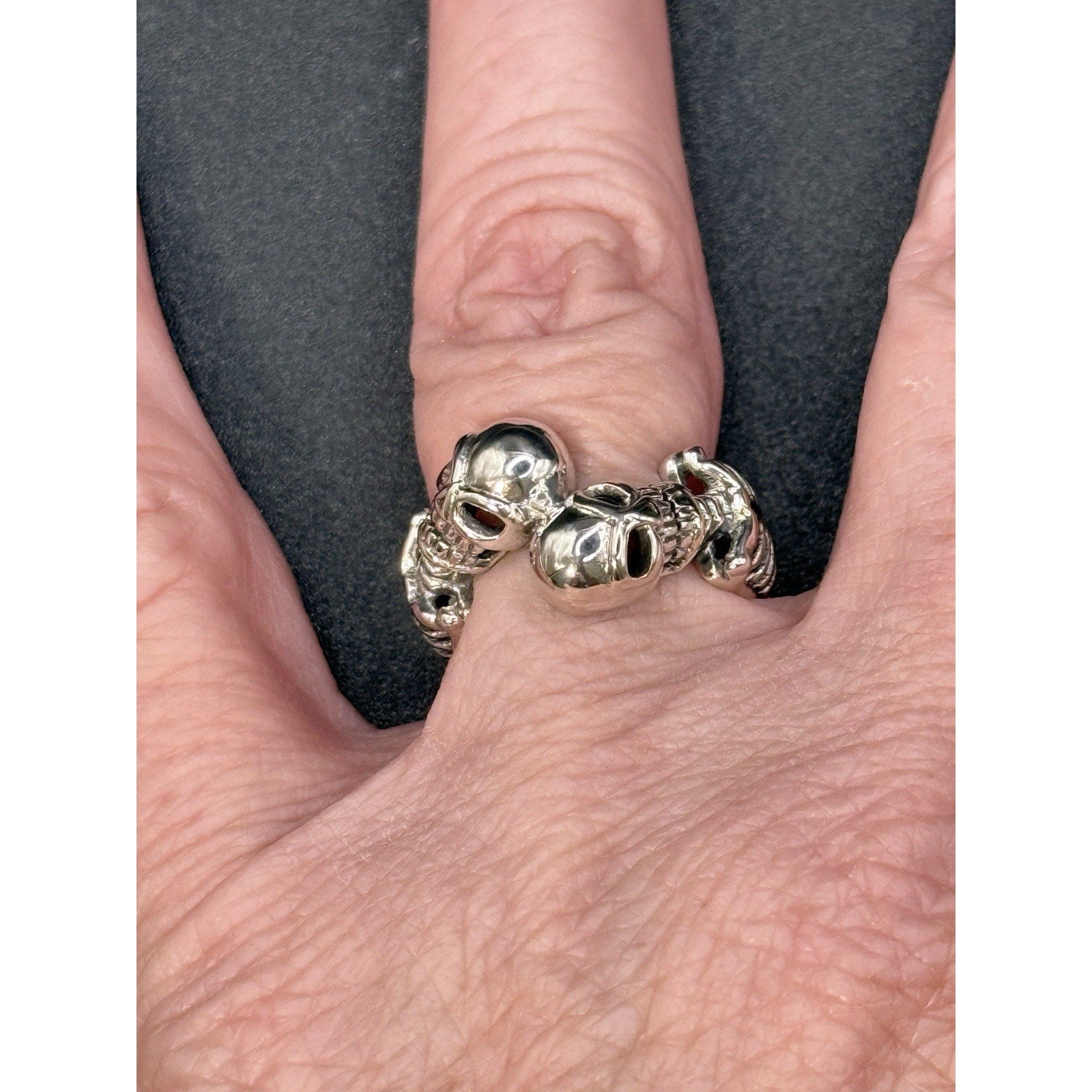 New Condition Sterling Silver Double Skeleton Ring Size 6.00