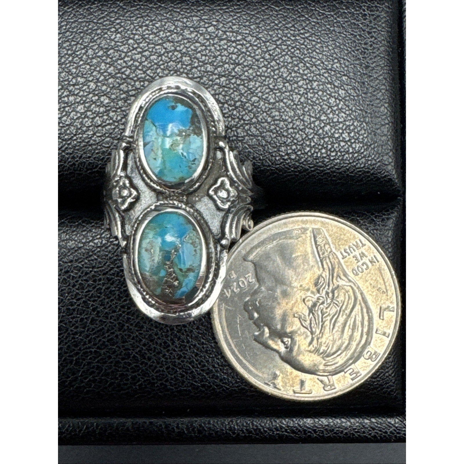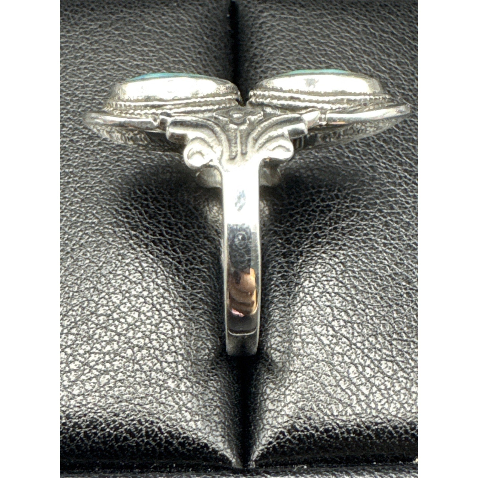 New Condition Sterling Silver Double Turquoise Long Ring Size 10