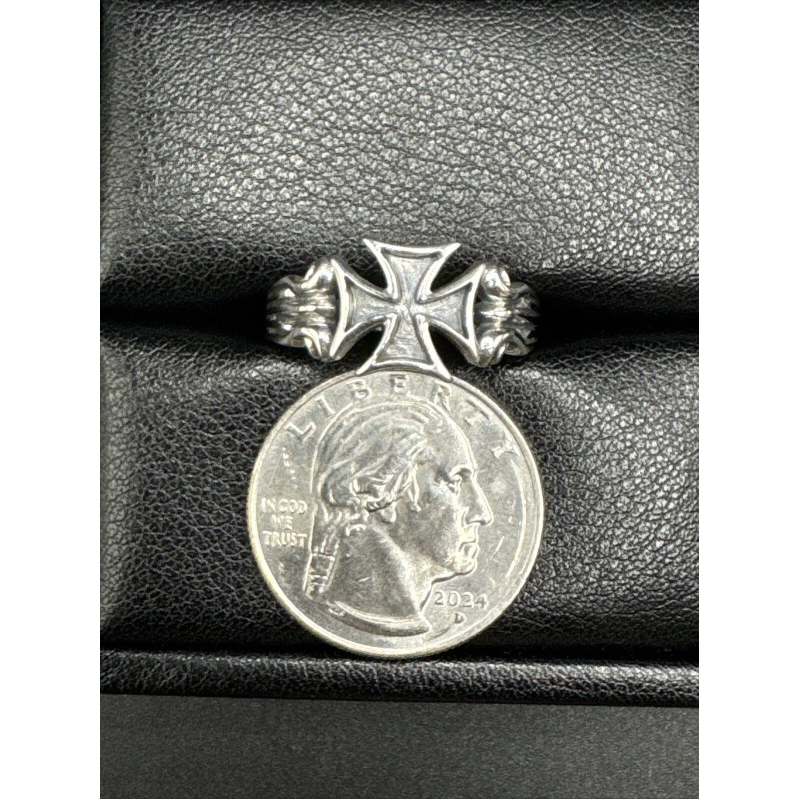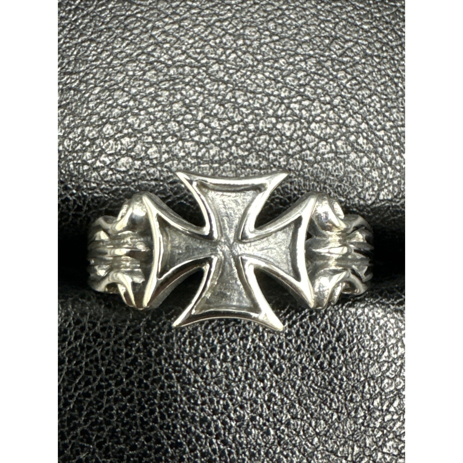 New Condition Sterling Silver Gents Iron Cross Ring 925 Size 10