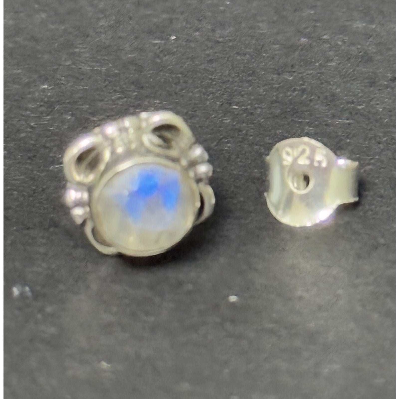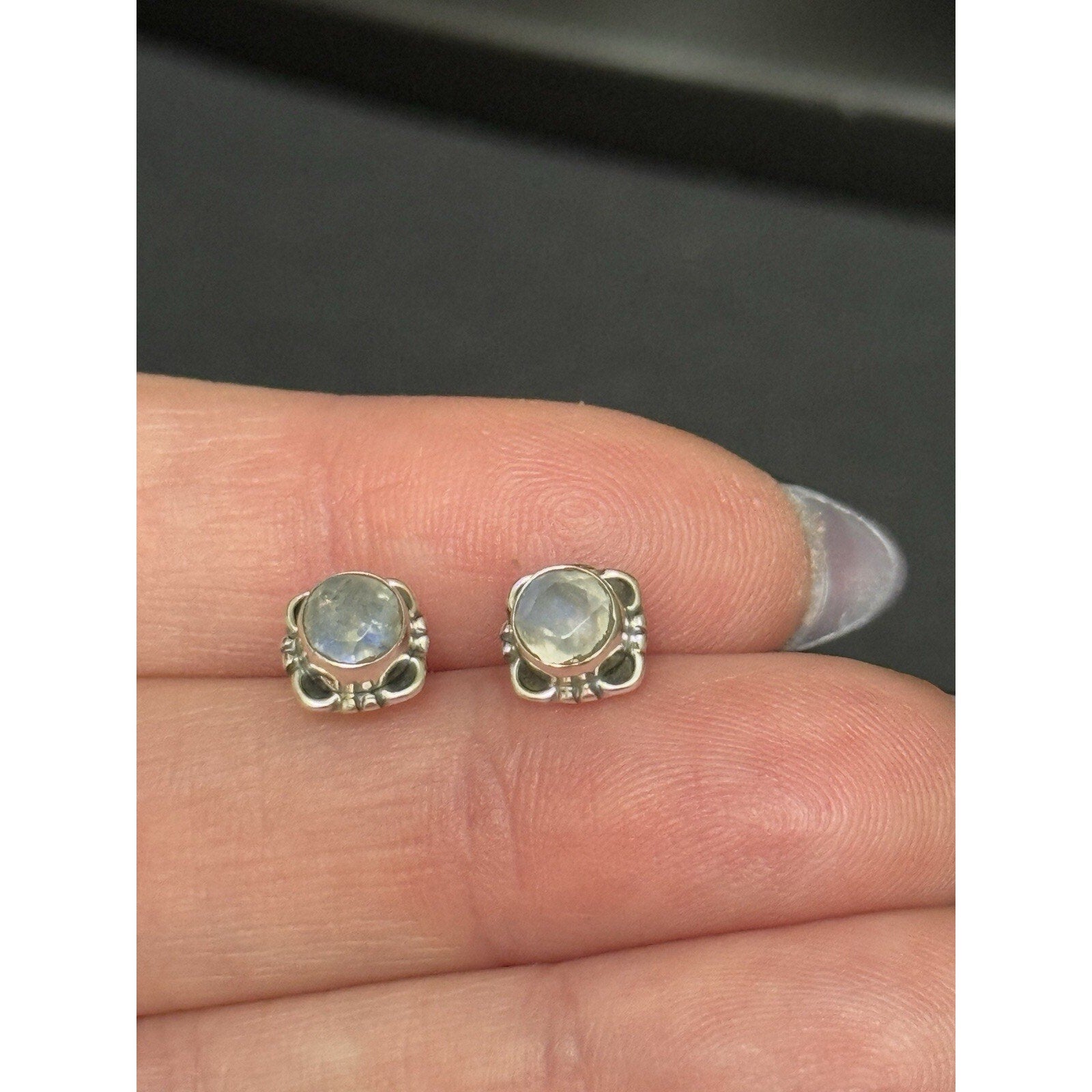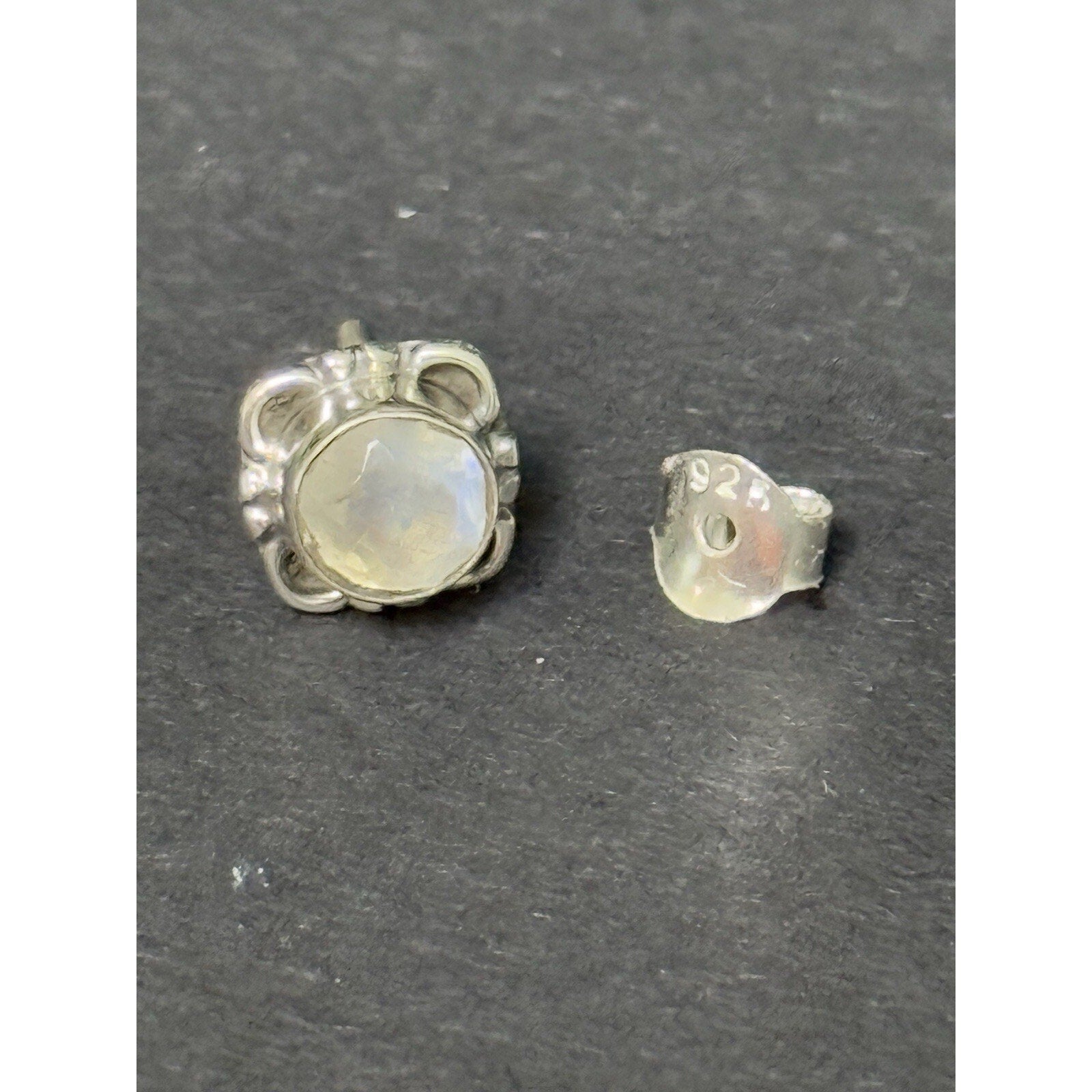 New Condition Sterling Silver Genuine Moonstone Stud Earrings 925 5MM