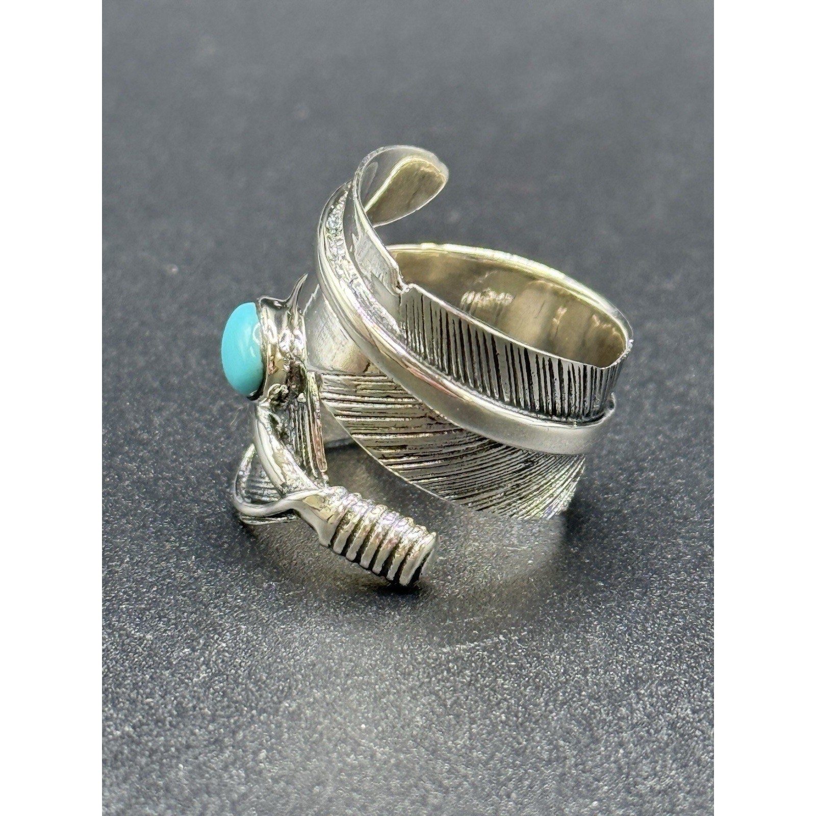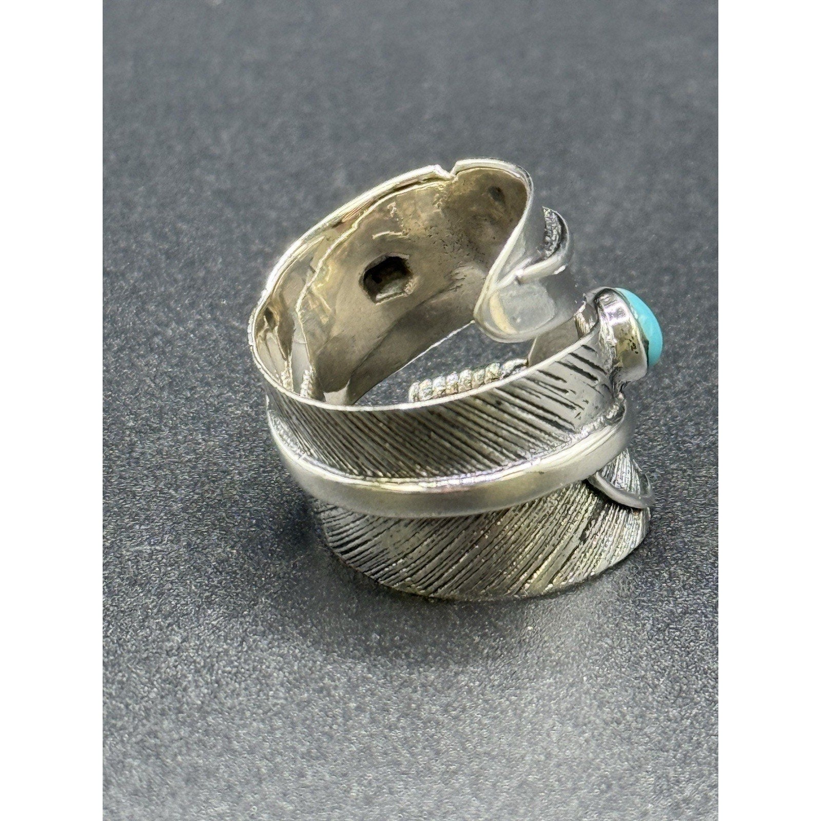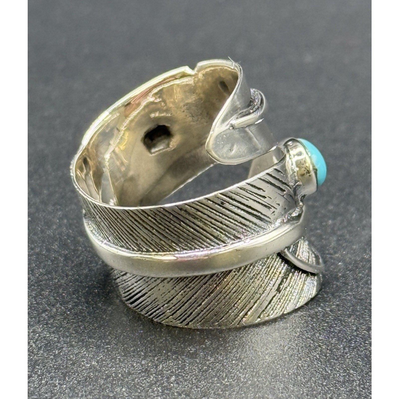 New Condition Sterling Silver Genuine Turquoise Ring Size 7.00 Feather Bypass