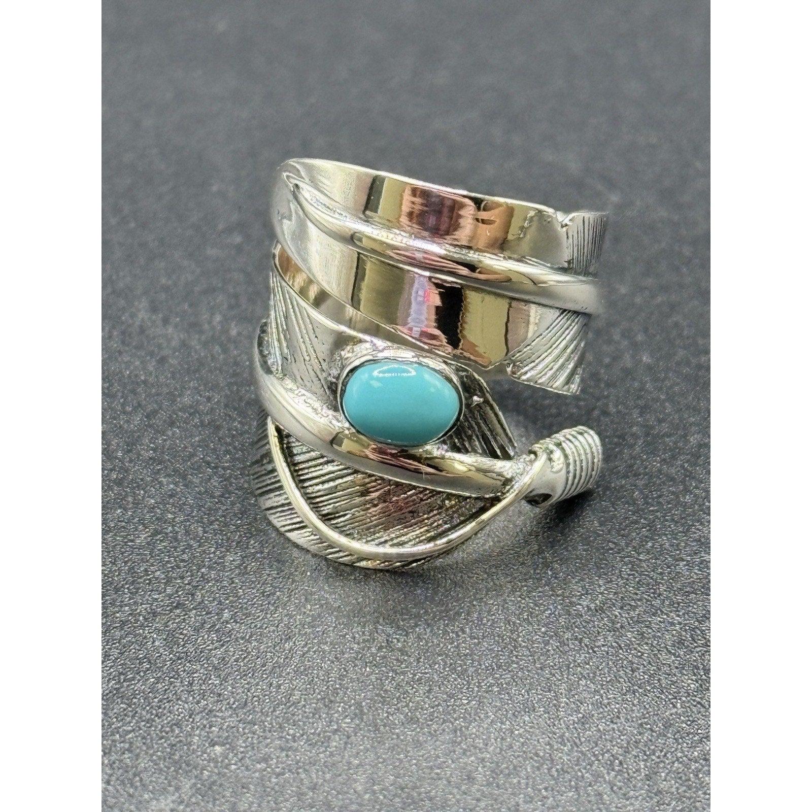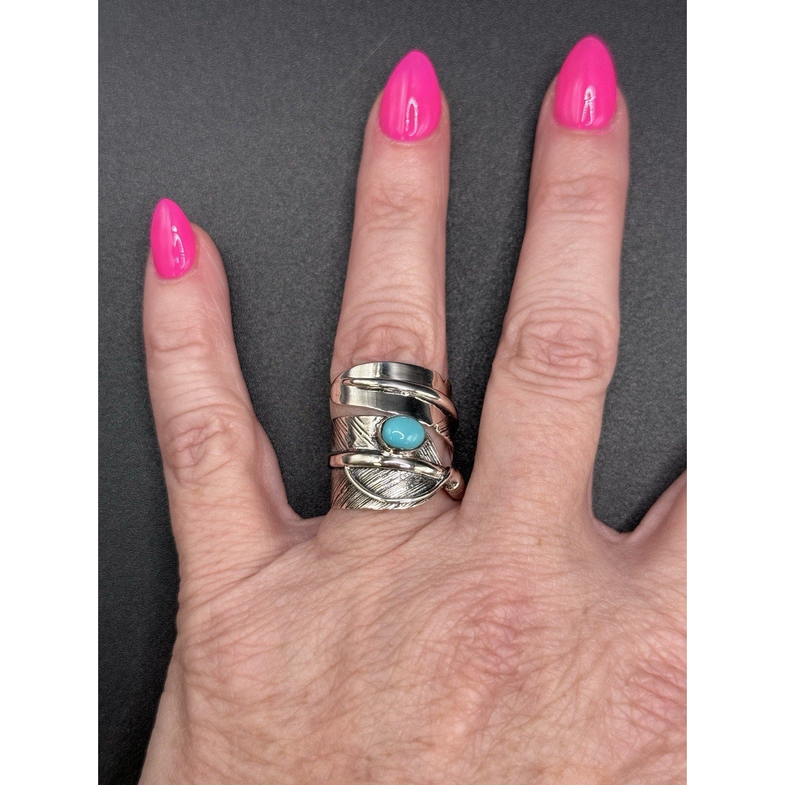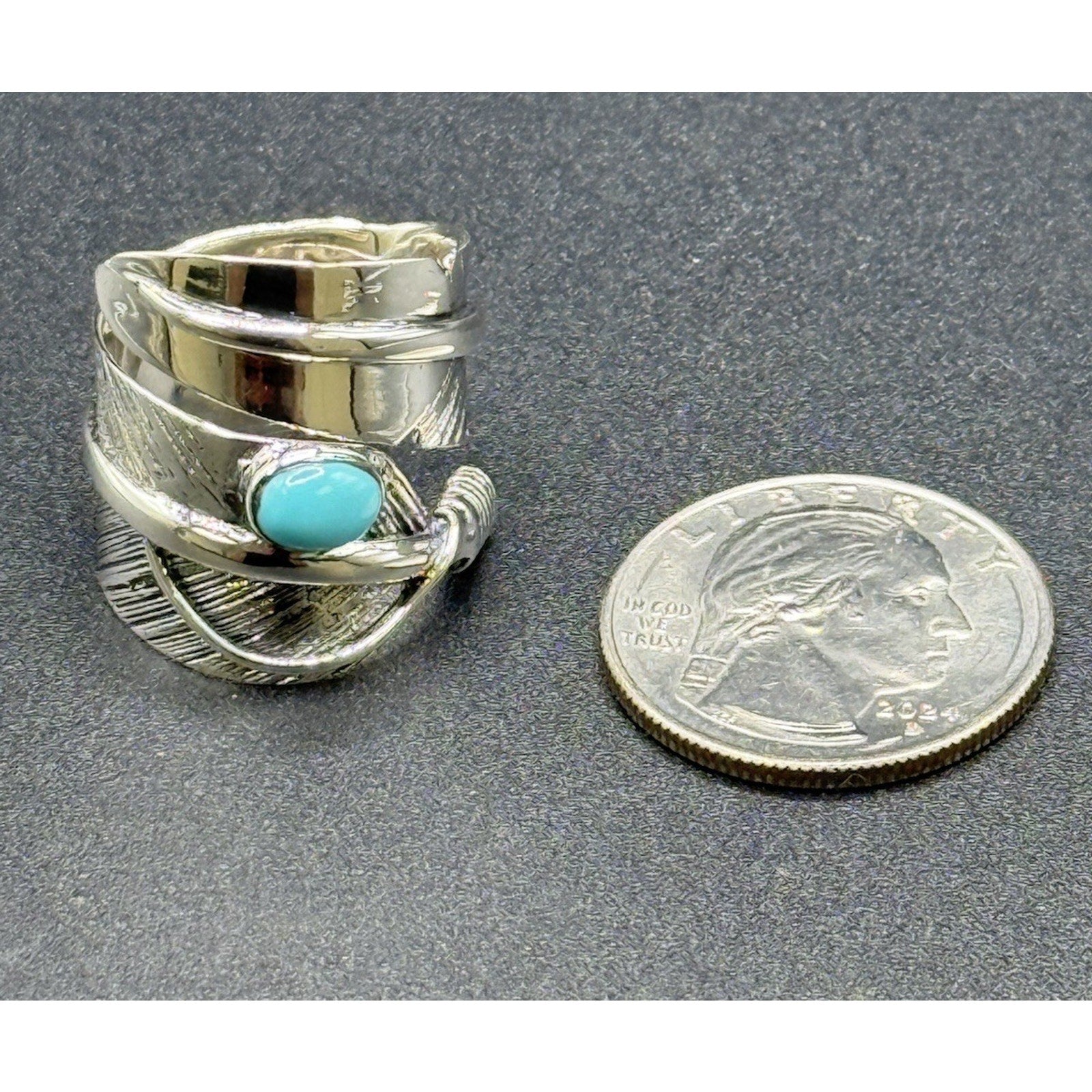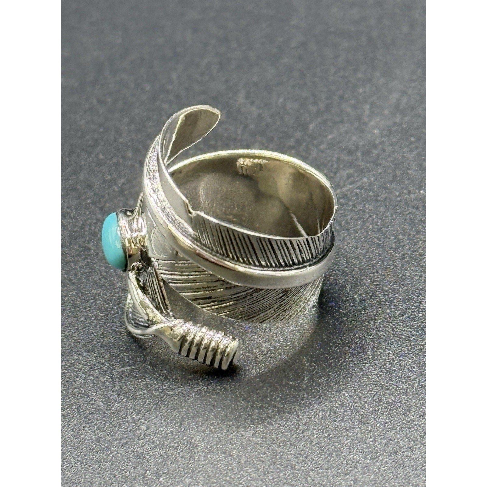 New Condition Sterling Silver Genuine Turquoise Ring Size 7.00 Feather Bypass