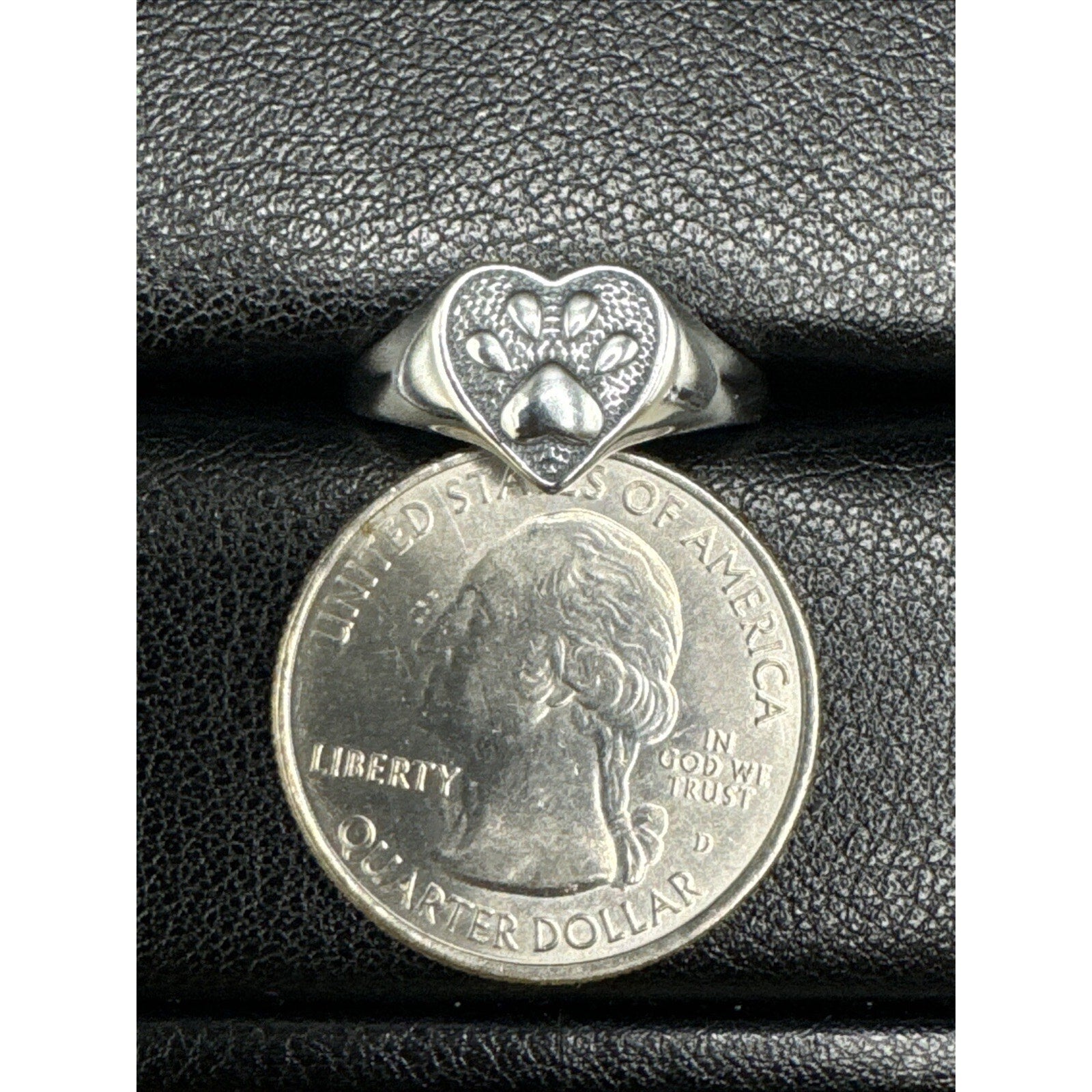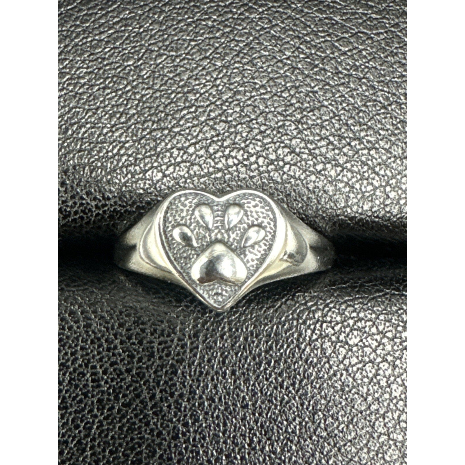 New Condition Sterling Silver Heart Paw Pet Print Ring 925 Size 7