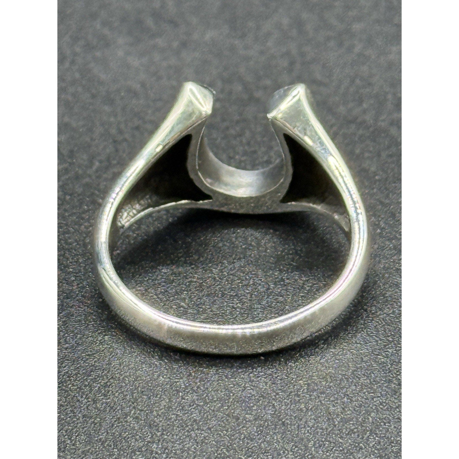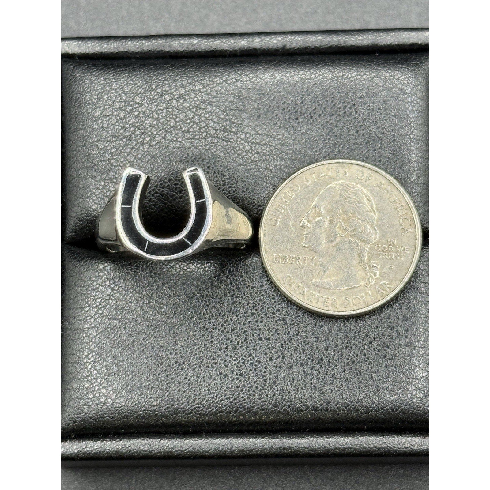 New Condition Sterling Silver Horseshoe Onyx Ring Size 12.00