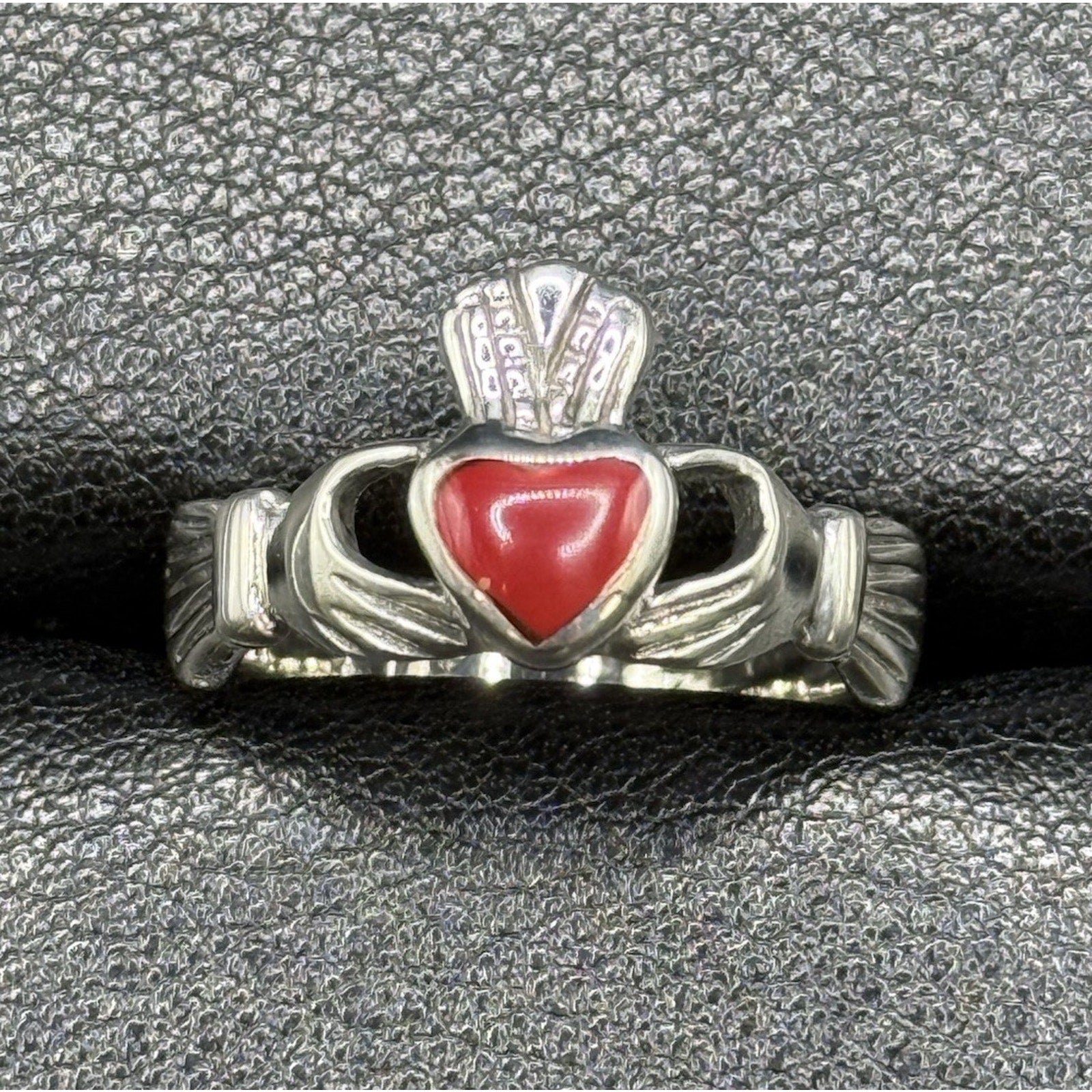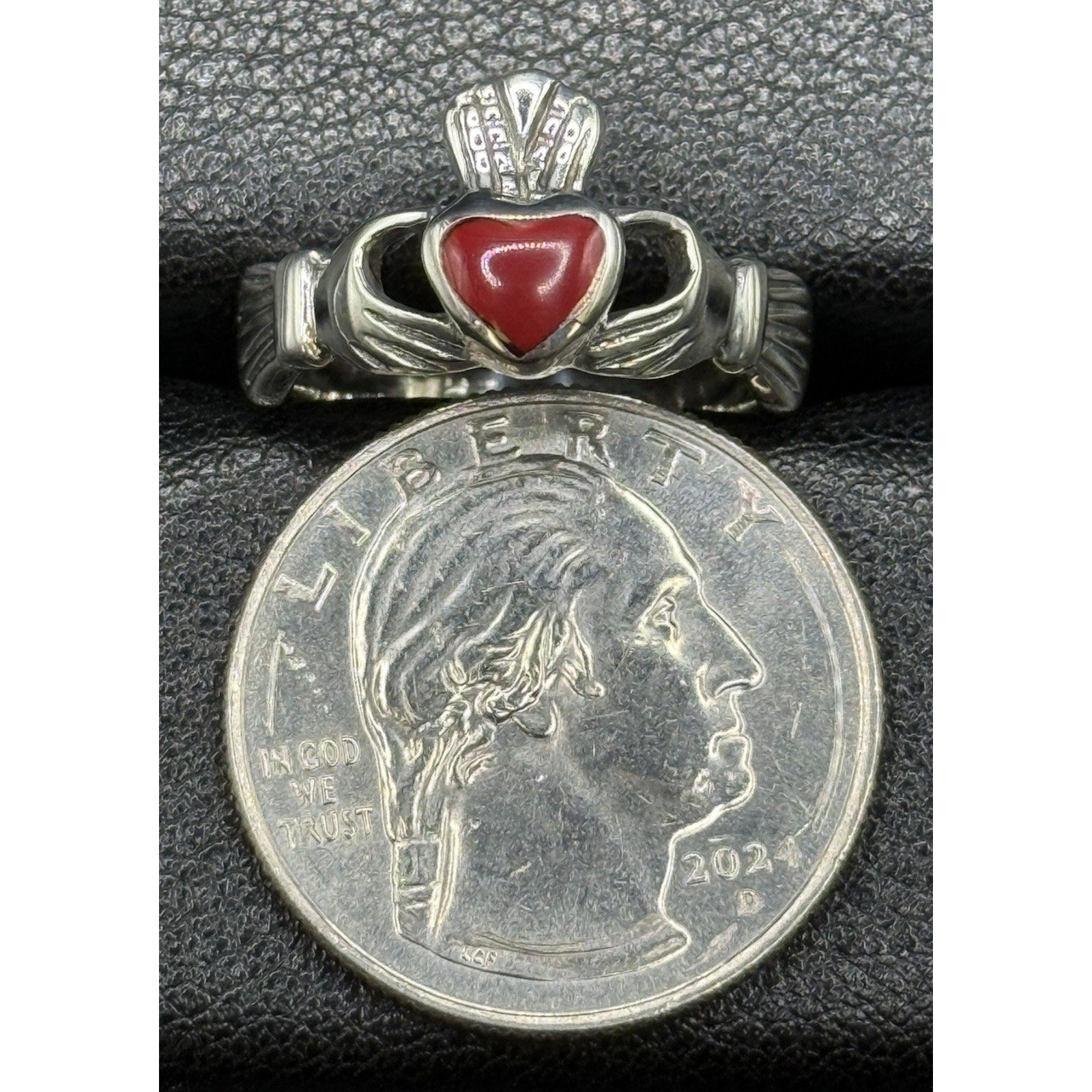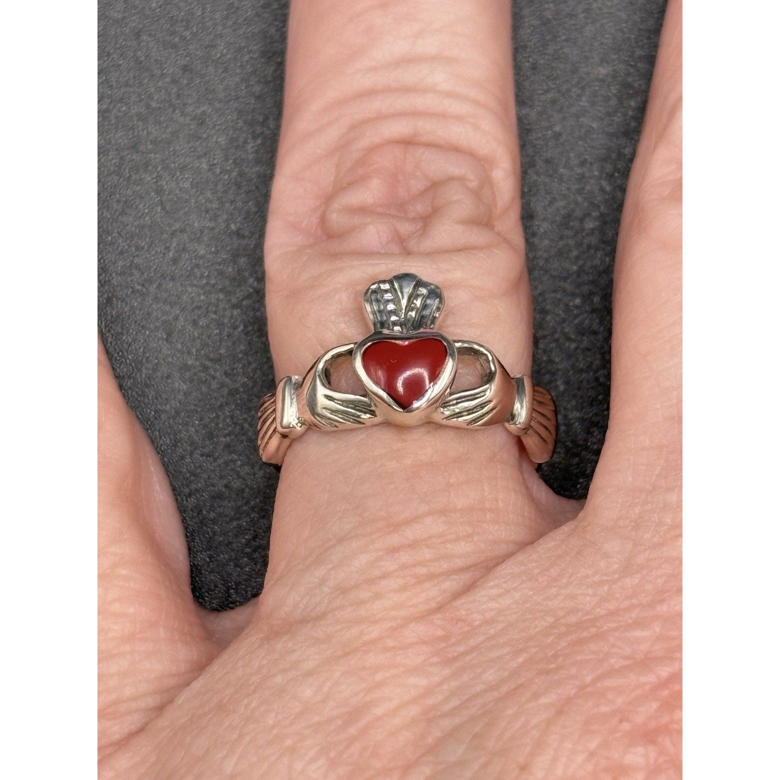 New Condition Sterling Silver Jasper Claddagh Ring Size 7.00