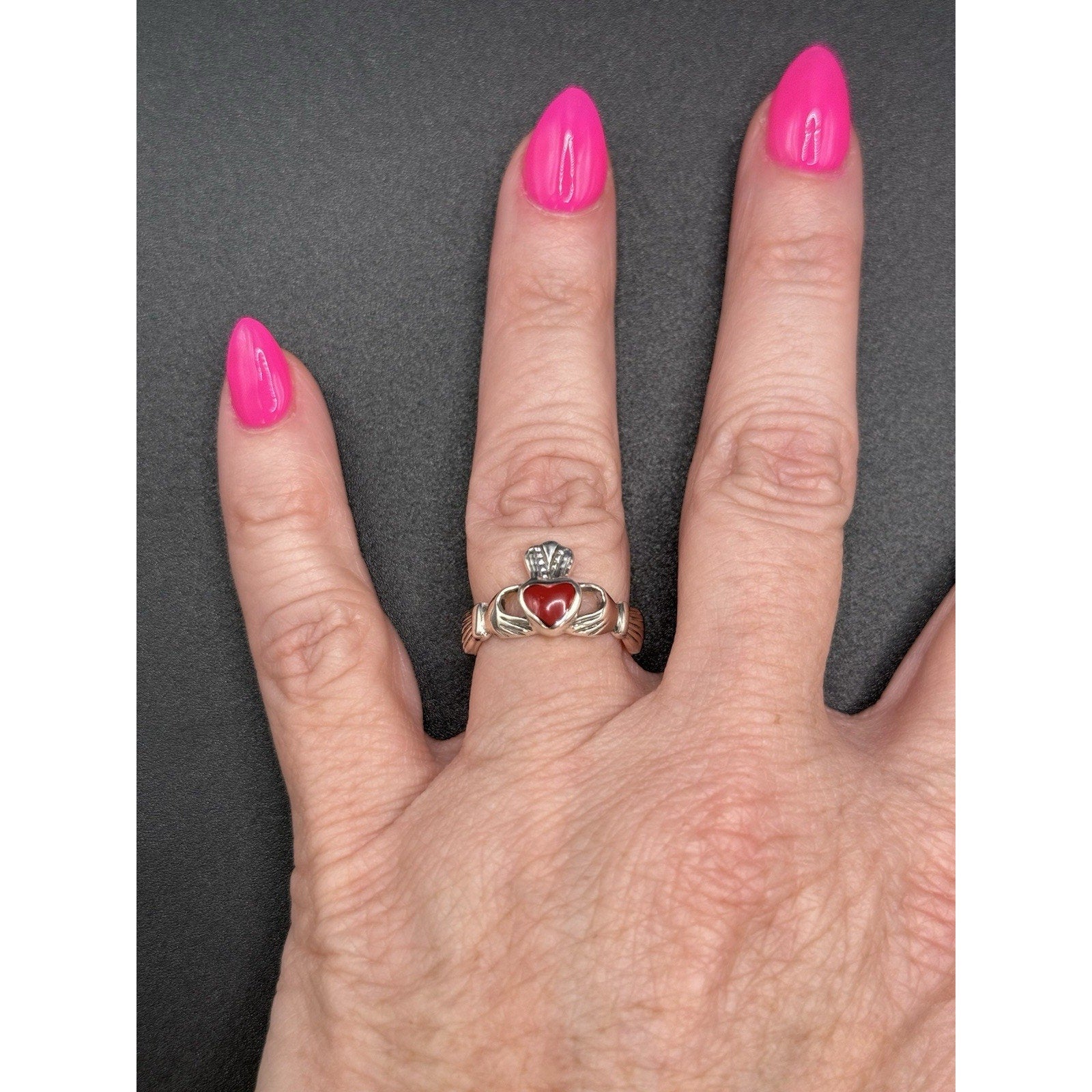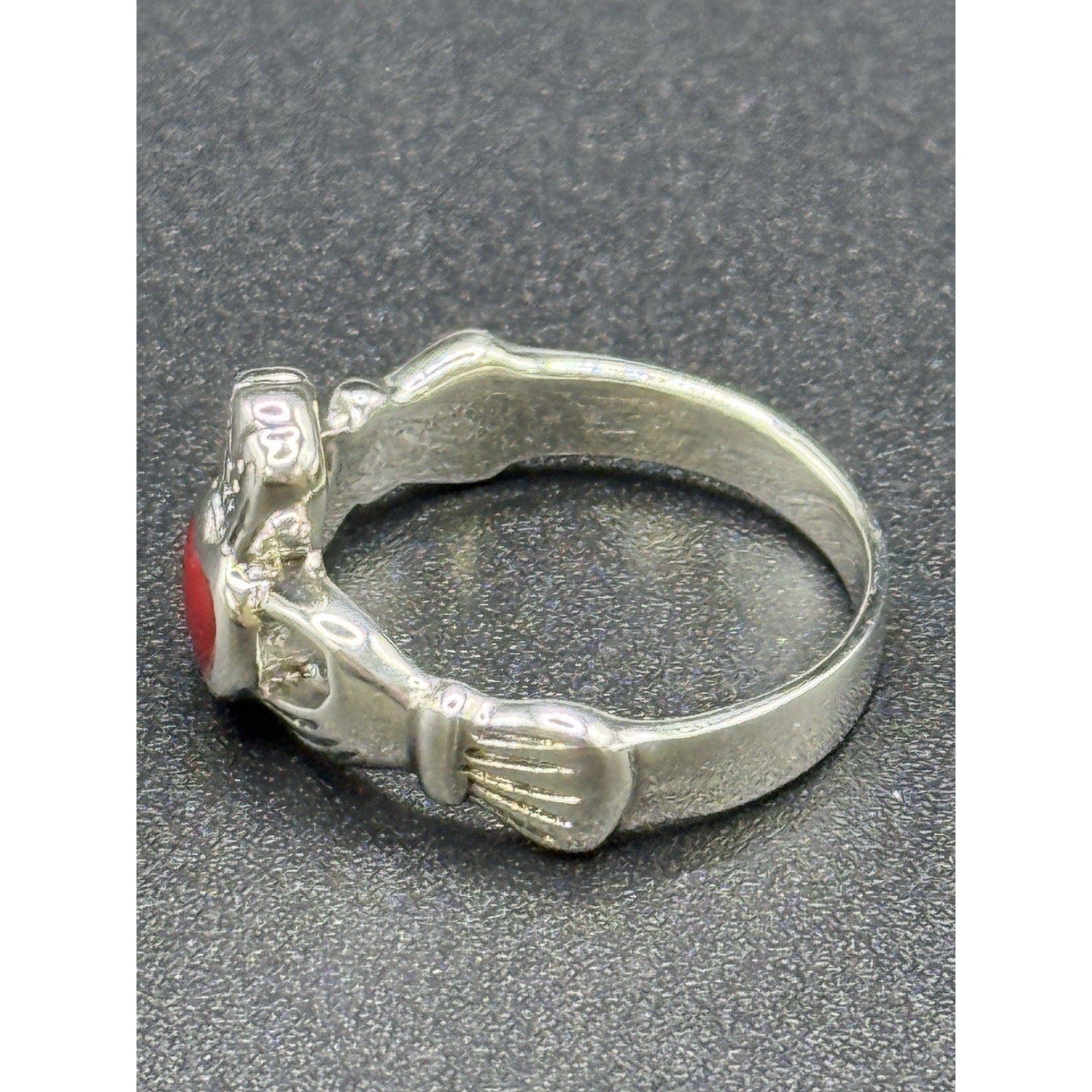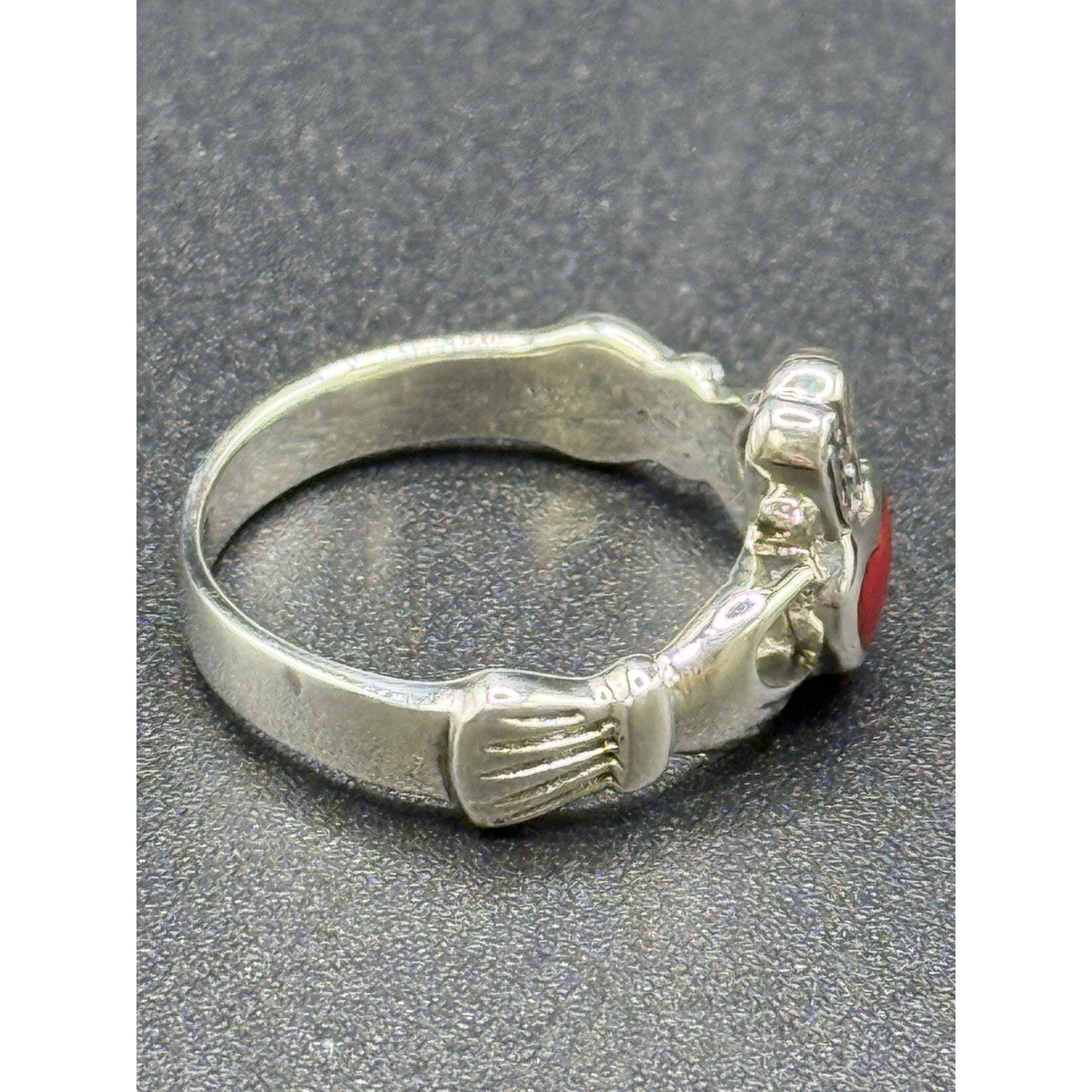 New Condition Sterling Silver Jasper Claddagh Ring Size 7.00