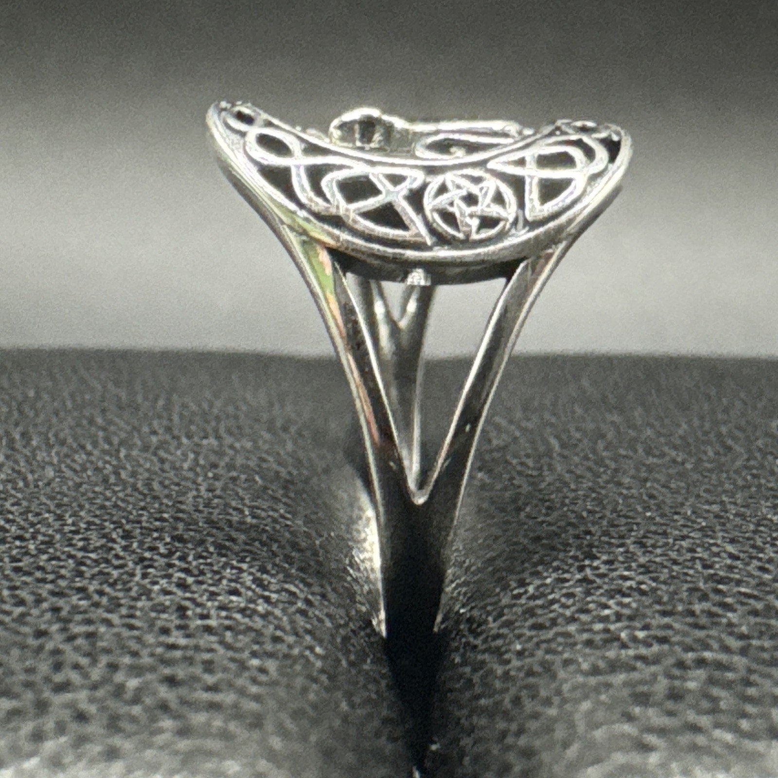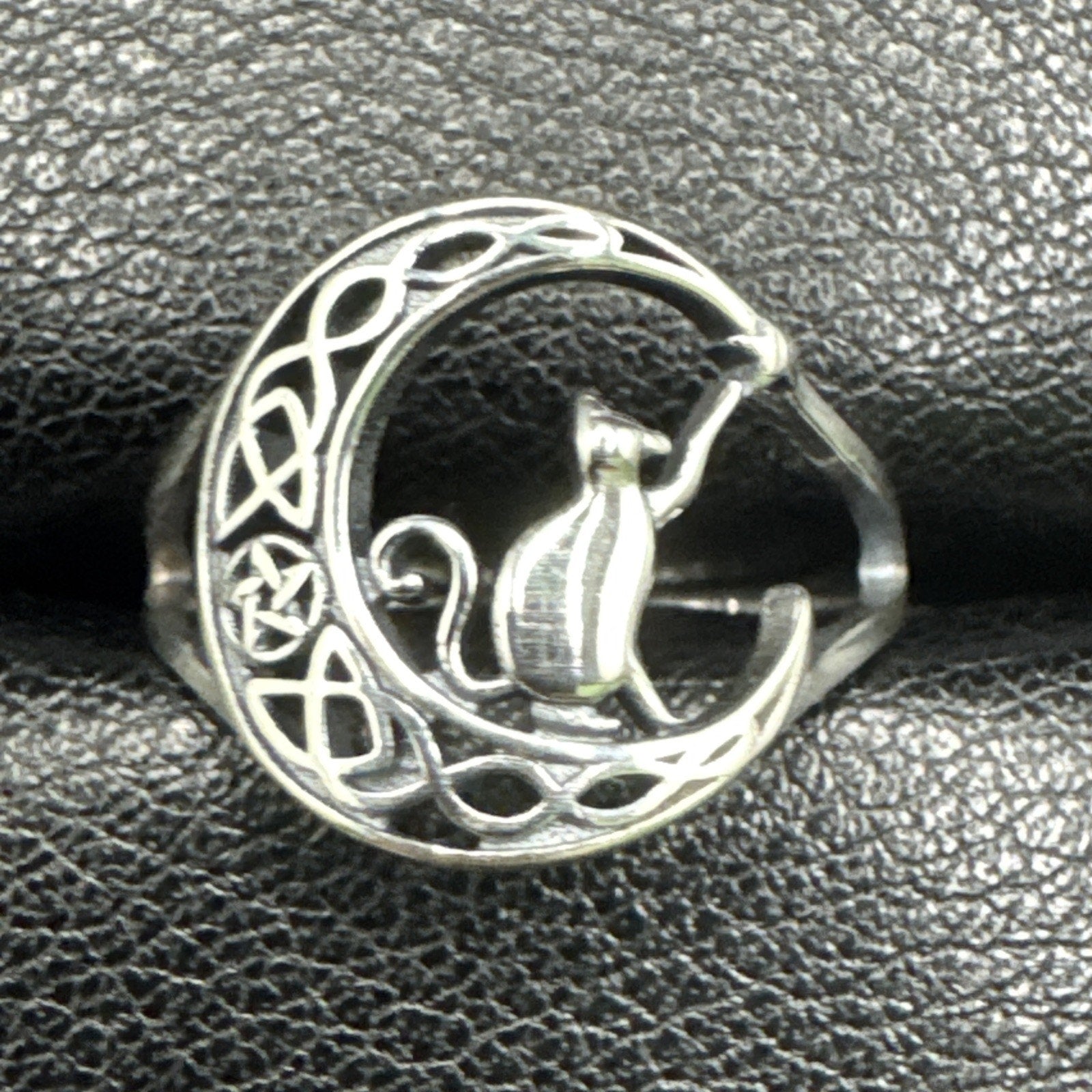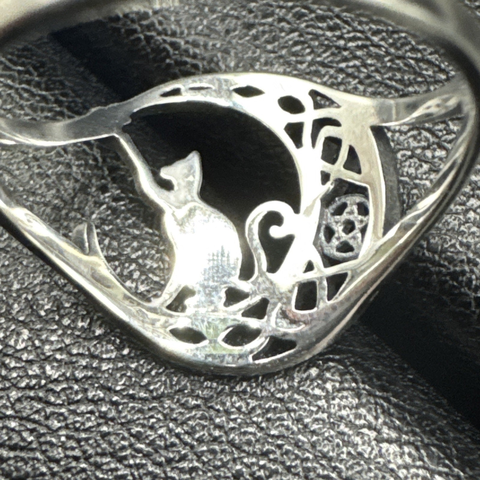 New Condition Sterling Silver Kitty Cat Crescent Moon Ring 925 Size 7 R01