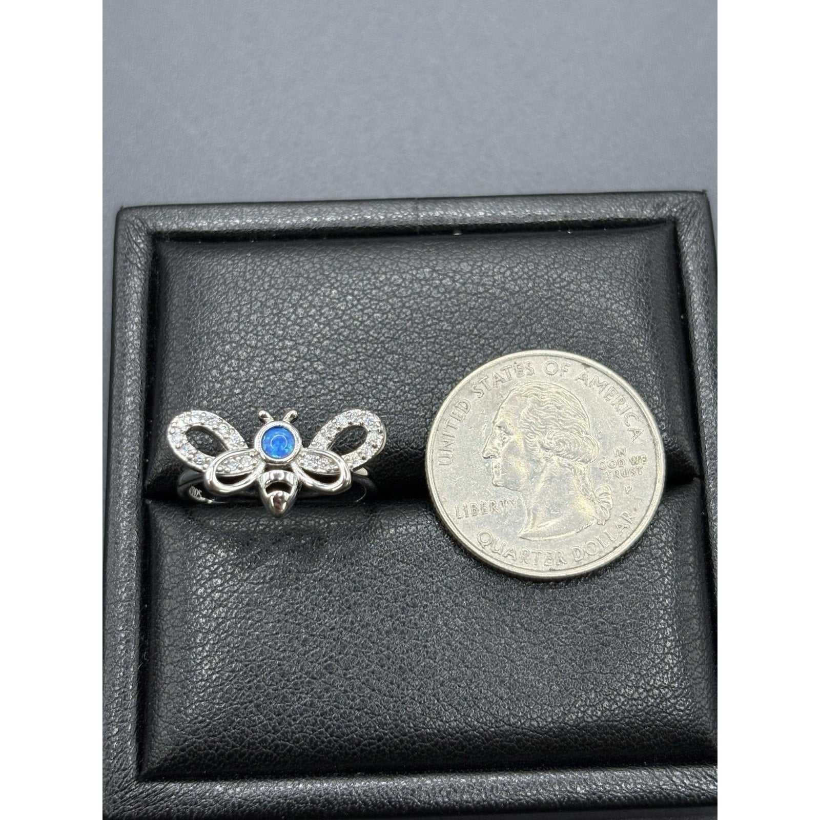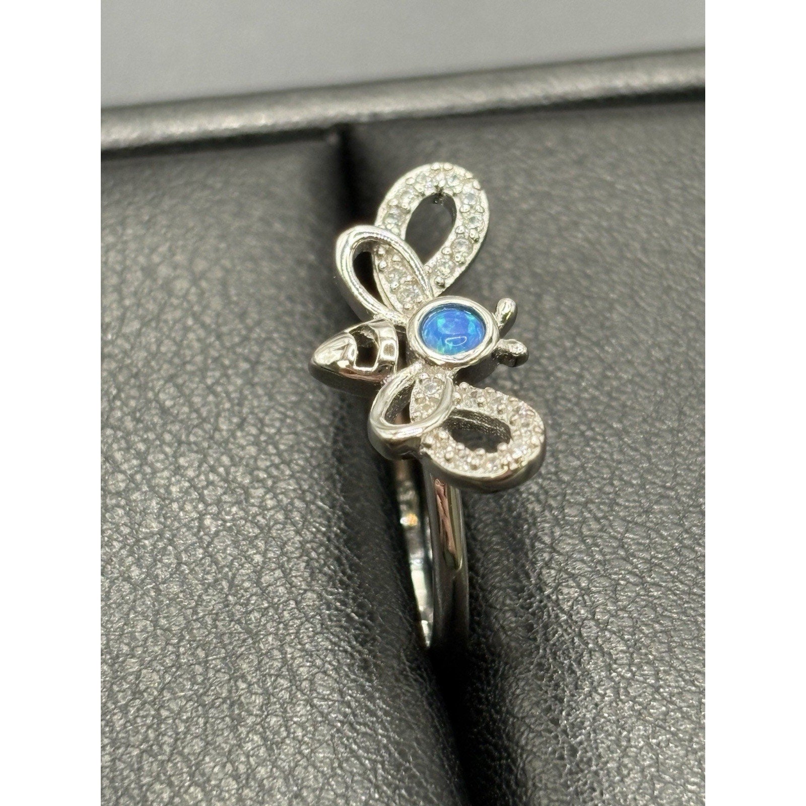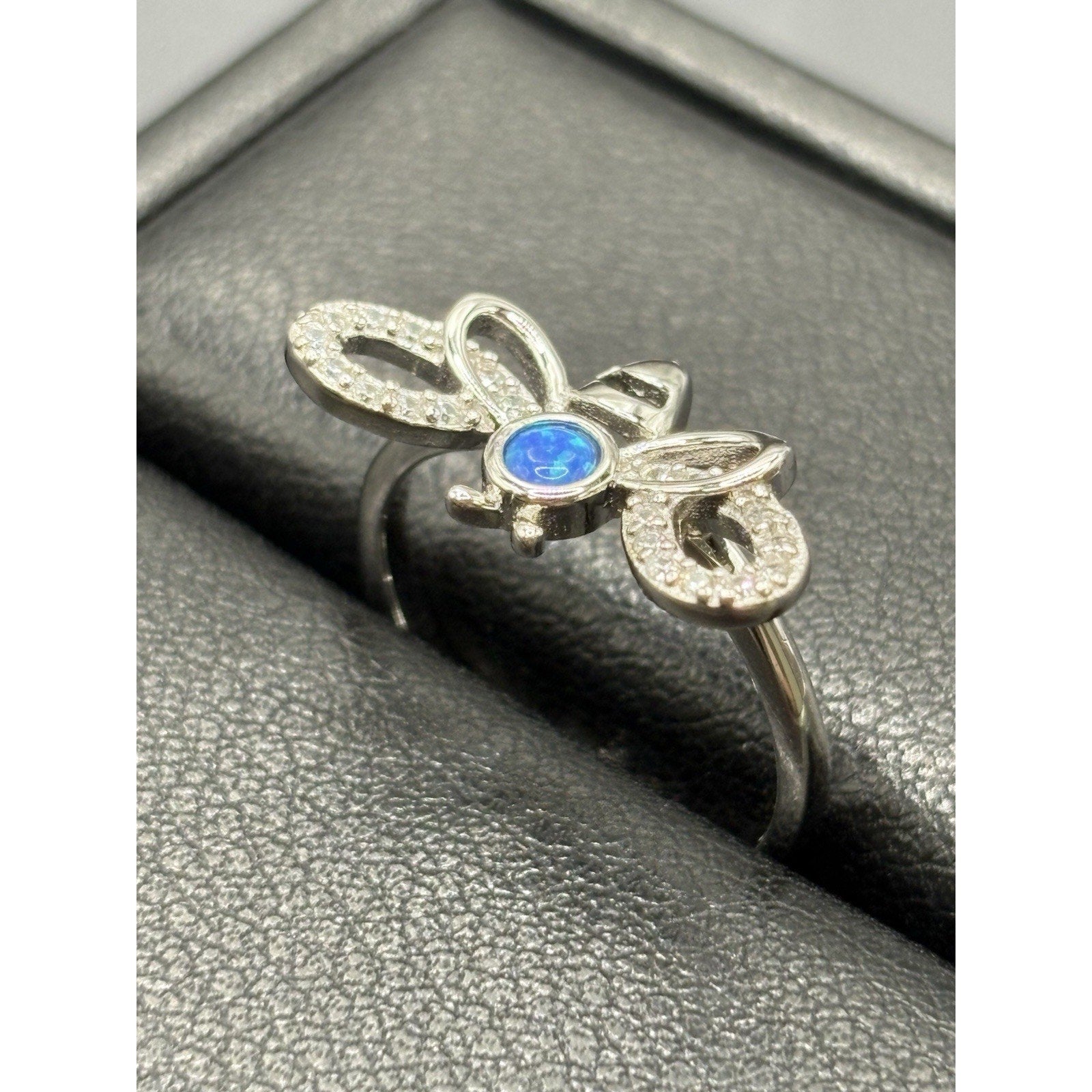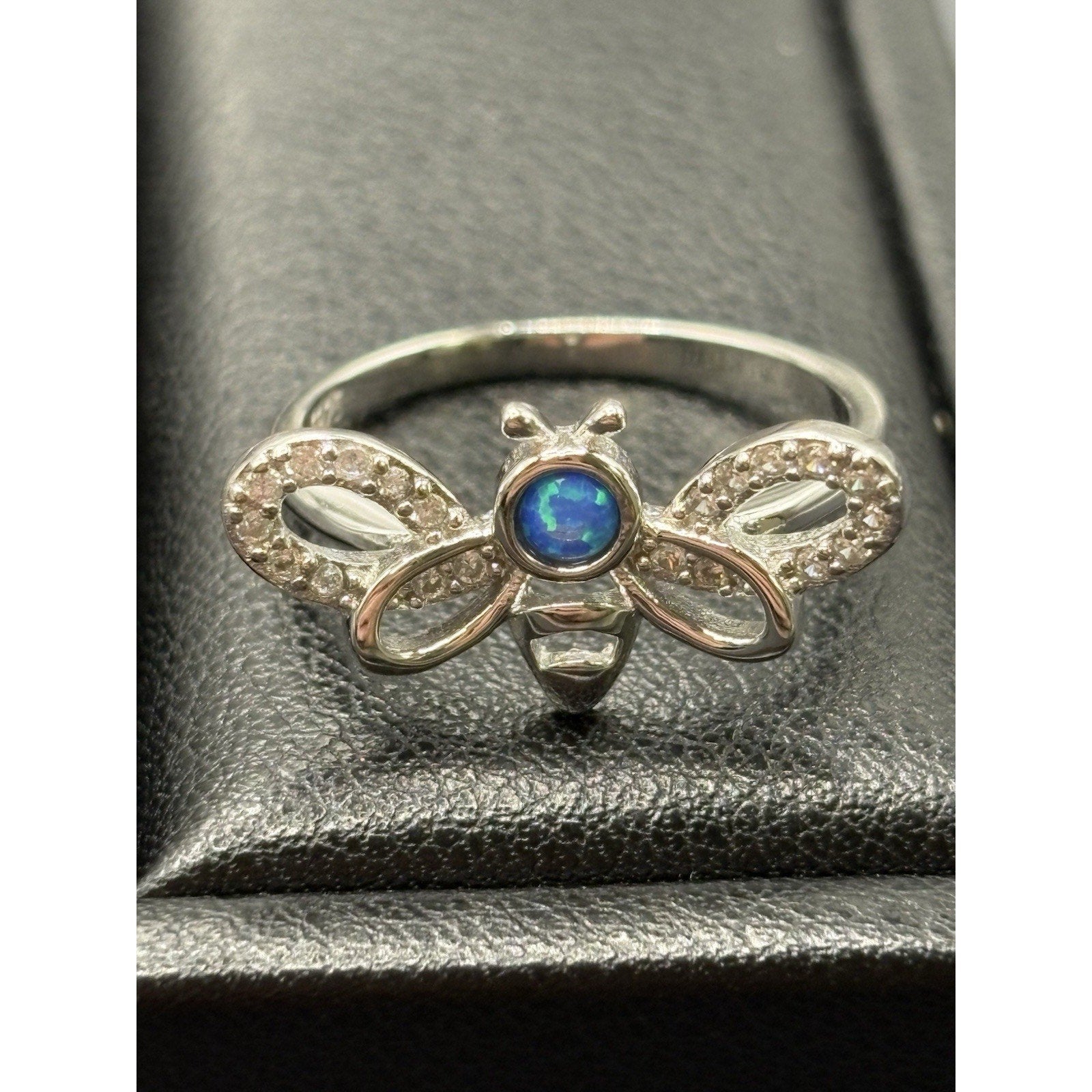 New Condition Sterling Silver Lab Blue Opal Cubic Zirconia Bee Ring Size 7