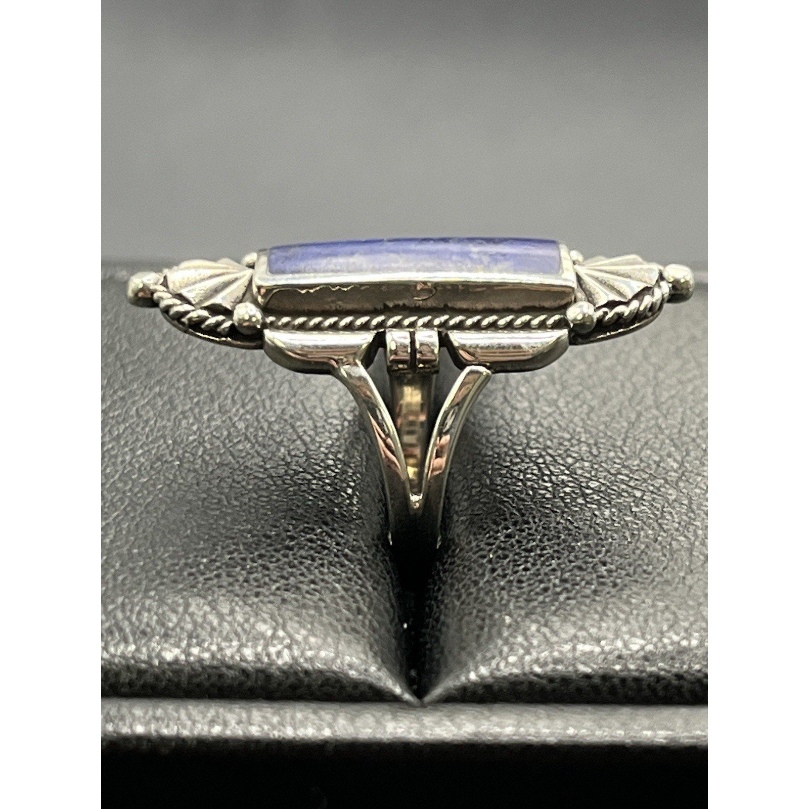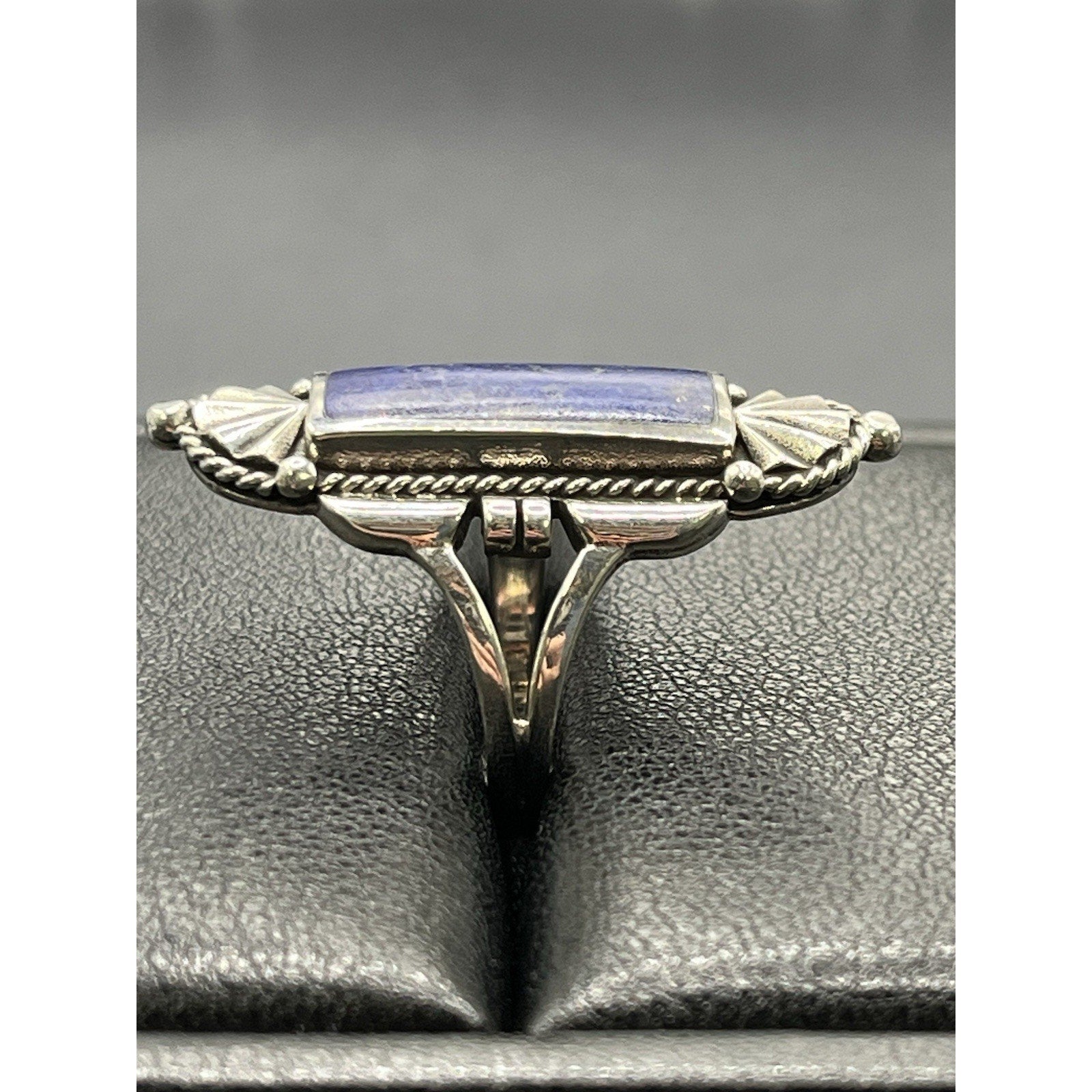 New Condition Sterling Silver Lapis Art Deco Ring Size 7