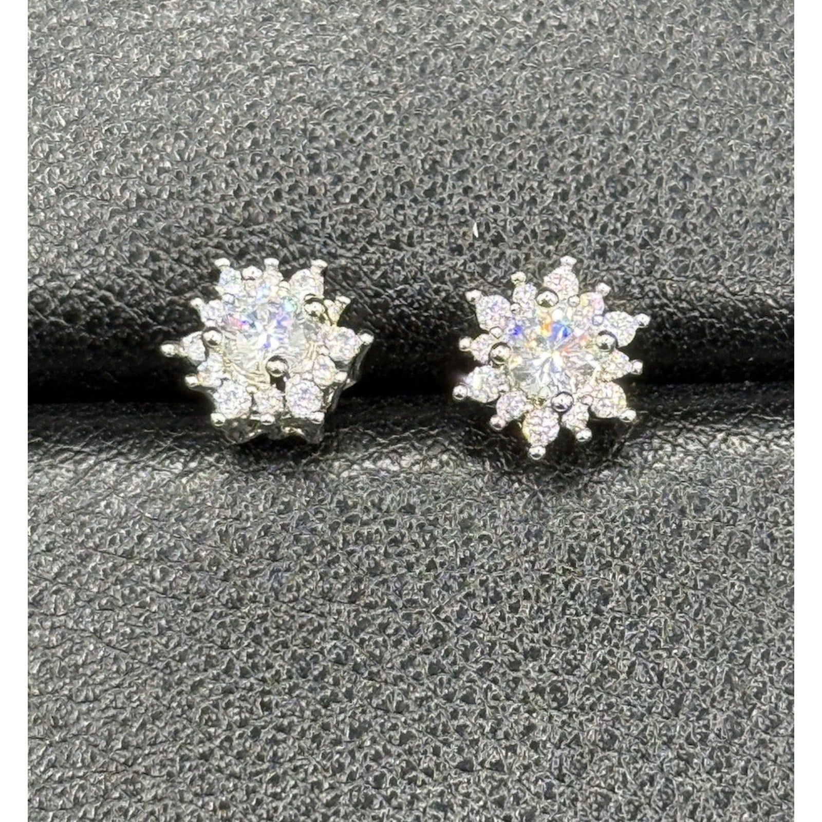 New Condition Sterling Silver Moissanite Starburst Stud Earrings 925