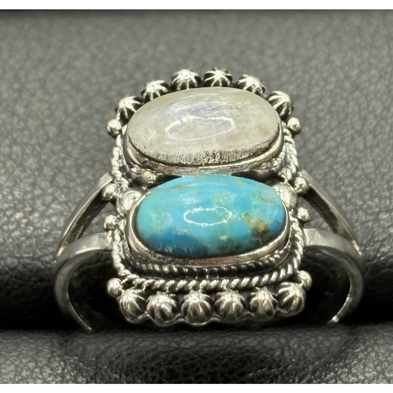 New Condition Sterling Silver Moonstone Turquoise Ring Size 10 925
