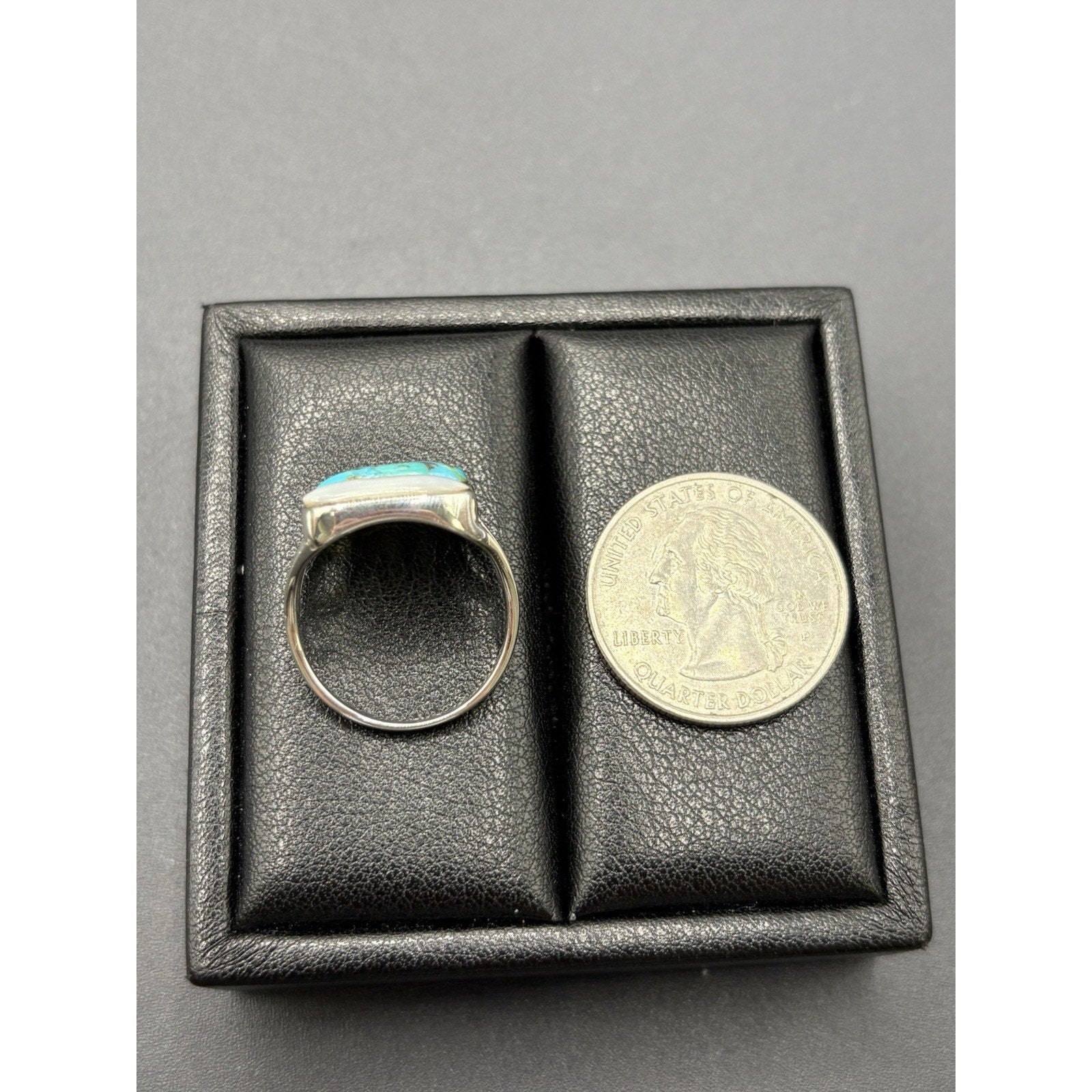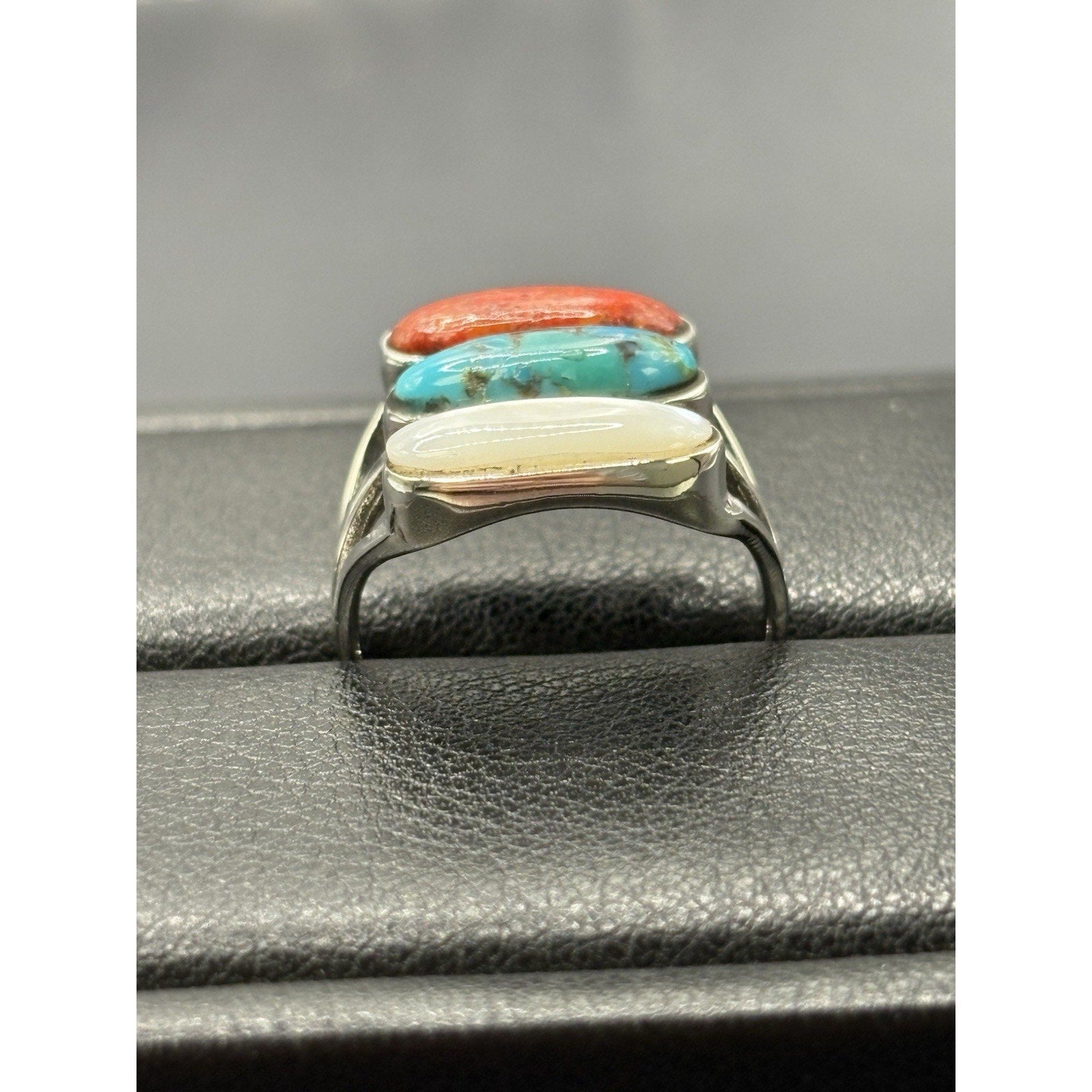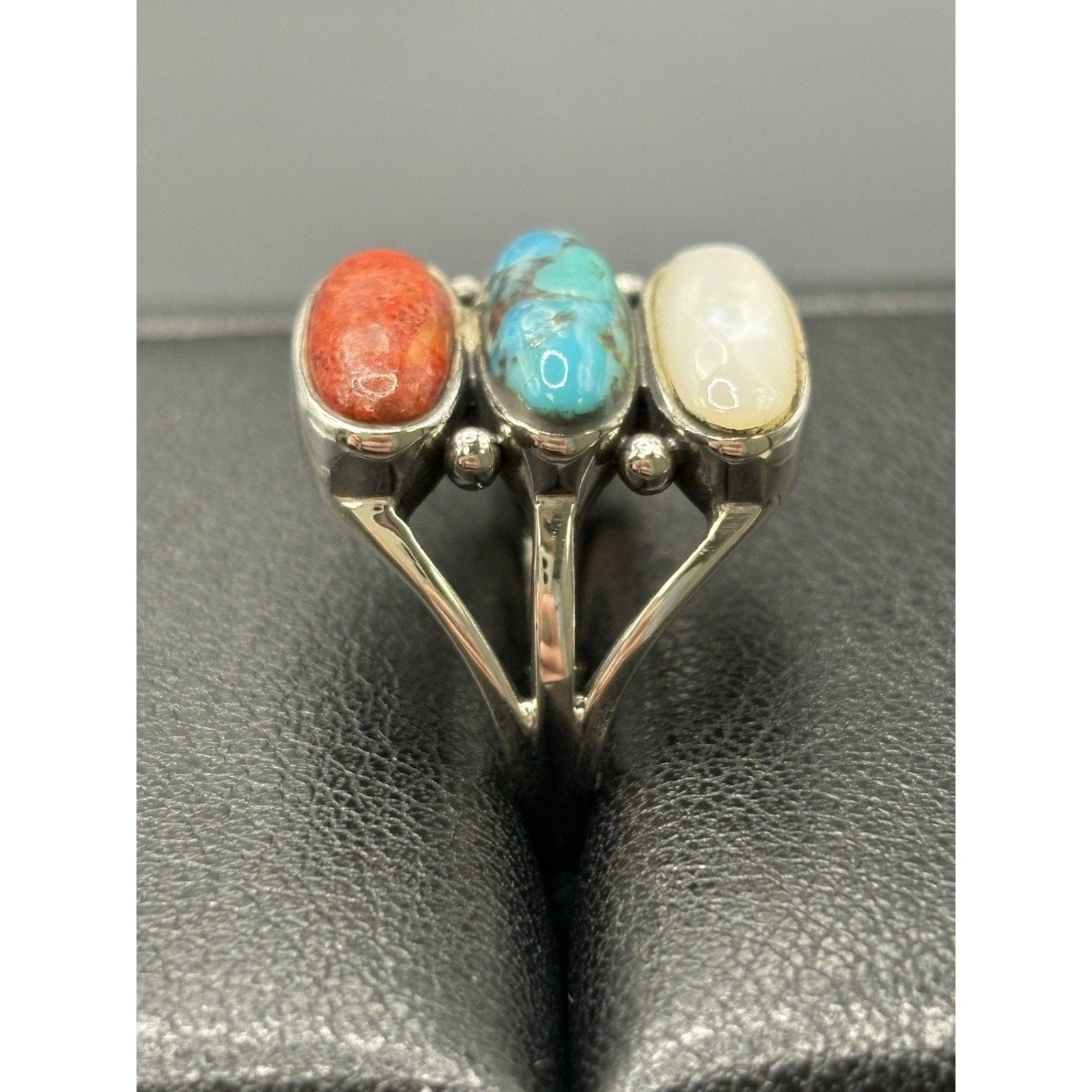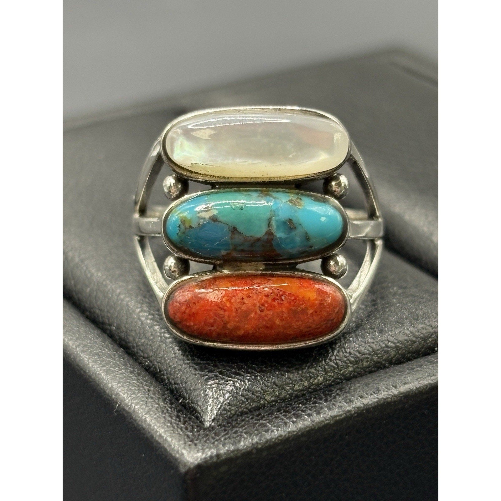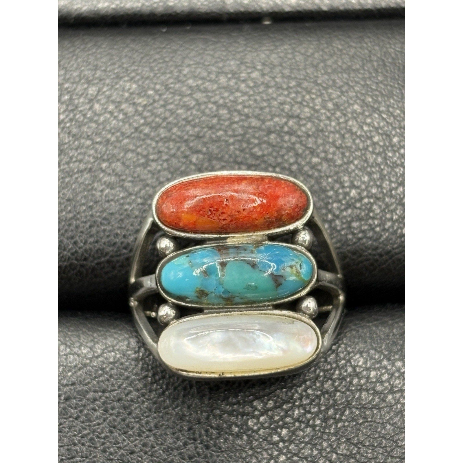 New Condition Sterling Silver Mother Pearl Turquoise Coral Ring Size 8 Y02