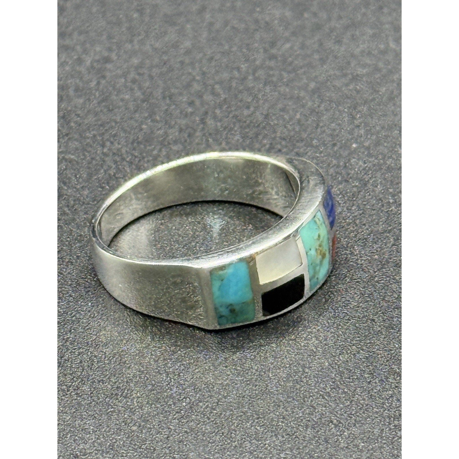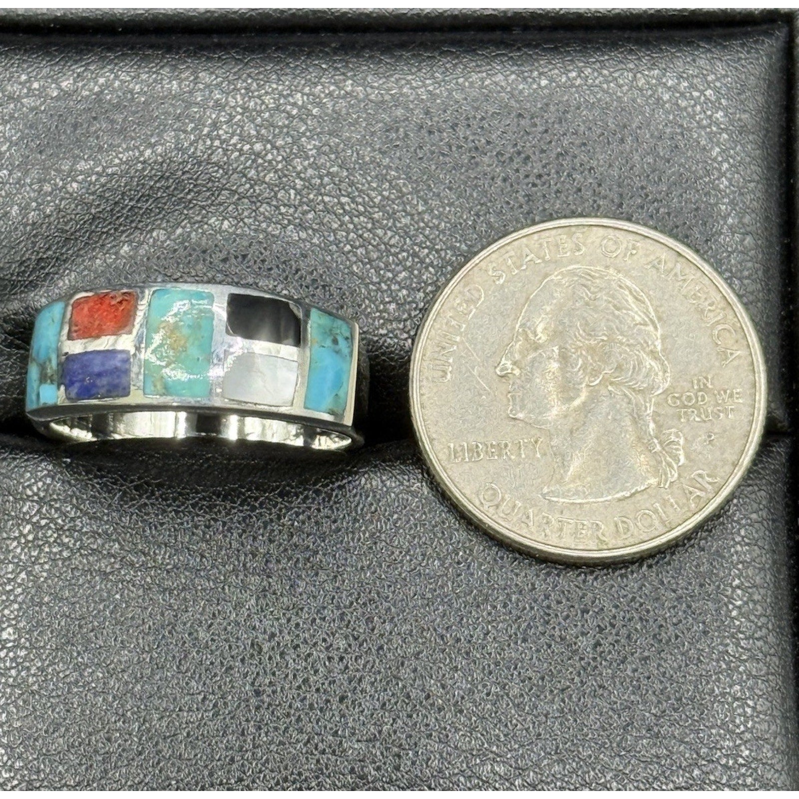 New Condition Sterling Silver Multigemstone Band Ring Size 10.00 Turquoise