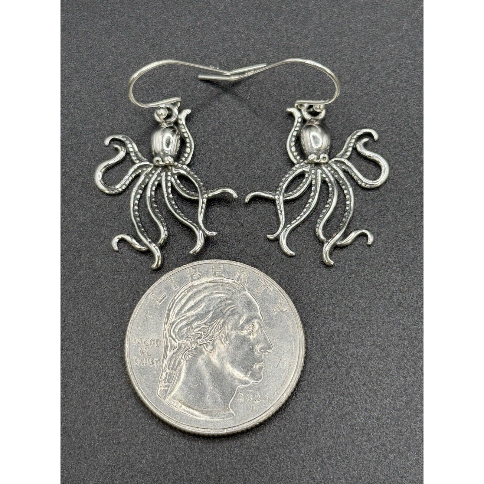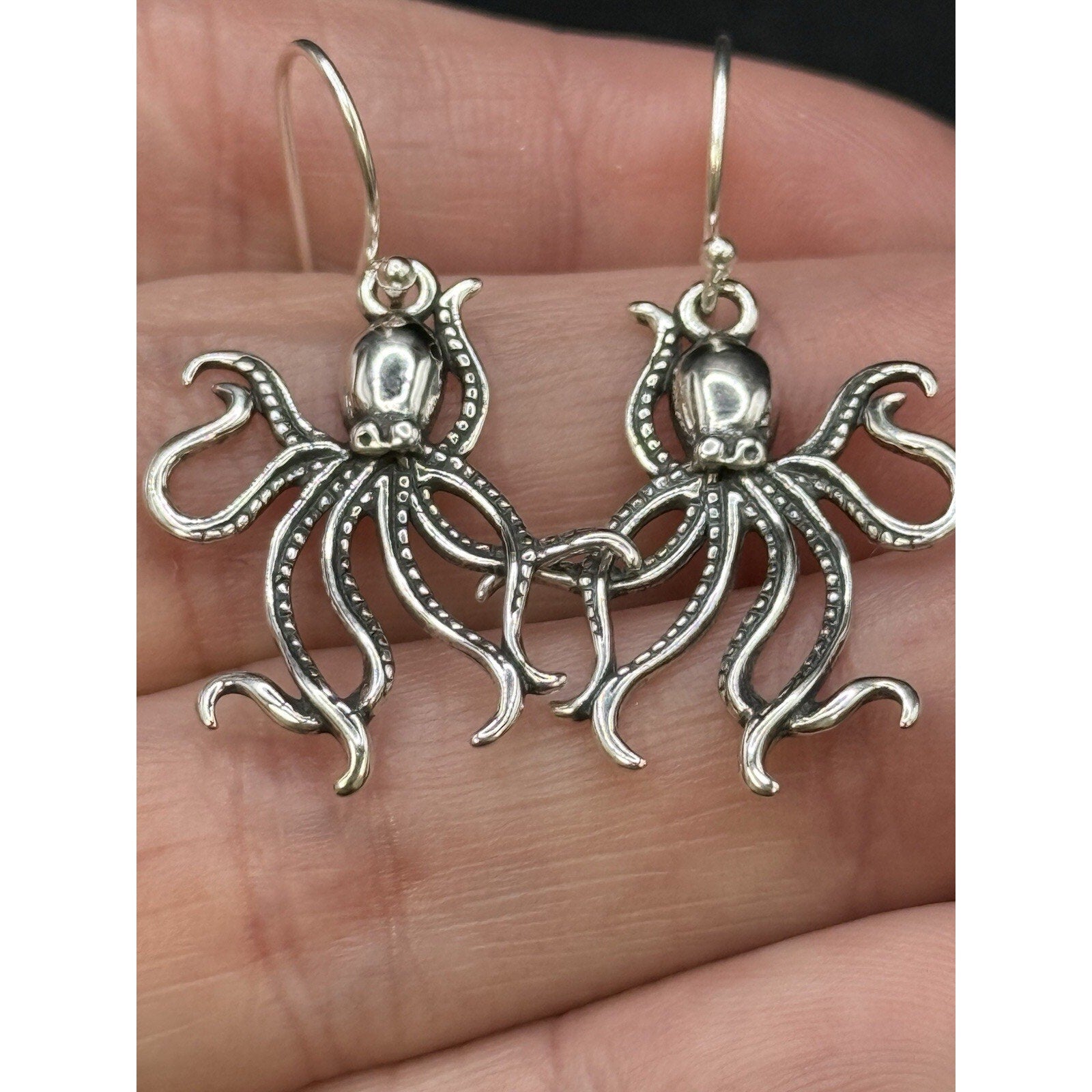 New Condition Sterling Silver Octopus Dangle Earrings 925