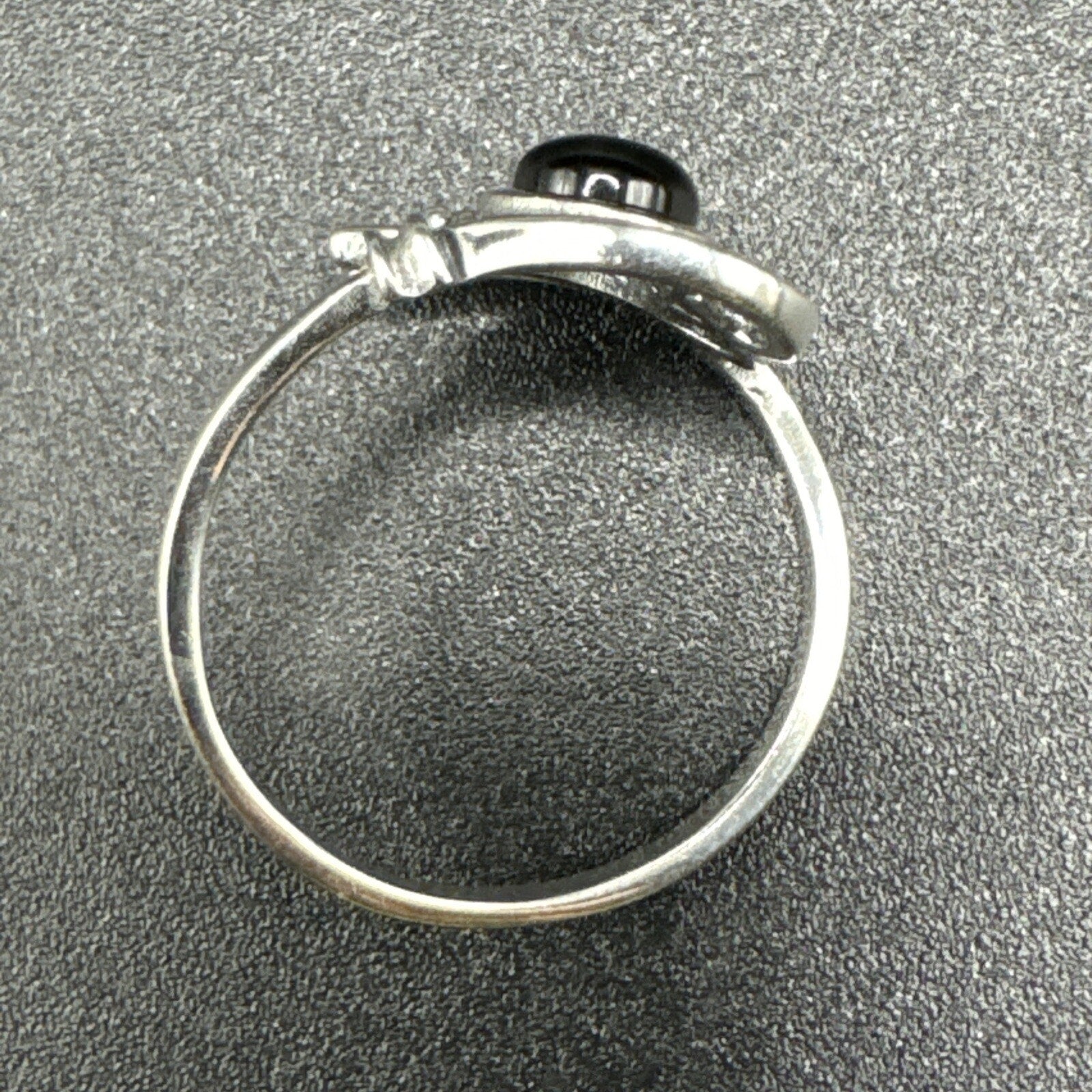 New Condition Sterling Silver Onyx Heart Key Bypass Ring 925 Size 6