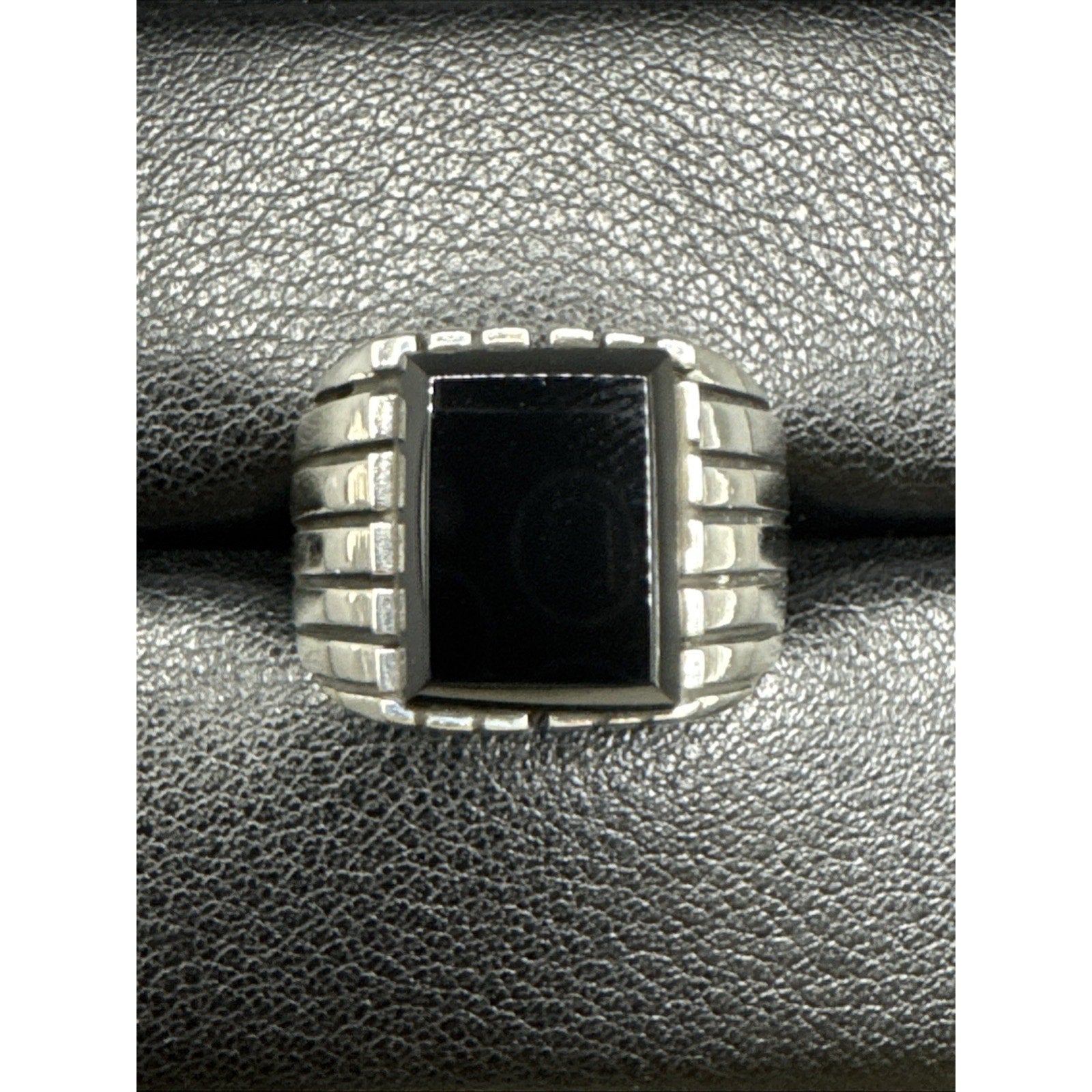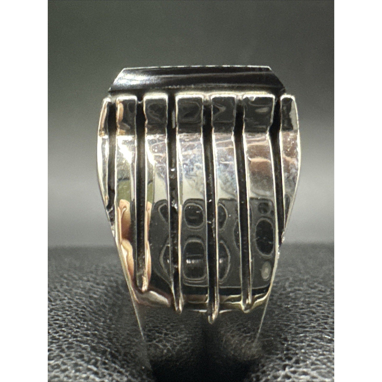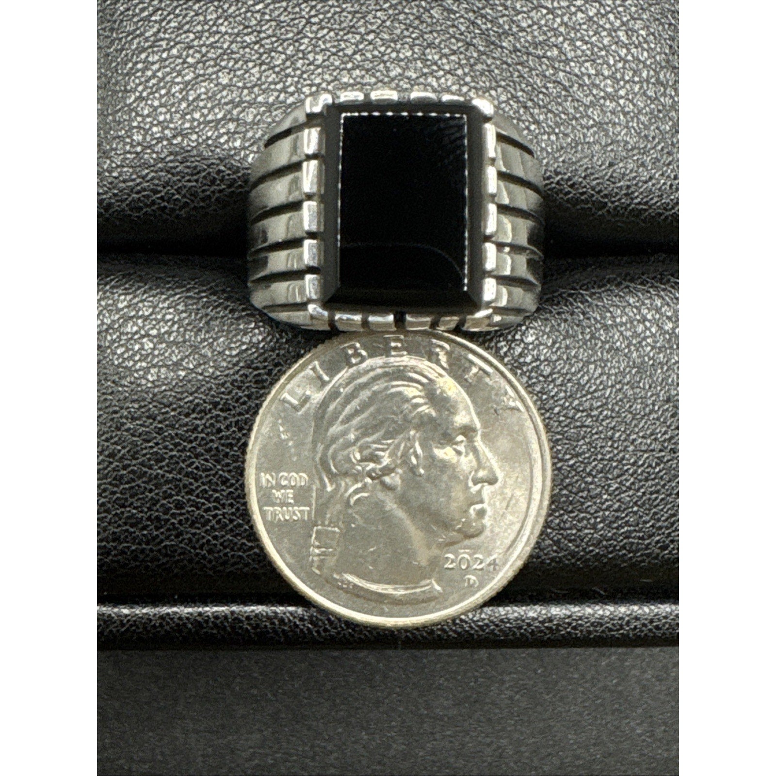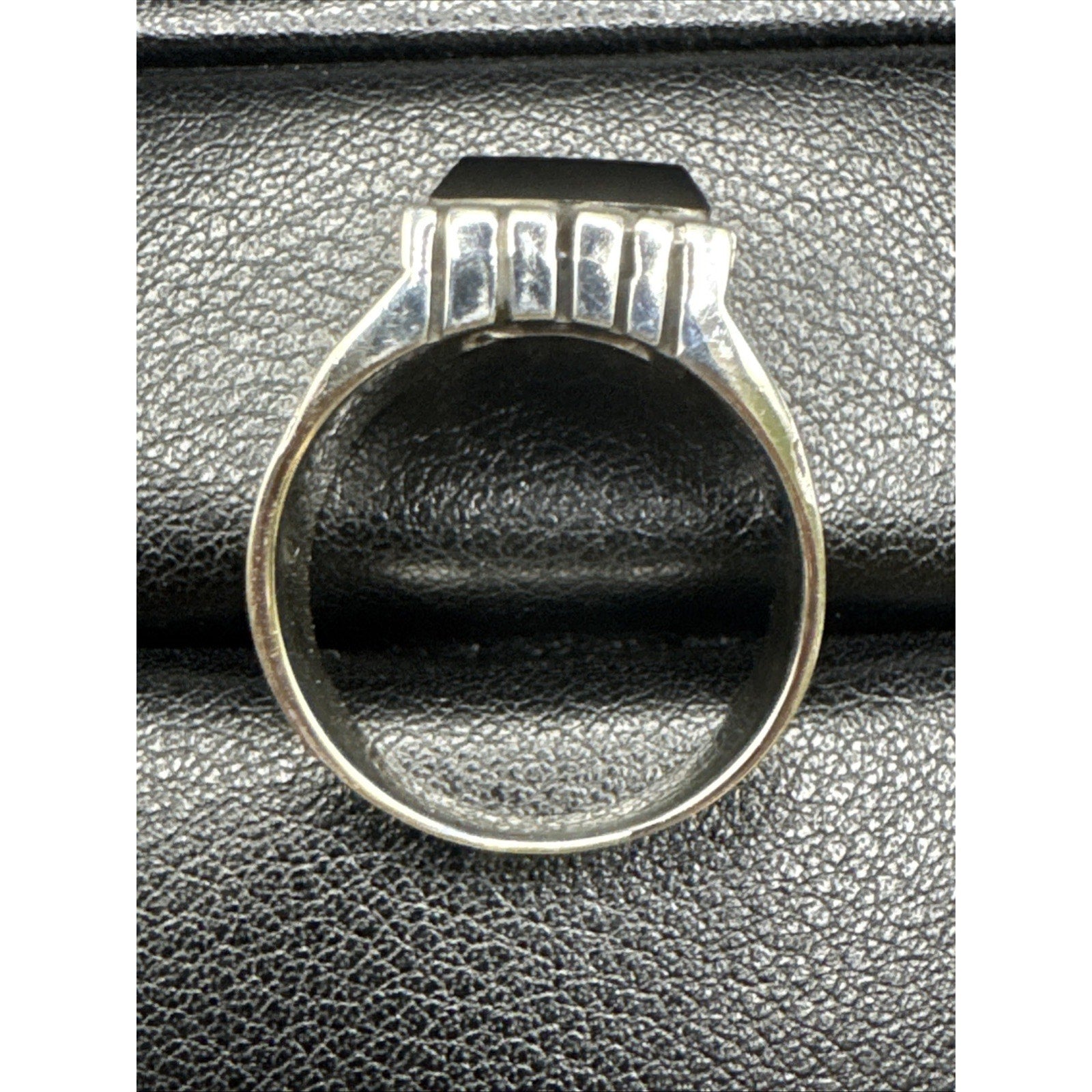 New Condition Sterling Silver Onyx Ladder Shank Signet Ring 925 Size 10