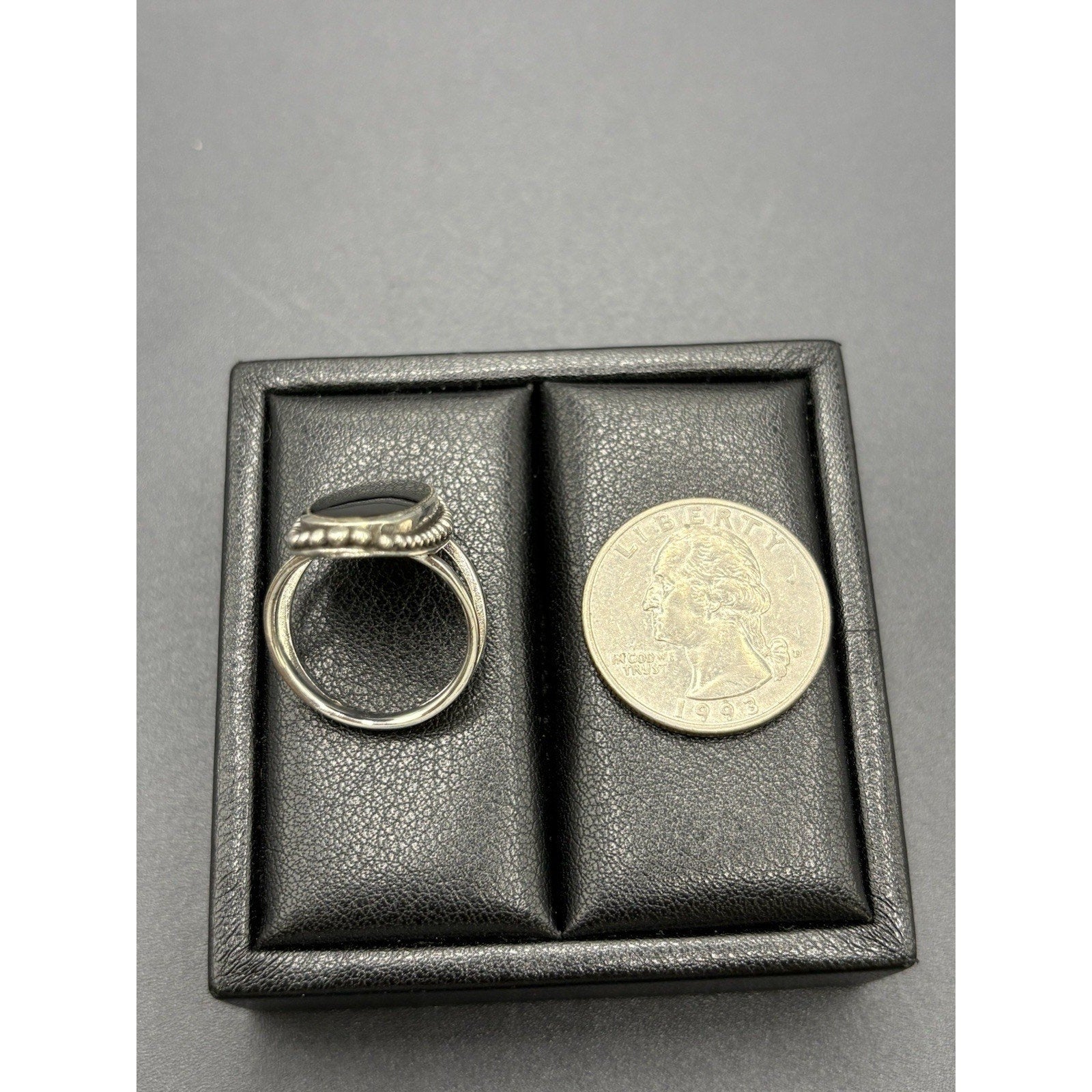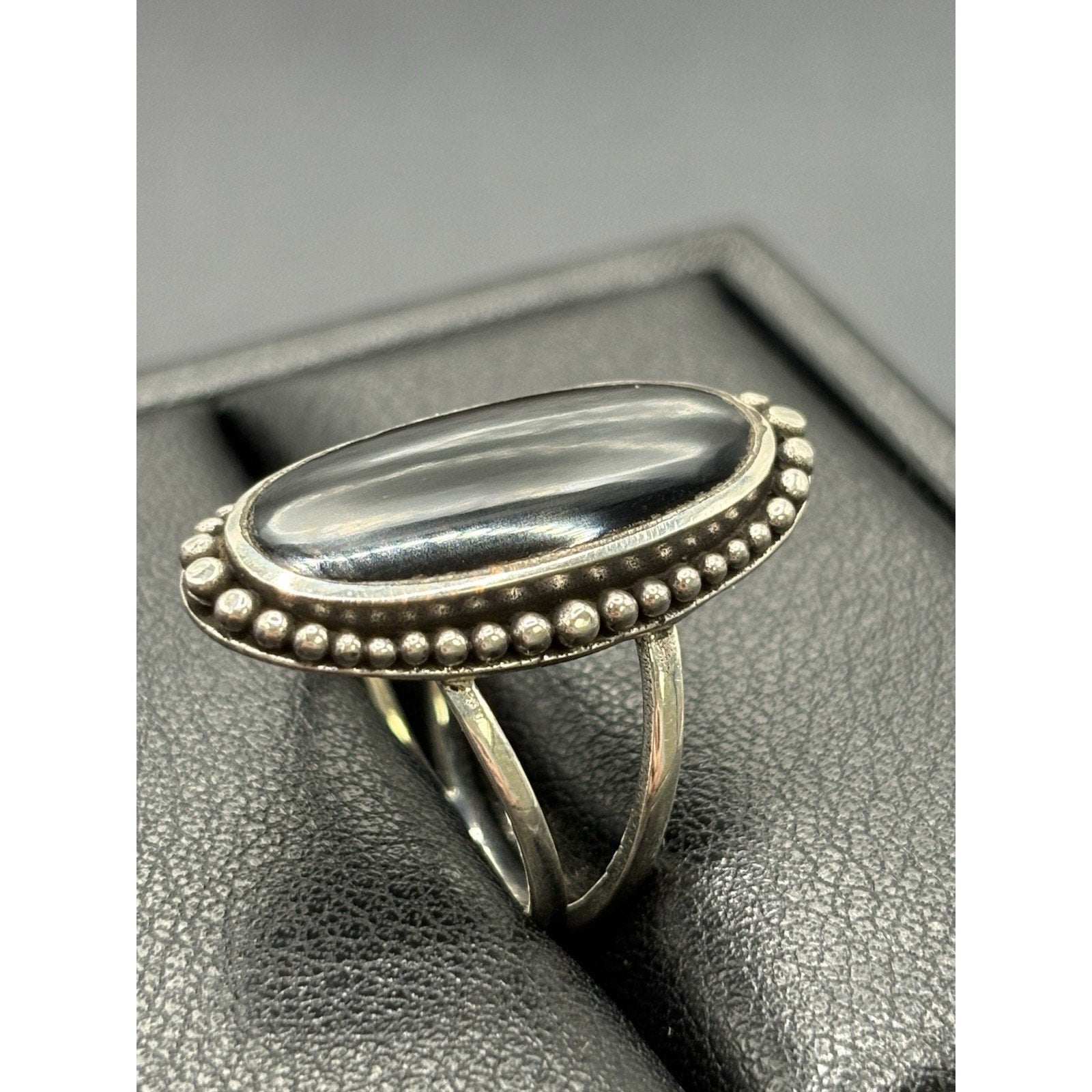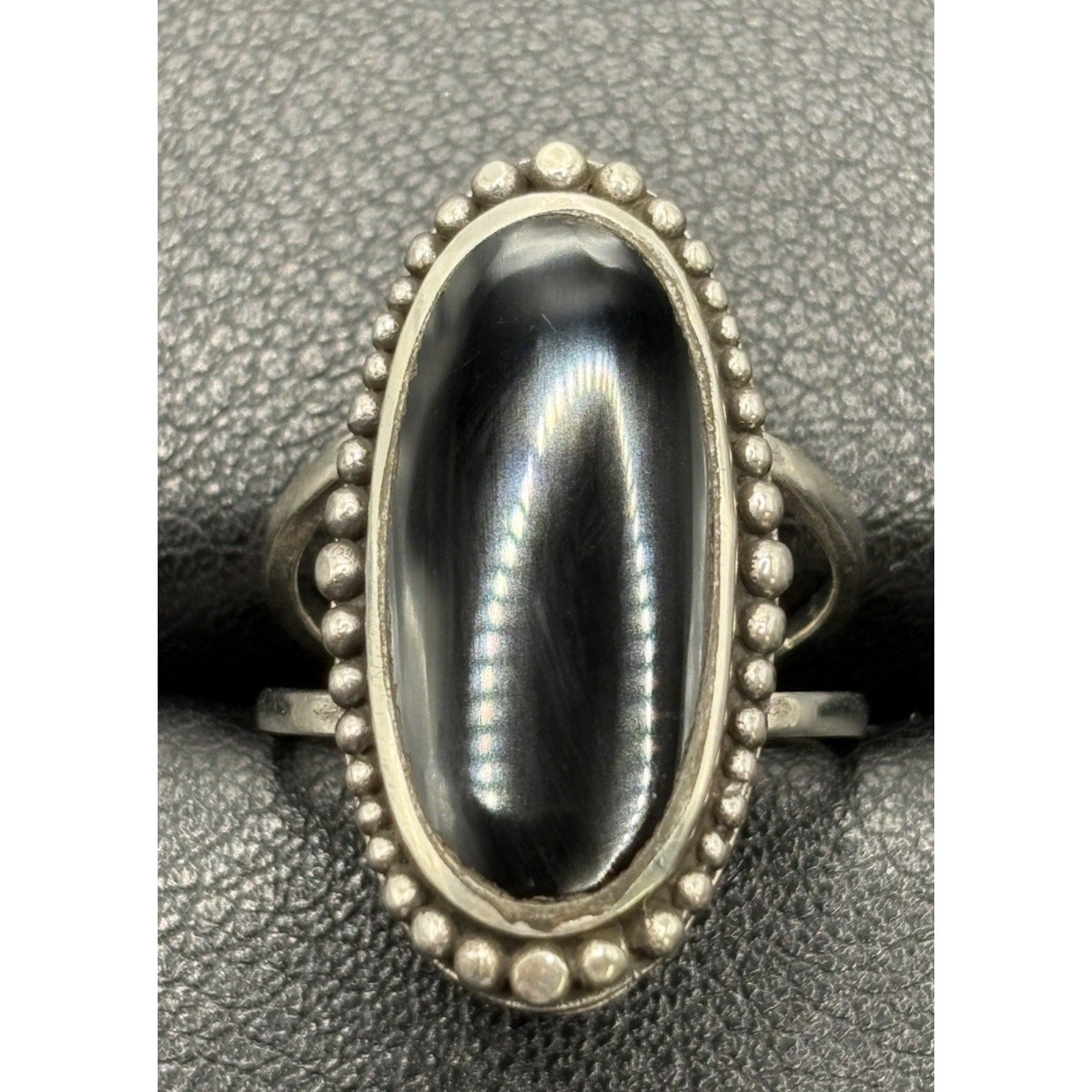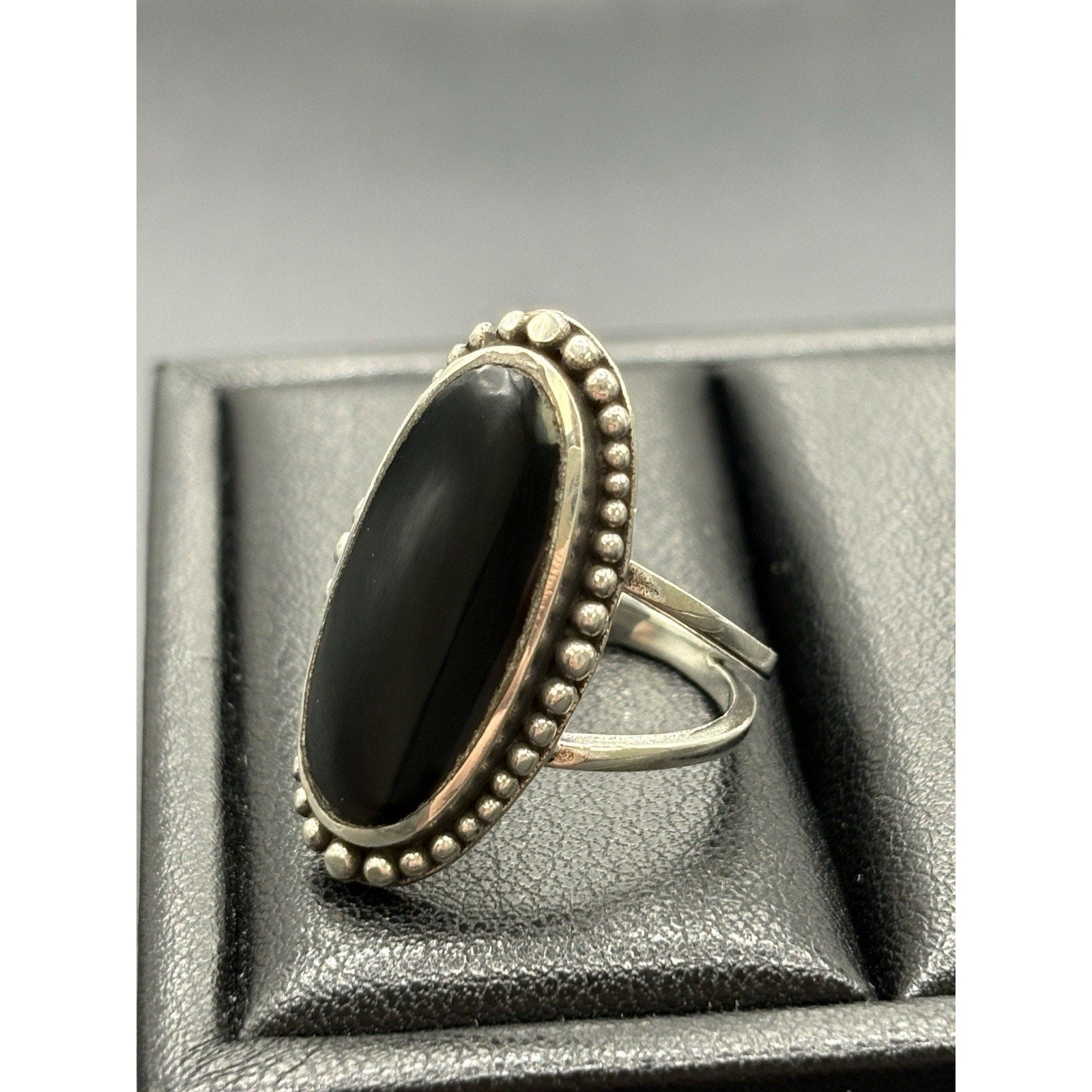 New Condition Sterling Silver Onyx Oblong Ring Size 7